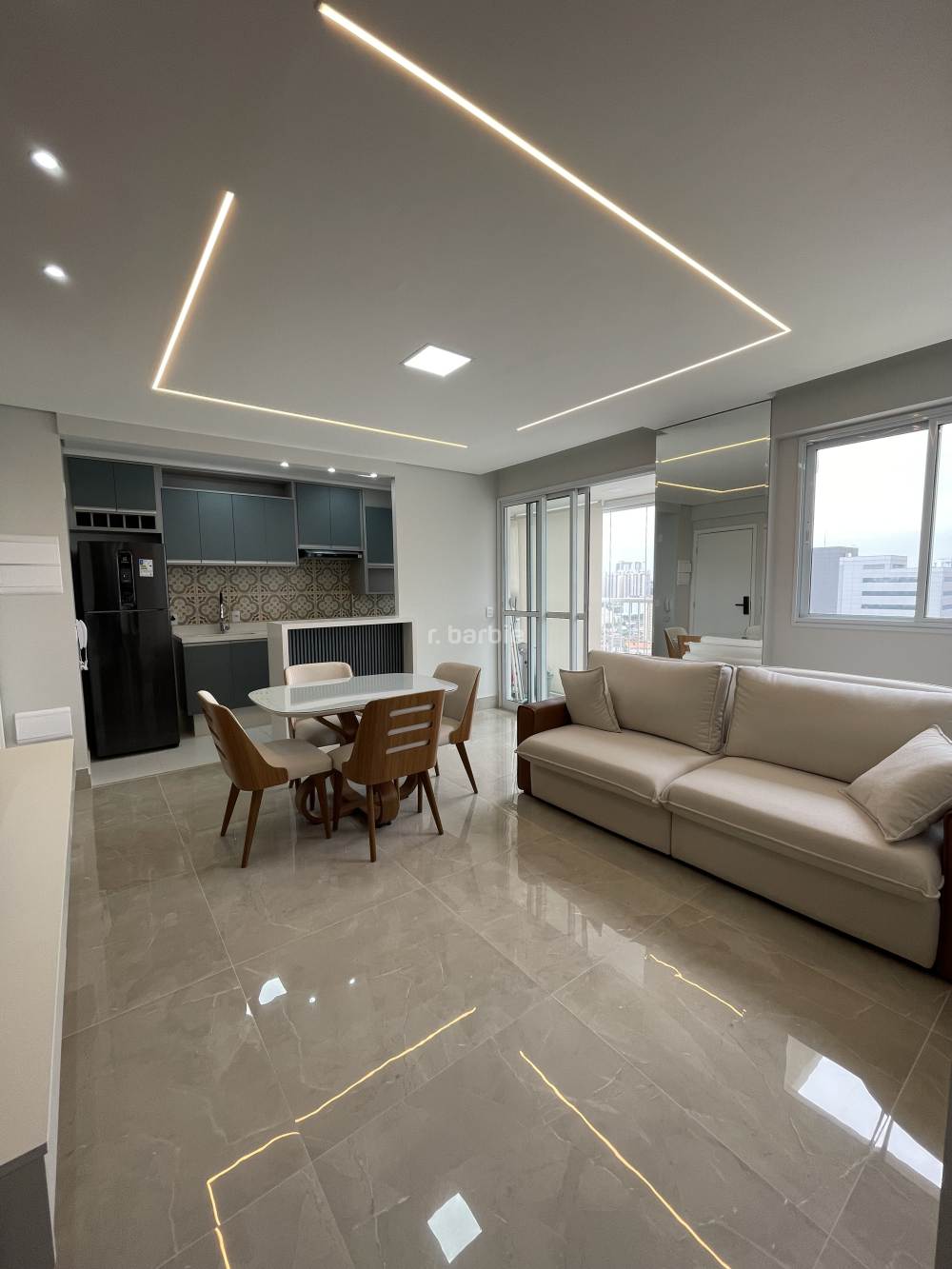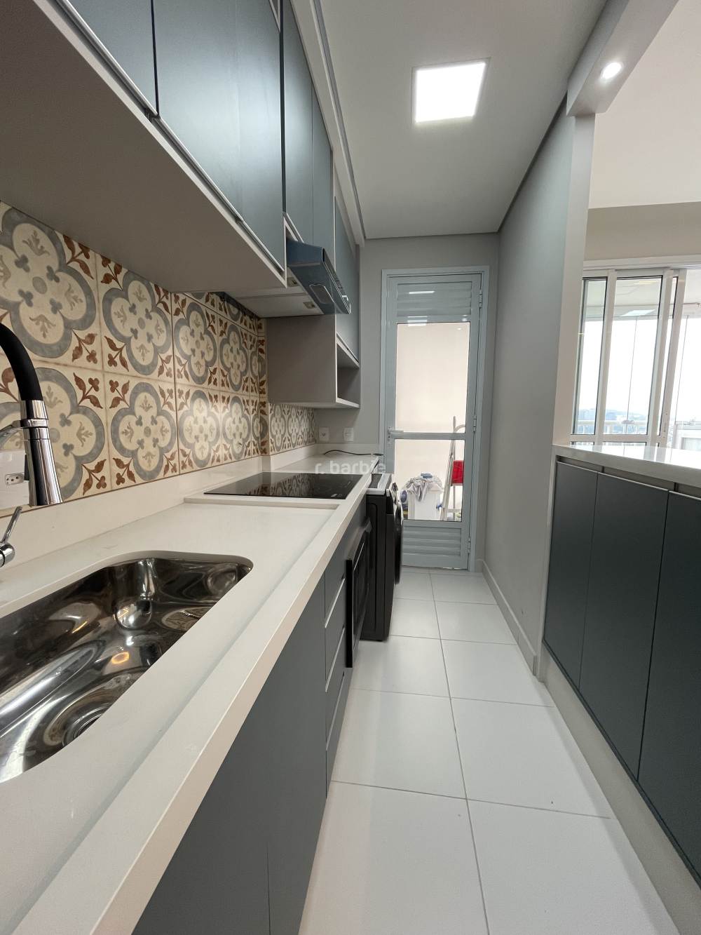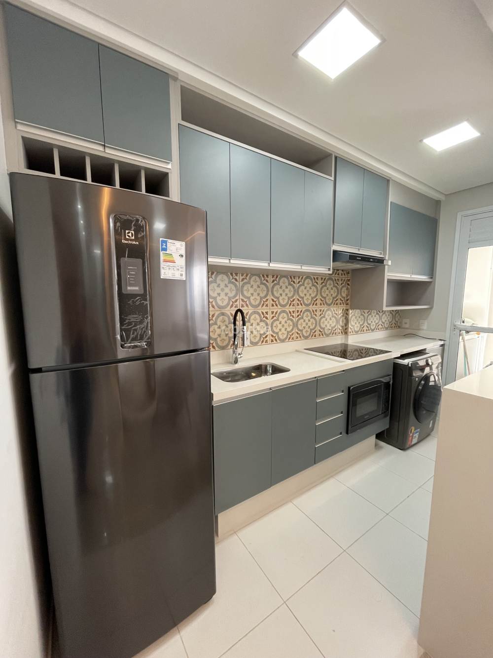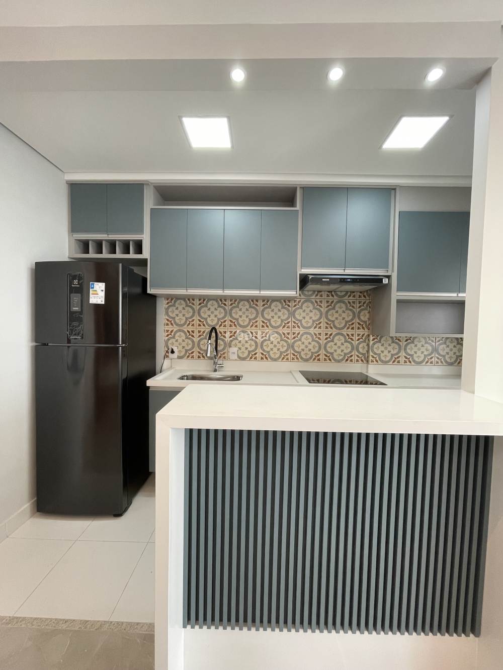 Apartamento mobiliado com 1 dormitório no Bethaville, 45 metros, living para 2 ambientes, cozinha com armários planejados e eletrodomésticos, lavanderia, andar alto, vista livre, sacada envidraçada, 1 vaga de carro e 1 vaga de moto.