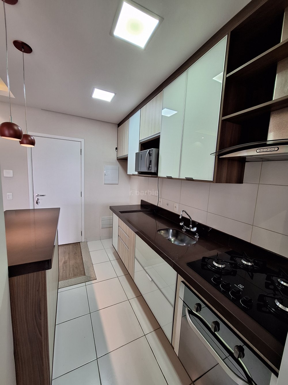 Apartamento semi mobiliado com 1 dormitório em Alphaville, 50 metros, living para 2 ambientes, cozinha ampla, lavanderia, 1 banheiro, sacada, andar alto e 1 vaga de garagem.