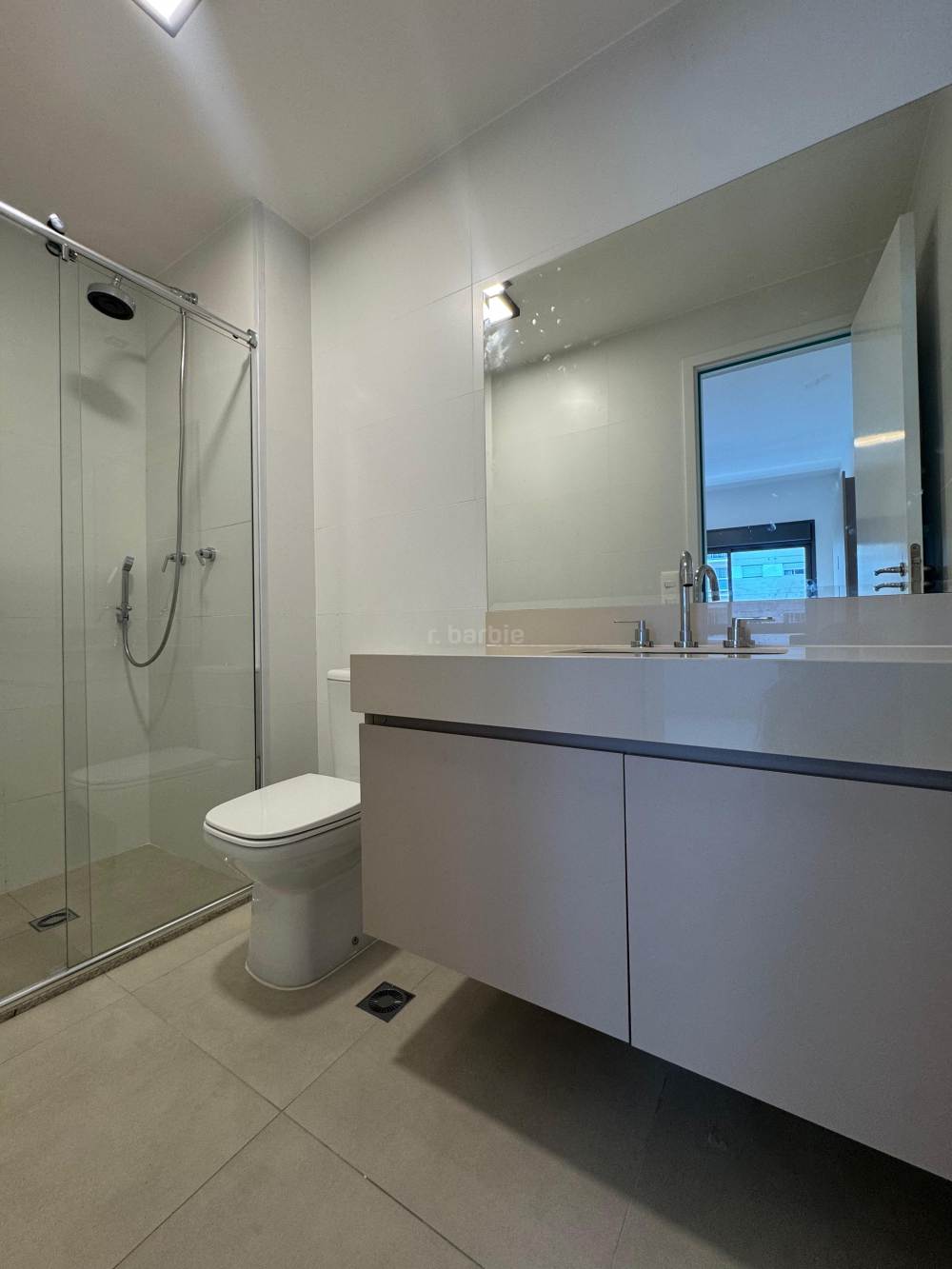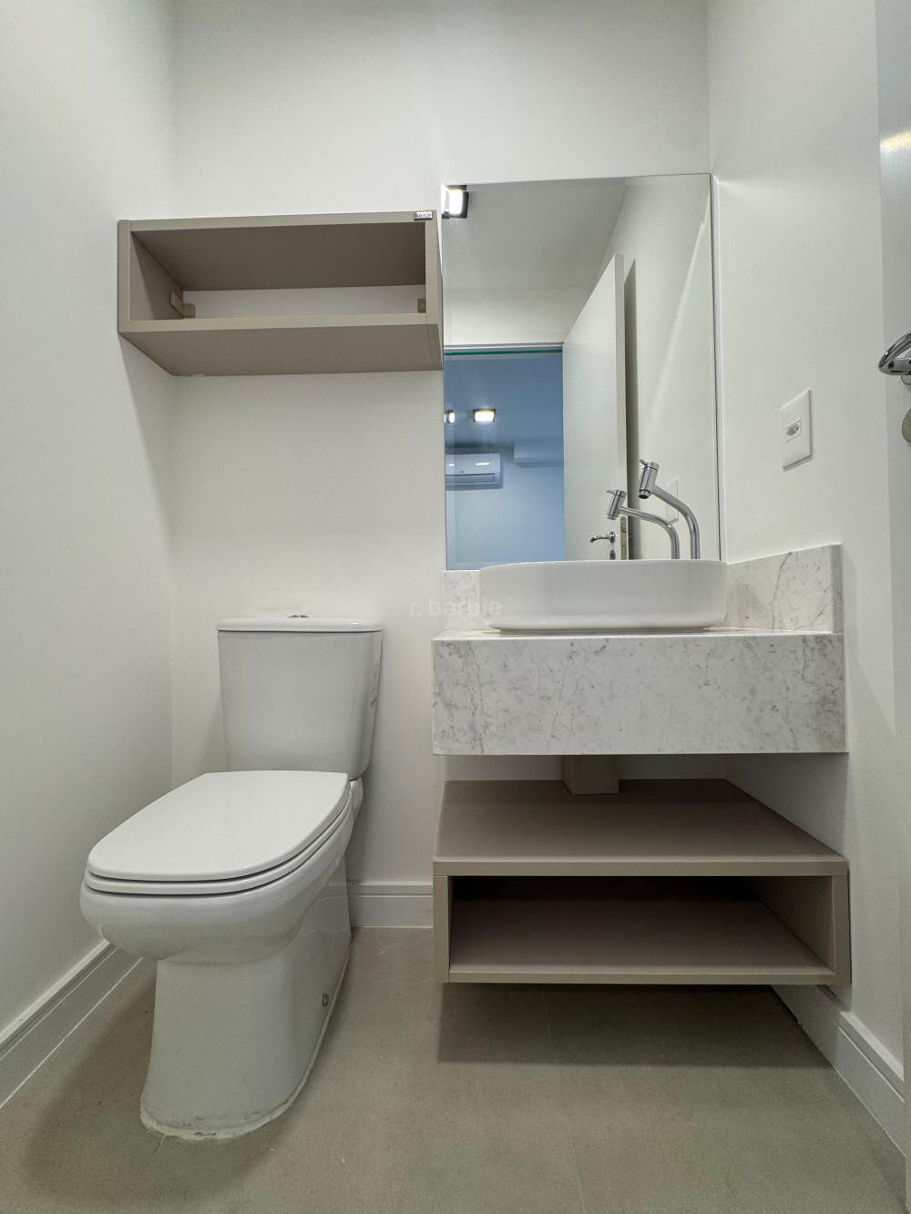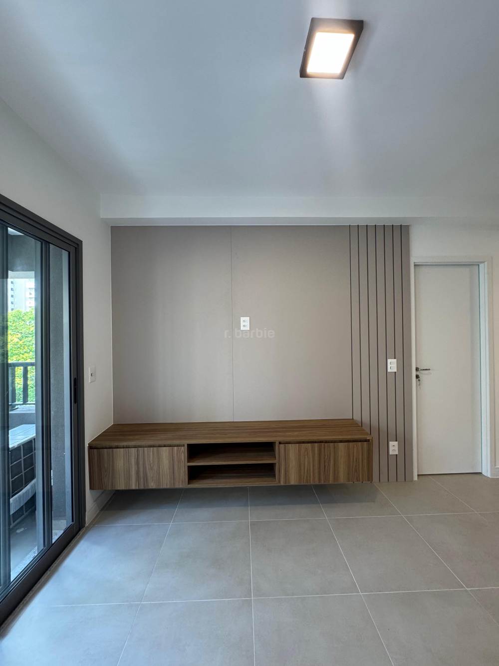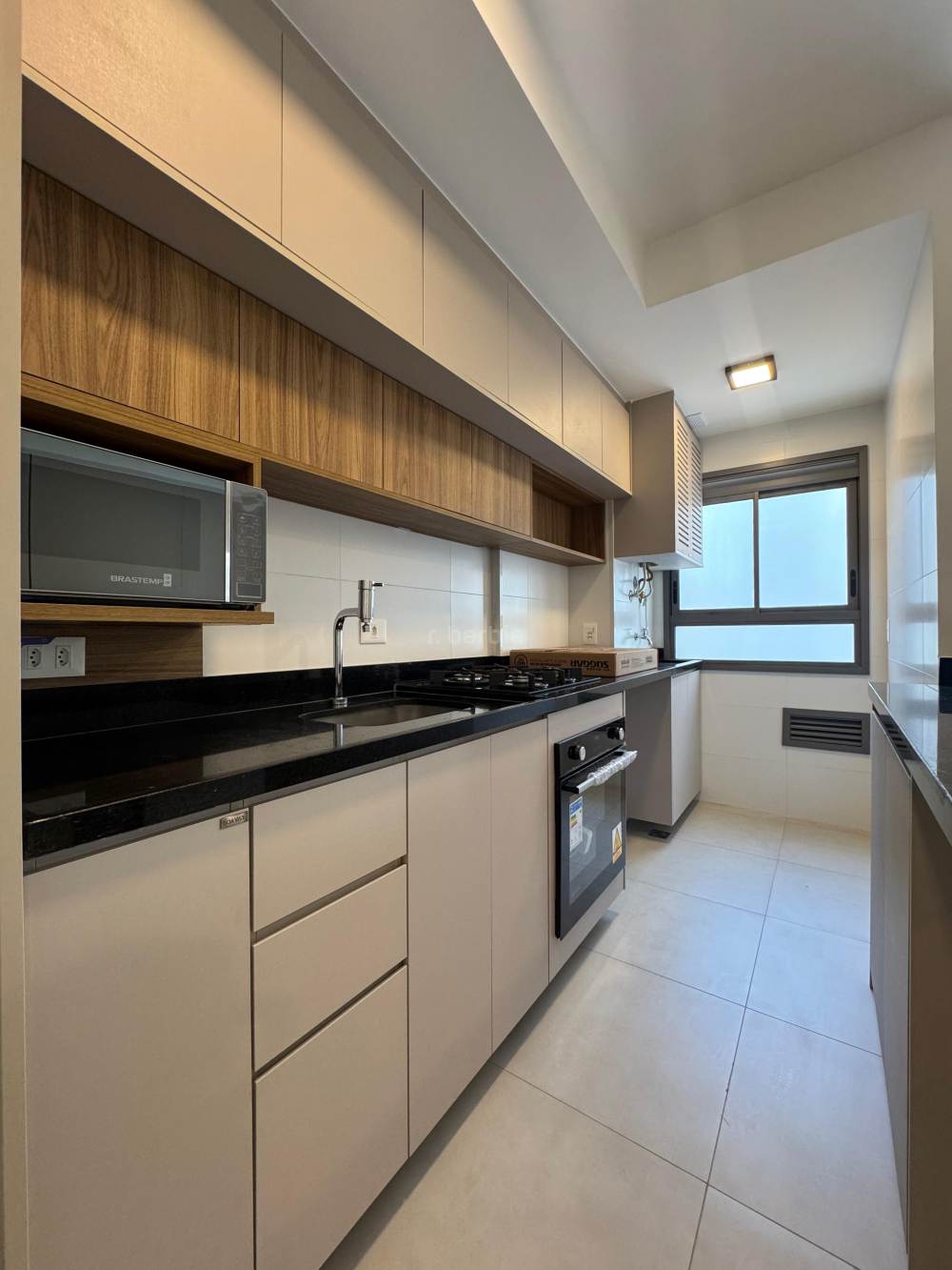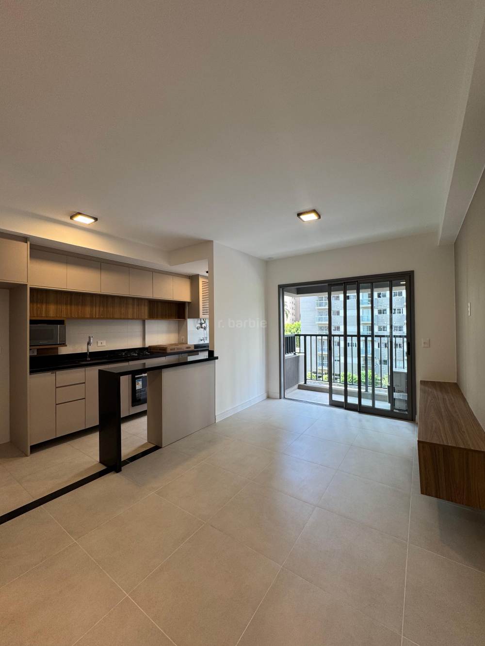 Apartamento com 1 suíte em Alphaville, 50 metros, living para 2 ambientes, cozinha com armários planejados, forno, fogão e micro ondas, lavanderia, lavabo, ar condicionado em todos os ambientes, vista livre e 1 vaga de garagem.
