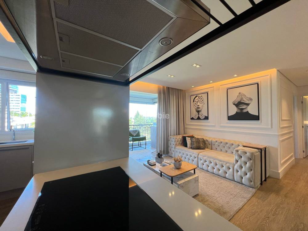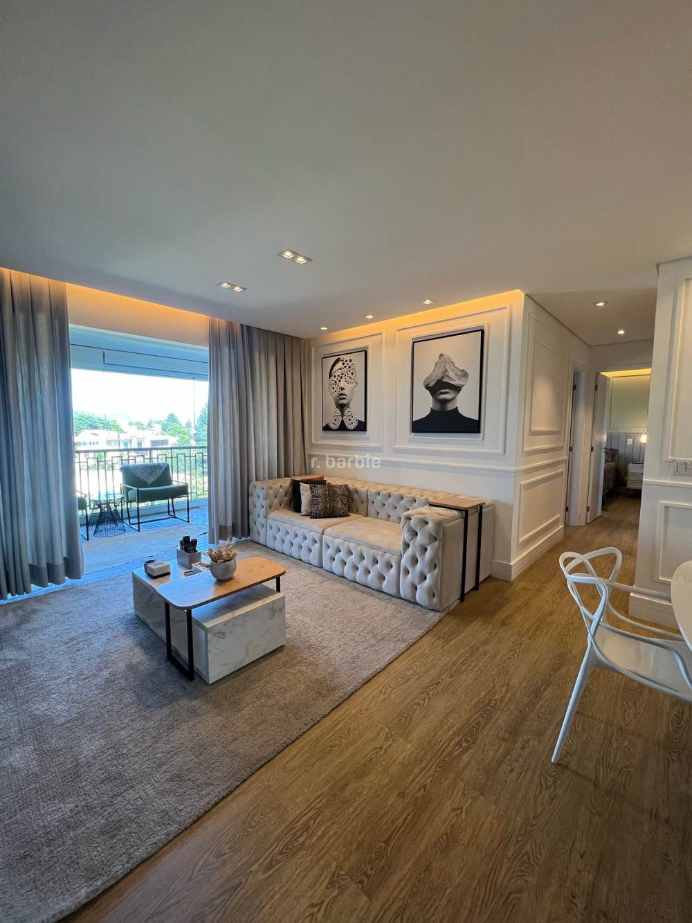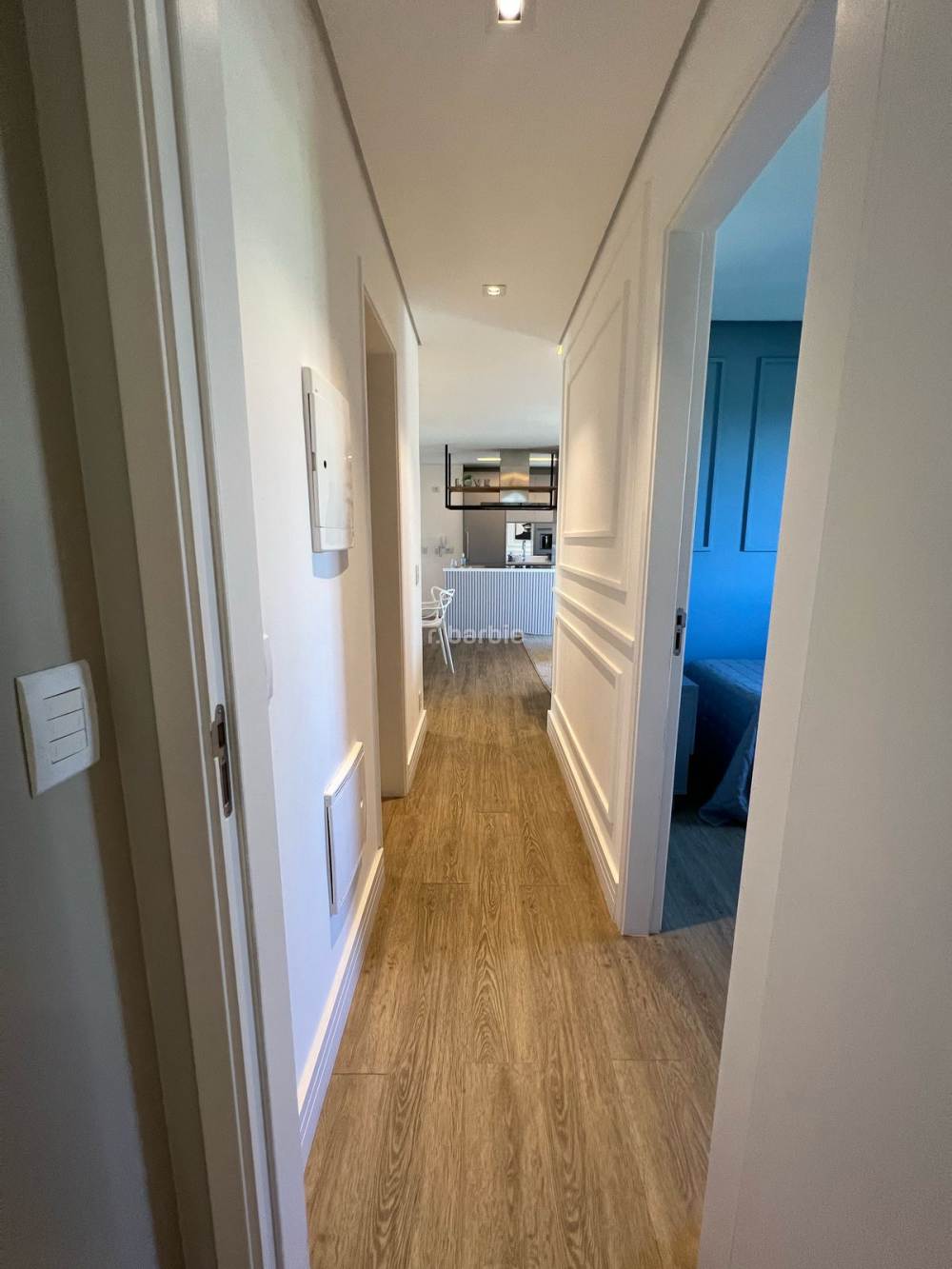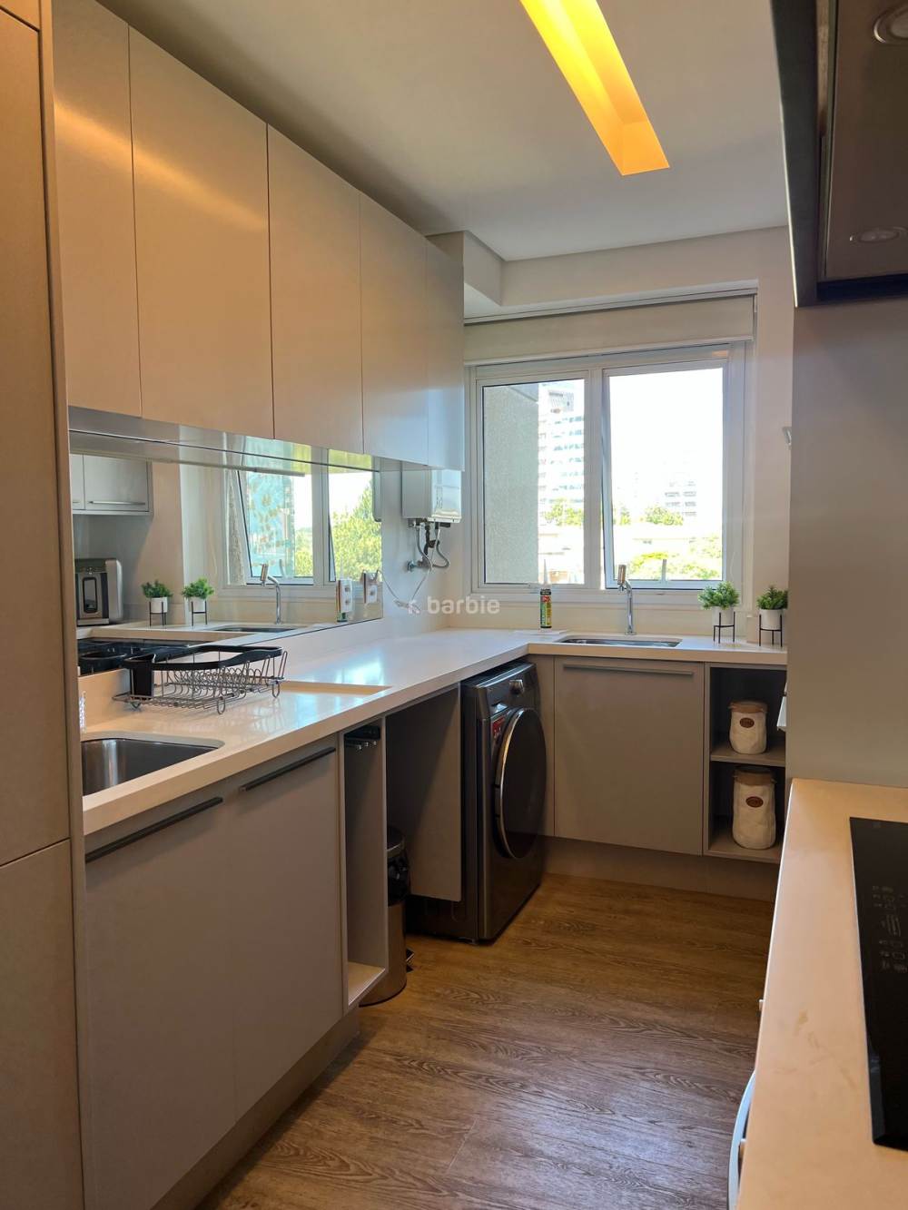 Apartamento mobiliado com 2 dormitórios sendo 1 suíte em Alphaville, 79 metros, living para 2 ambientes, cozinha ampla com armários planejados e eletrodomésticos, lavanderia, varanda integrada, 2 banheiros, ar condicionado, andar baixo, vista livre e 2 vagas de garagem.