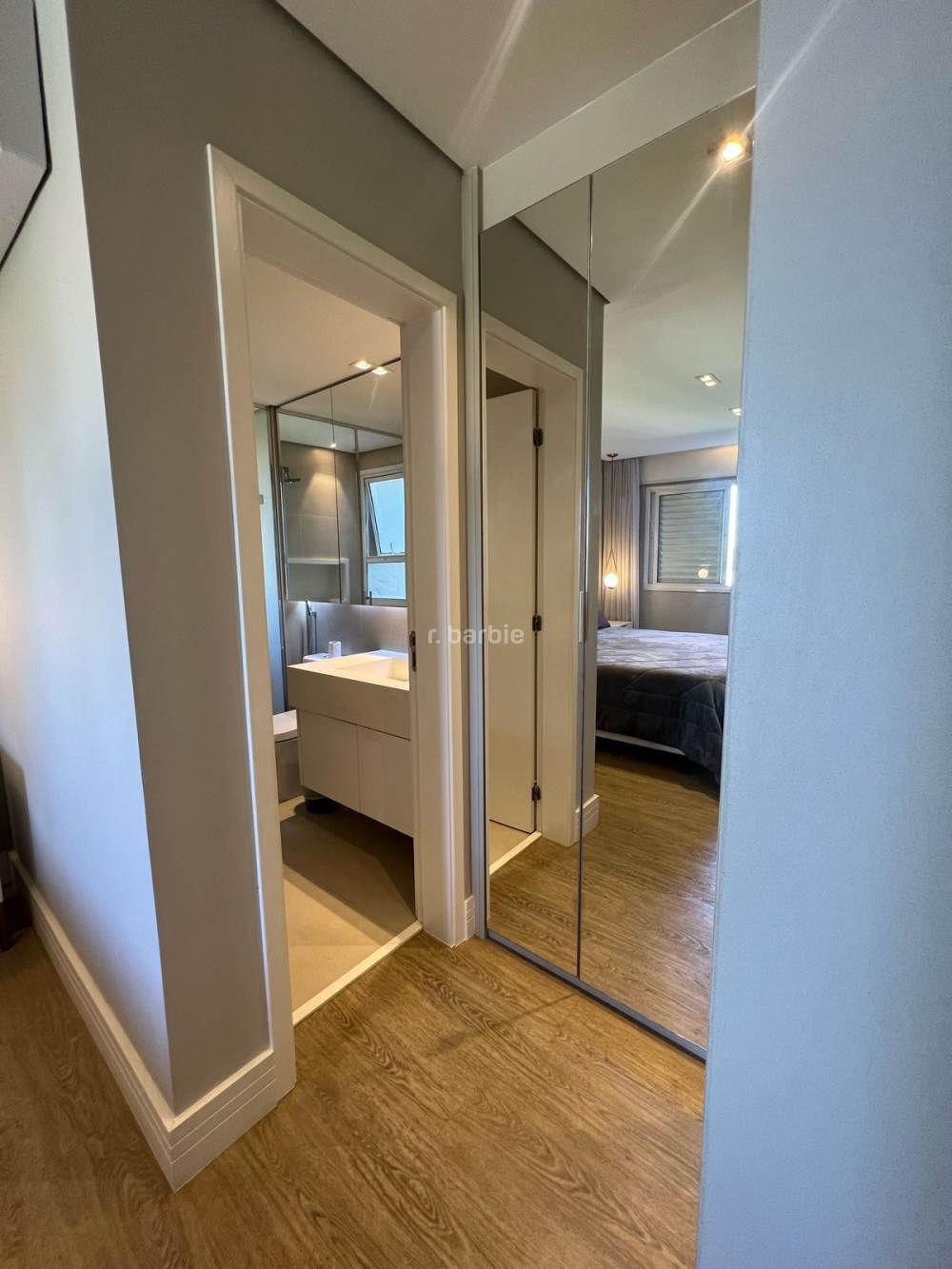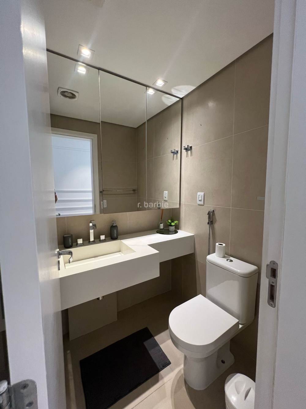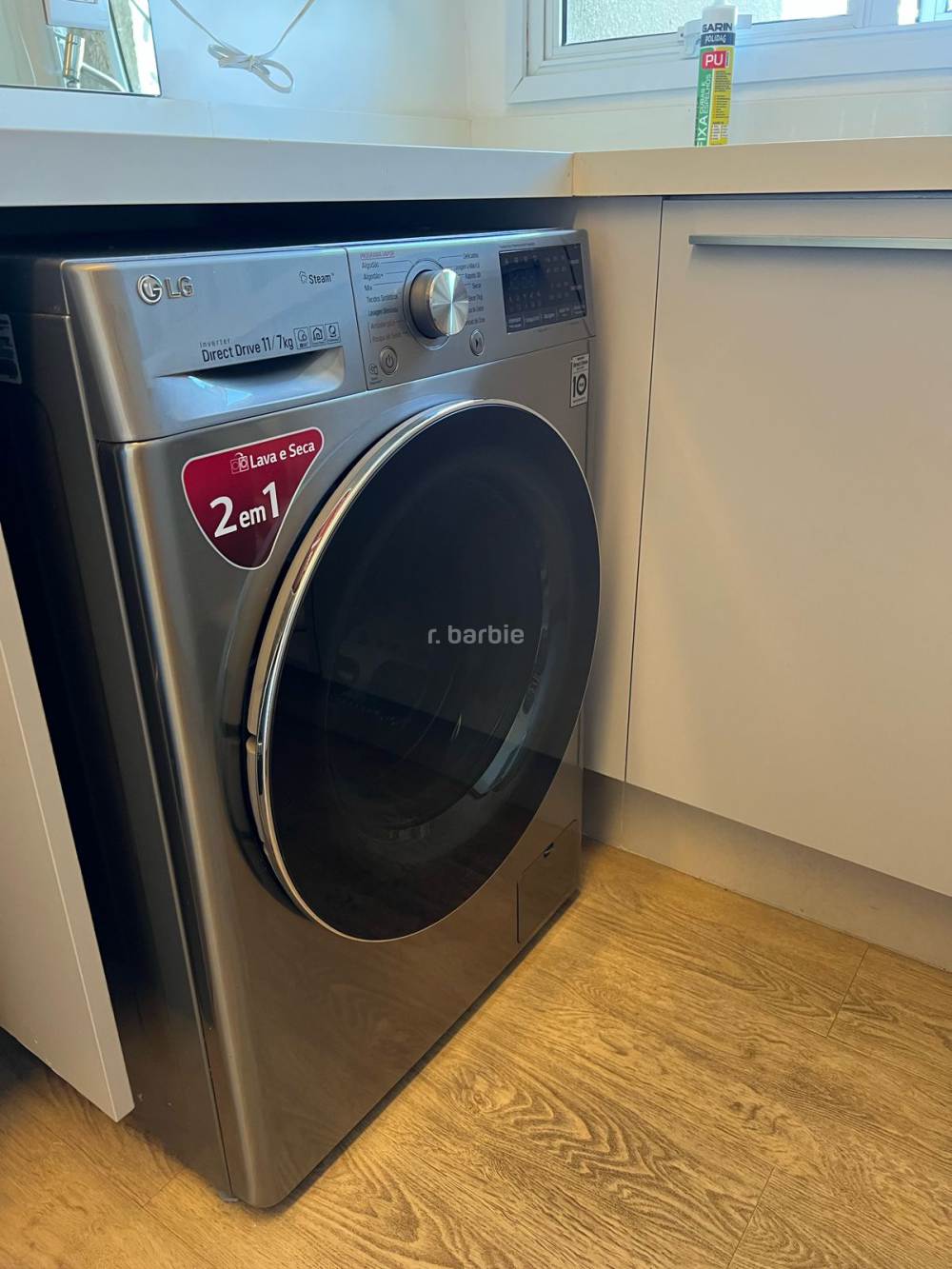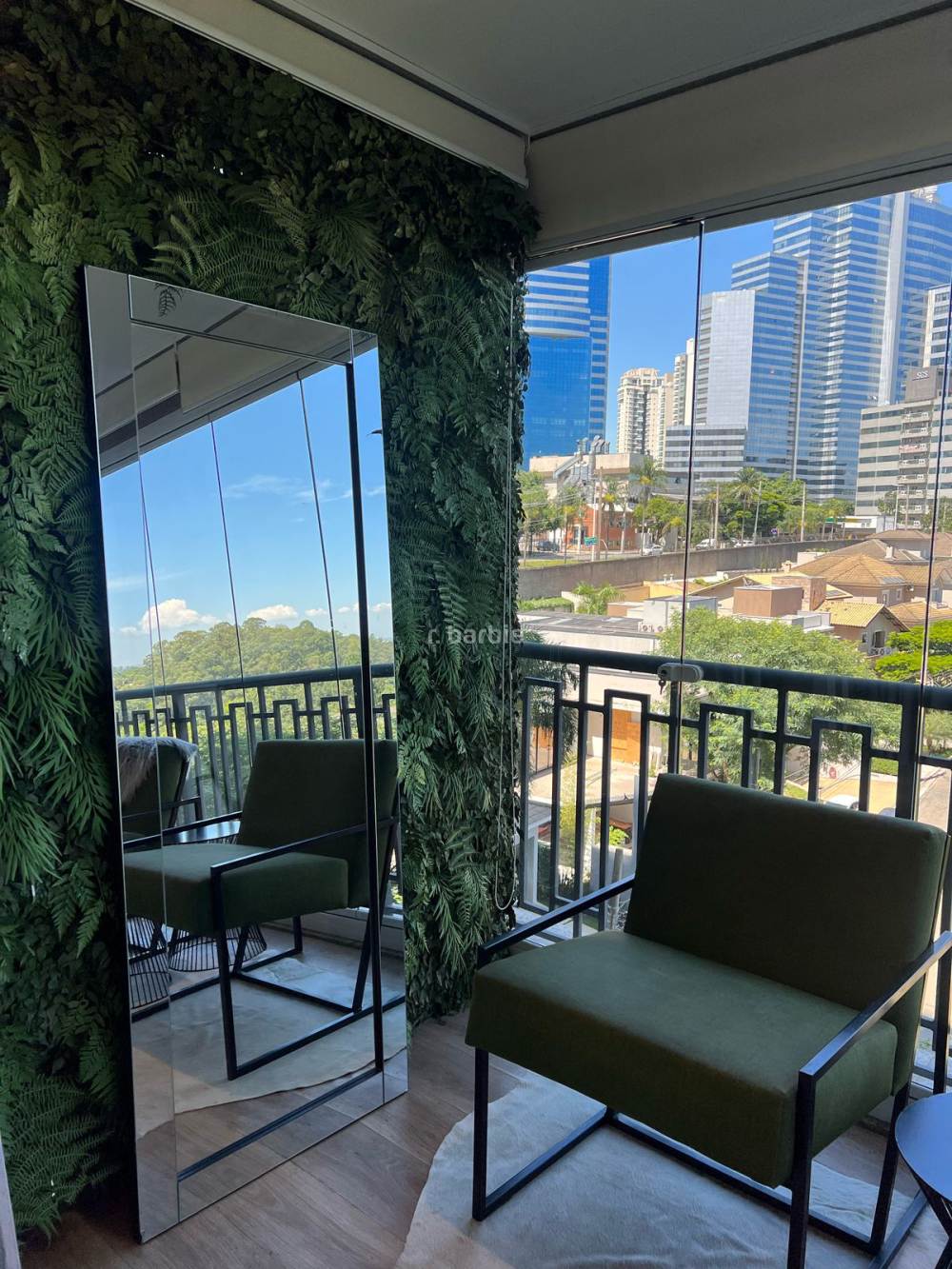 Apartamento mobiliado com 2 dormitórios sendo 1 suíte em Alphaville, 79 metros, living para 2 ambientes, cozinha ampla com armários planejados e eletrodomésticos, lavanderia, varanda integrada, 2 banheiros, ar condicionado, andar baixo, vista livre e 2 vagas de garagem.