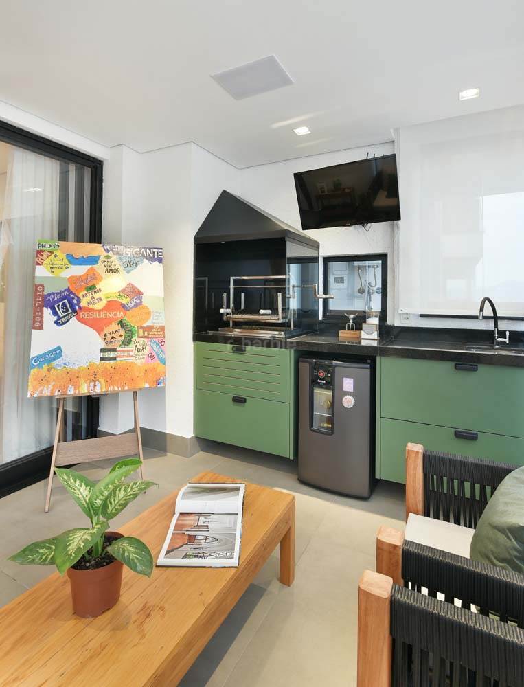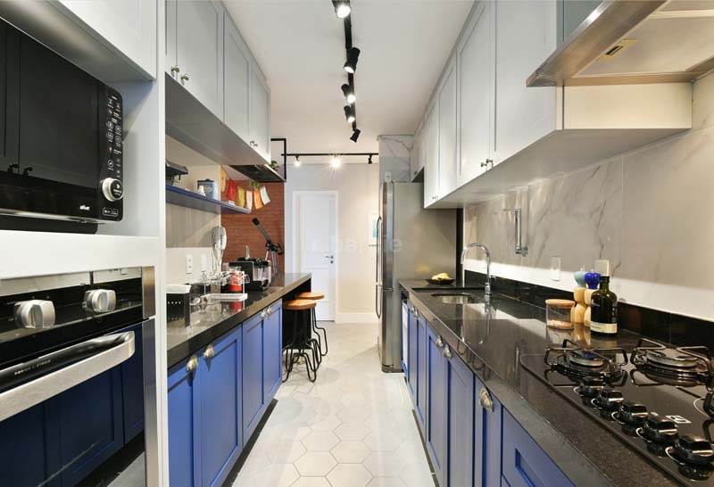 Apartamento mobiliado com 2 suítes em Alphaville, 112 metros, living para 2 ambientes, cozinha ampla com armários planejados e eletrodomésticos, lavanderia, lavabo, ar condicionado, varanda gourmet, andar alto e 2 vagas de garagem.