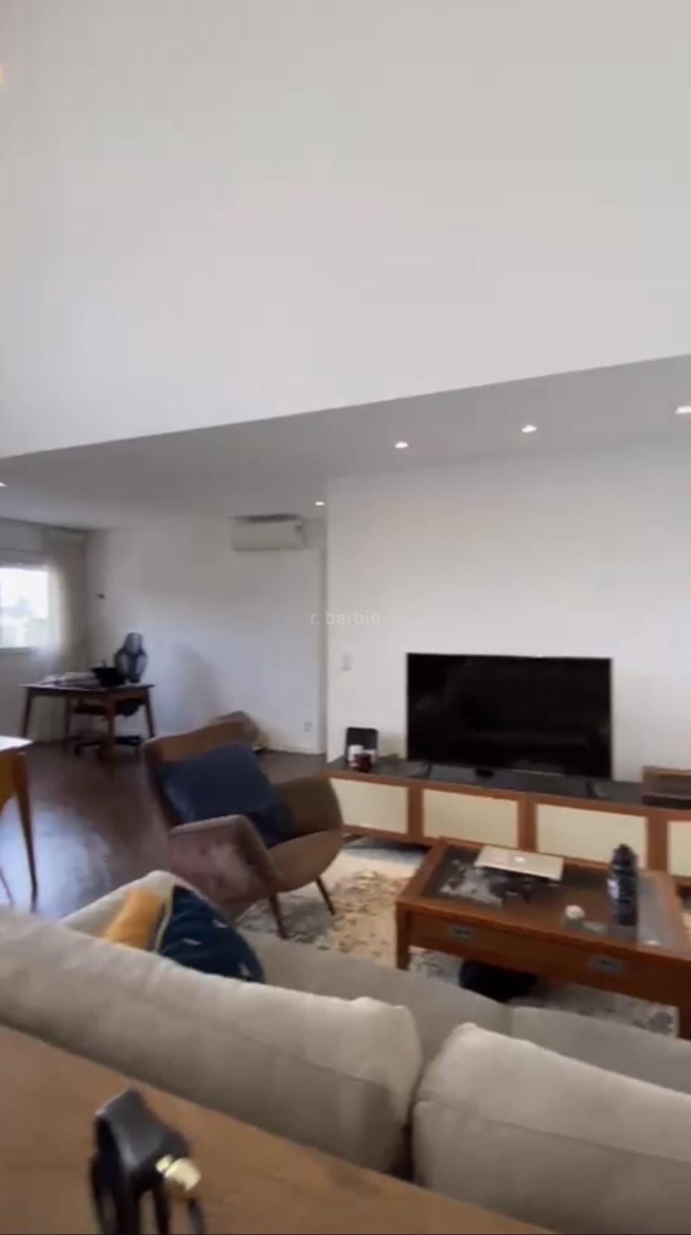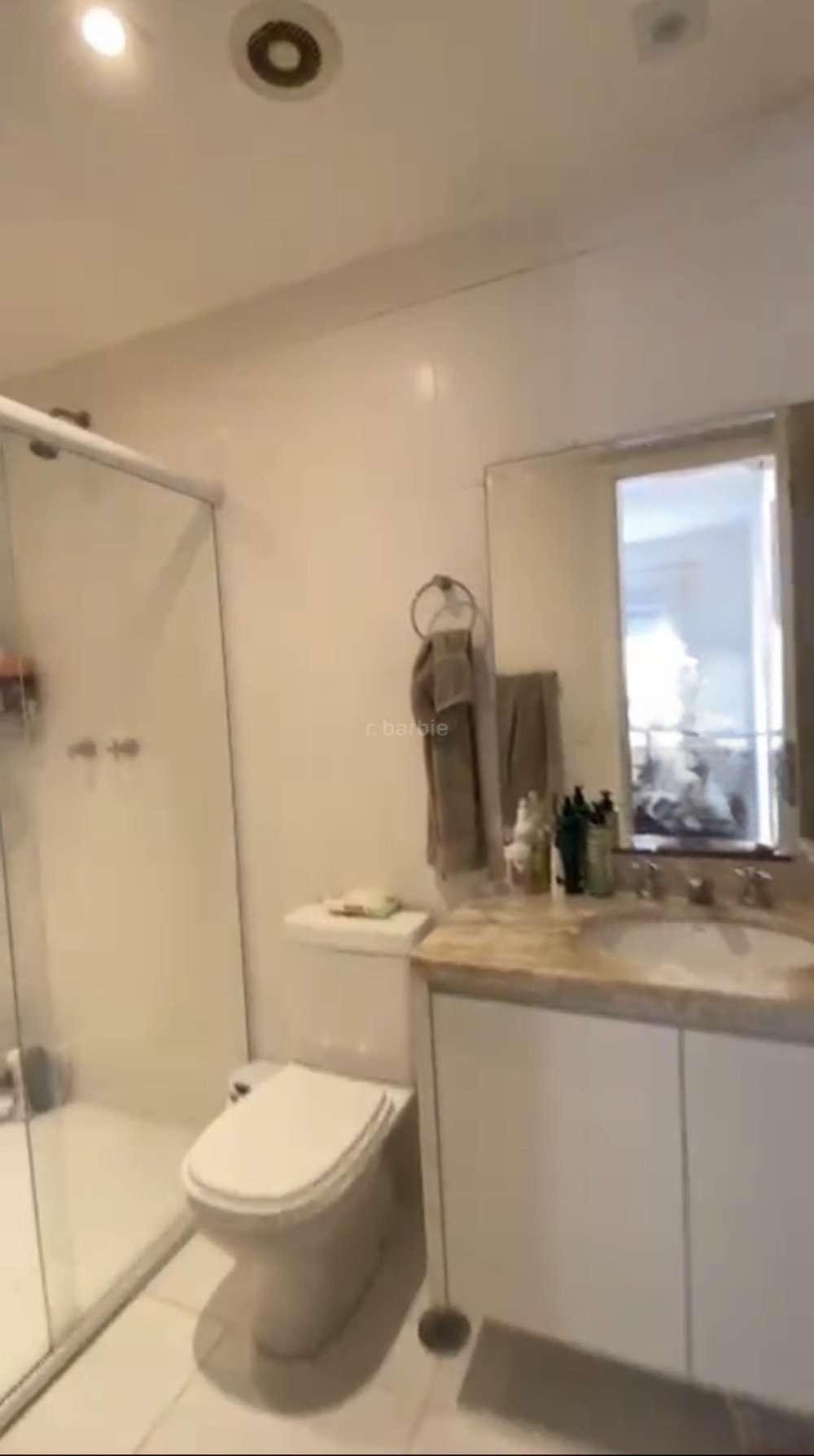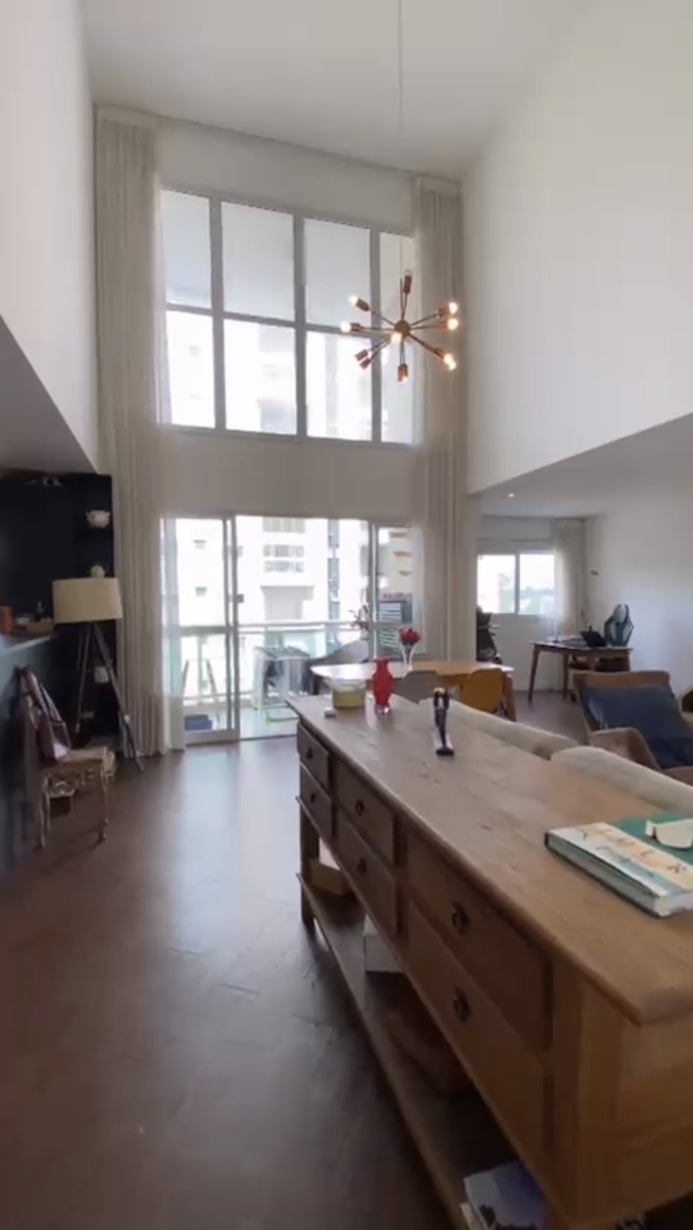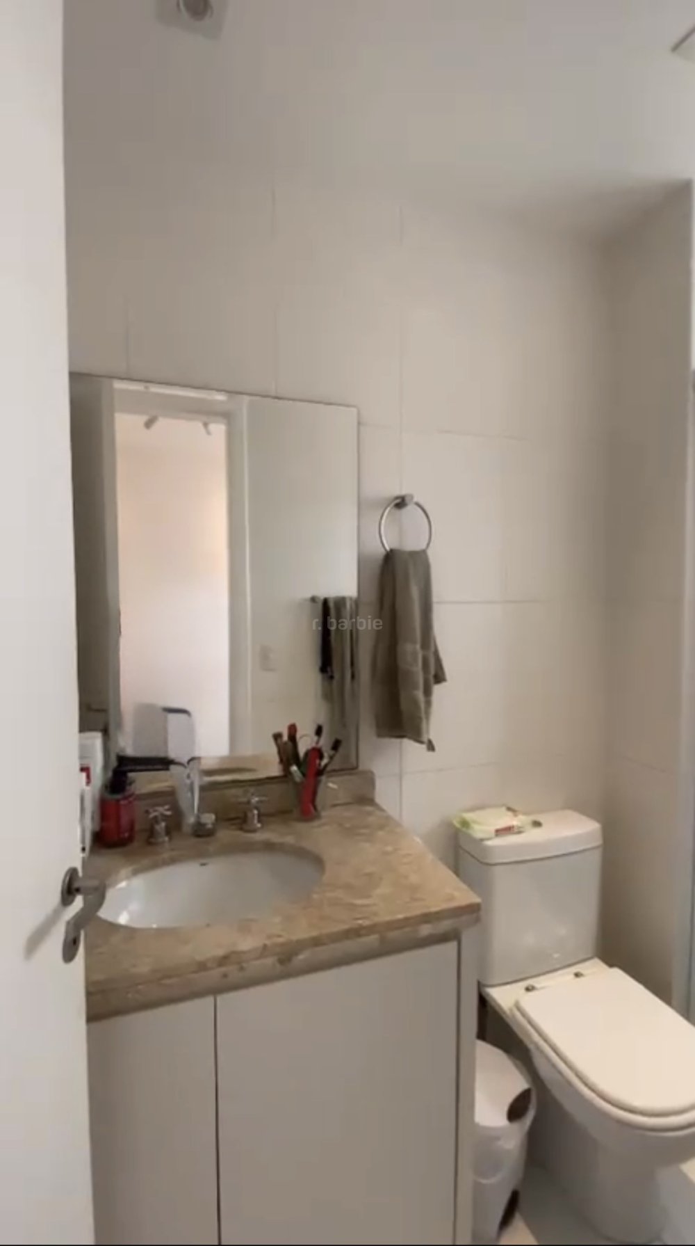 Apartamento de 98 metros com 2 suítes, lavabo, sala e varanda com pé direito duplo, andar baixo com vista lateral pra piscina, sala ampliada mais arejada e espaçosa e com ar condicionado, cozinha americana planejada e toda equipada com coifa, forno e cooktop, dormitórios com armários planejados, carpete de madeira em toda a unidade, total de 3 banheiros e 2 vagas de garagem
