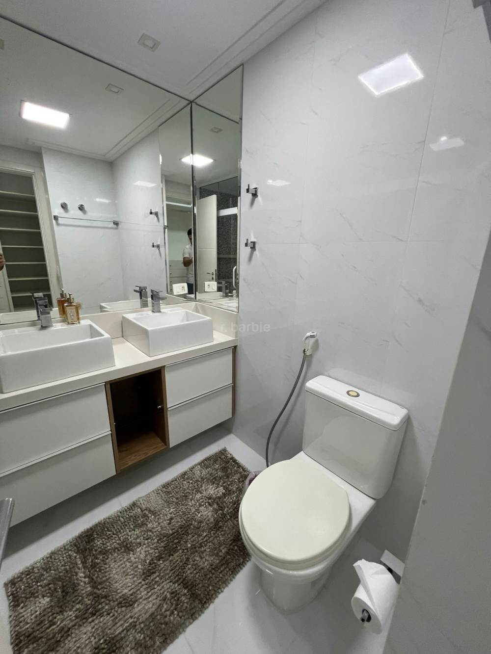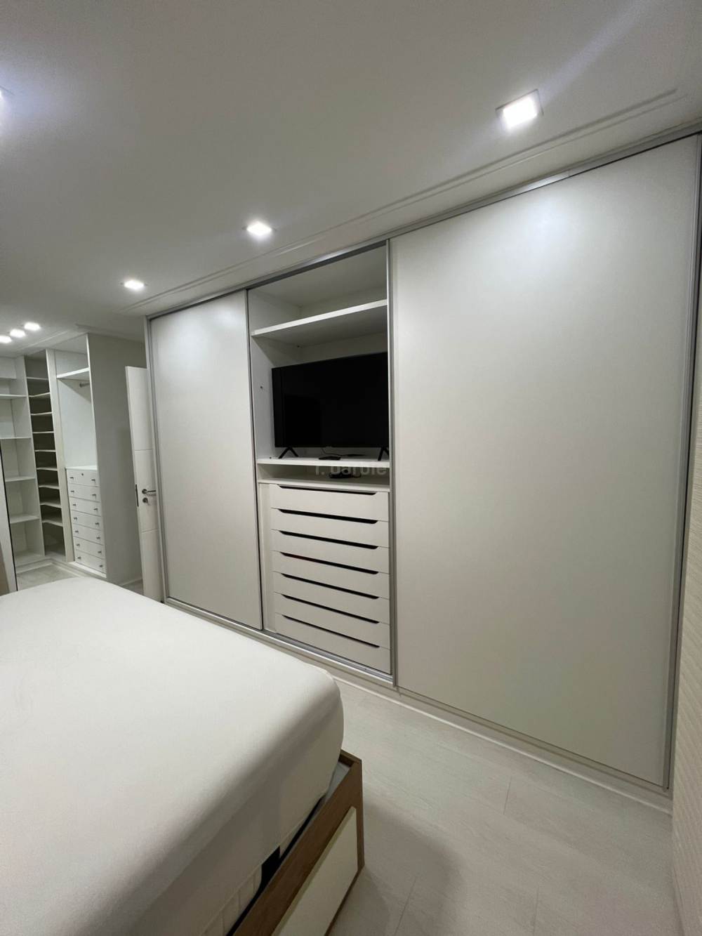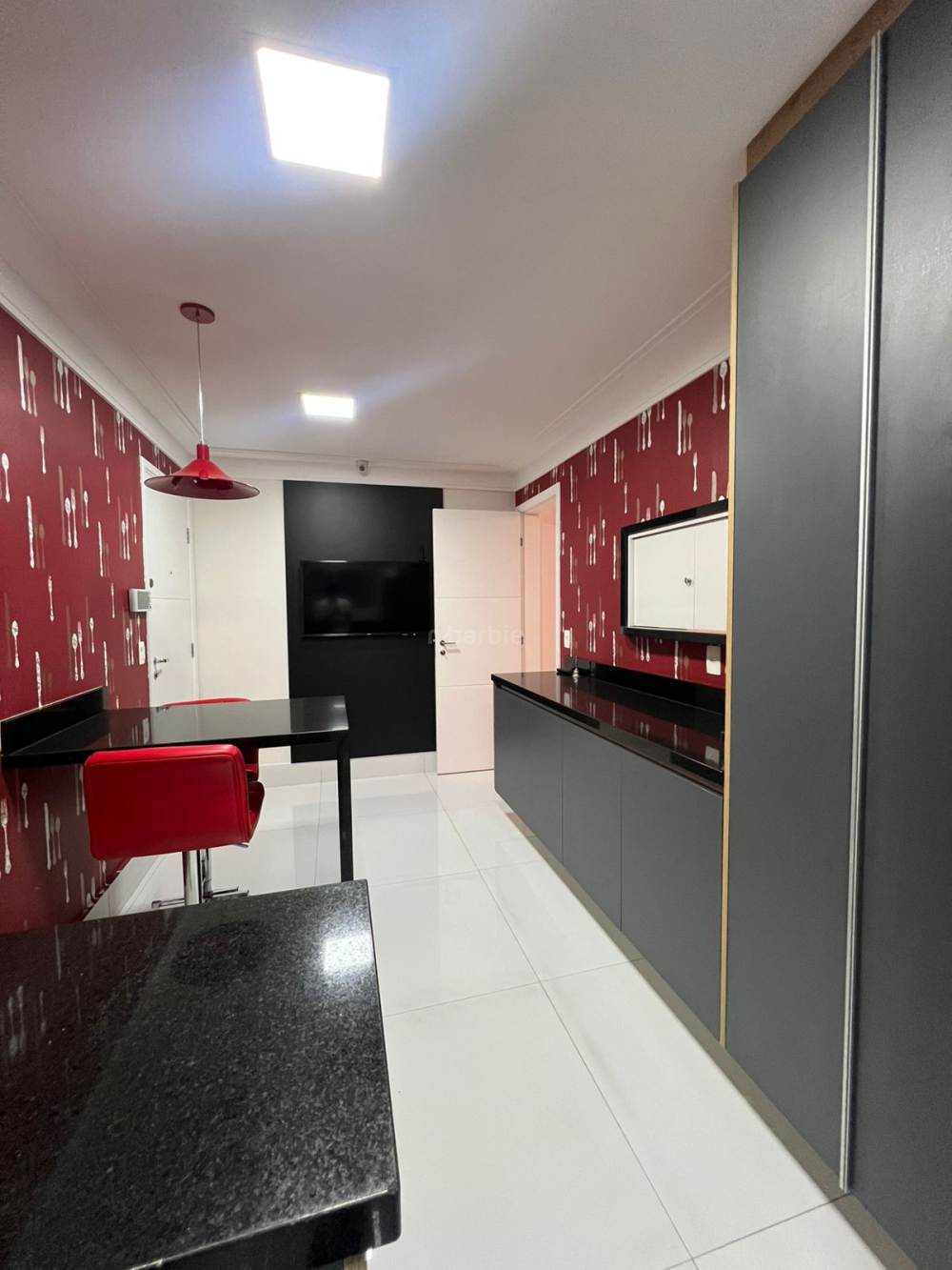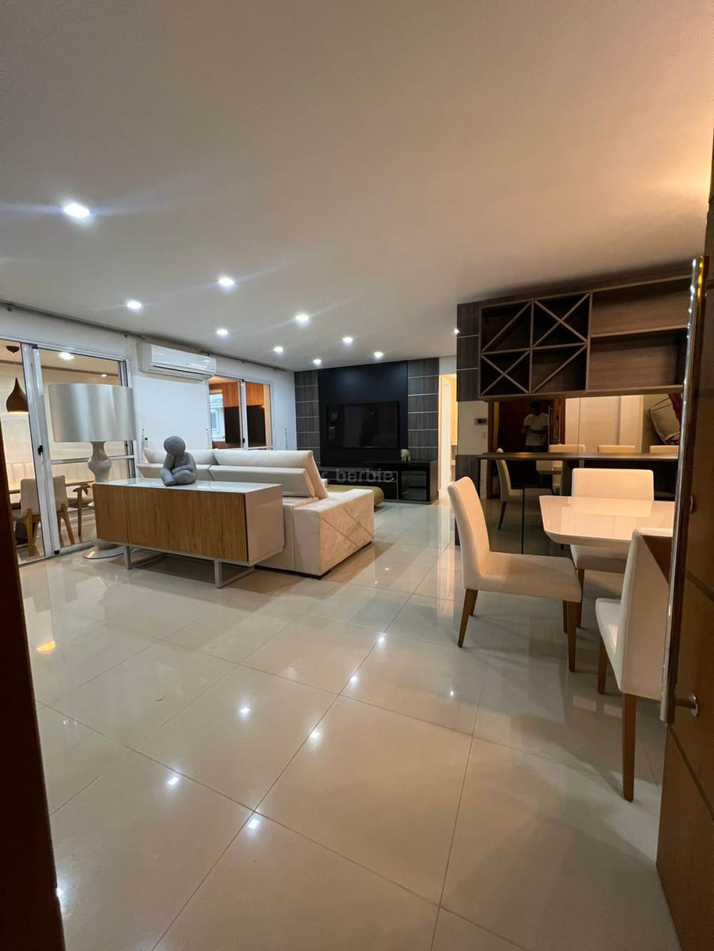 Apartamento mobiliada com 3 suítes em Alphaville, 164 metros, living para 3 ambientes, cozinha ampla com armários planejados e eletrodomésticos, lavanderia, varanda gourmet e 3 vagas de garagem.