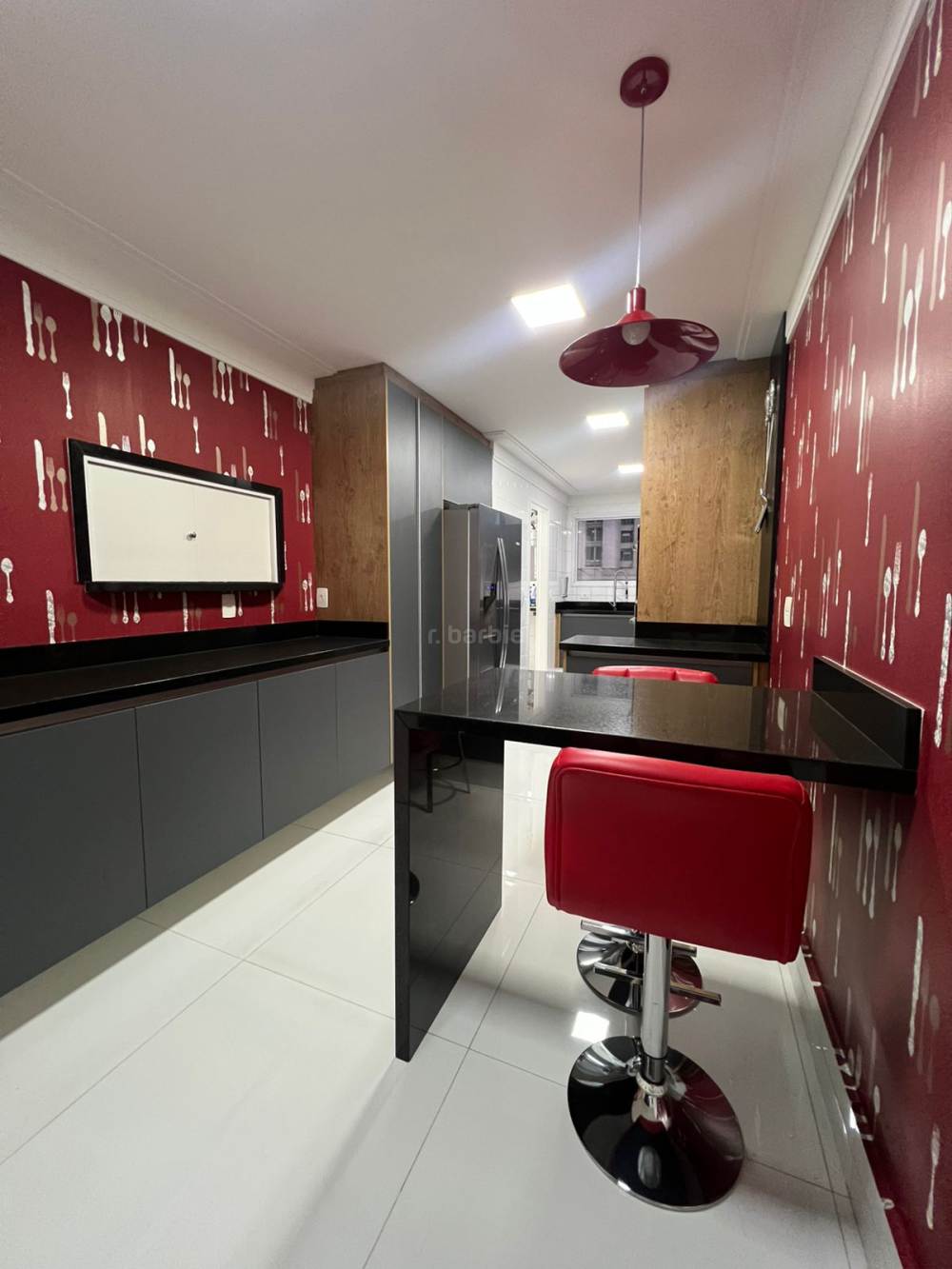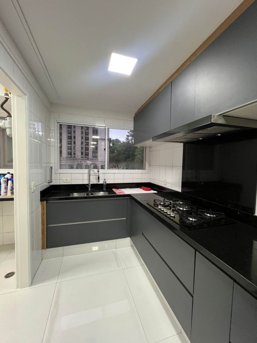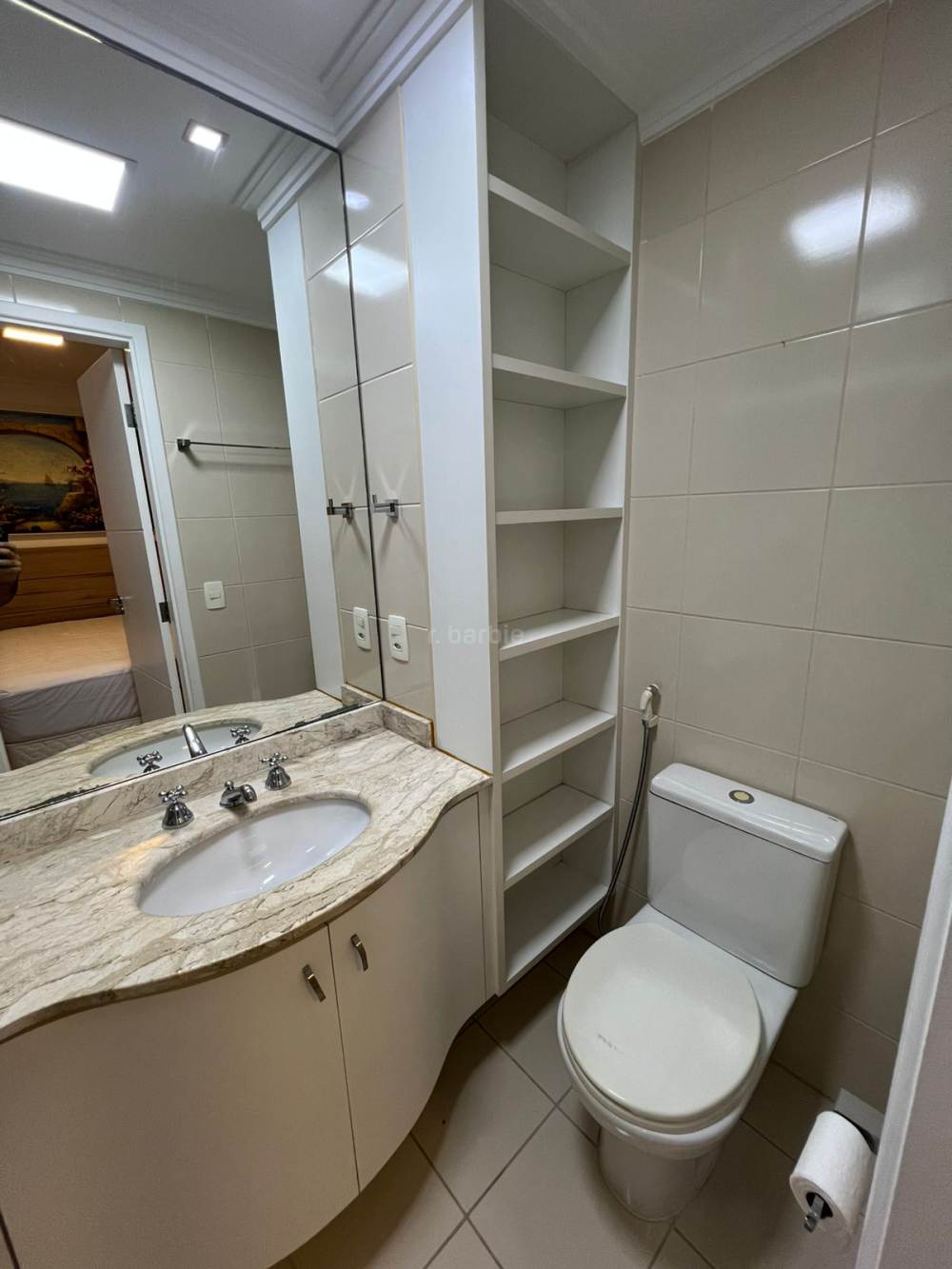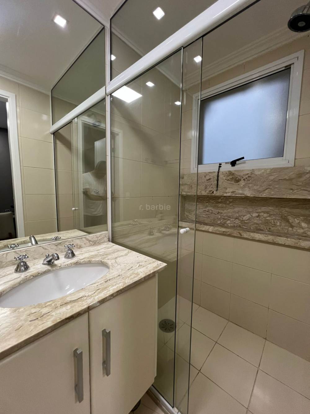Apartamento mobiliada com 3 suítes em Alphaville, 164 metros, living para 3 ambientes, cozinha ampla com armários planejados e eletrodomésticos, lavanderia, varanda gourmet e 3 vagas de garagem.