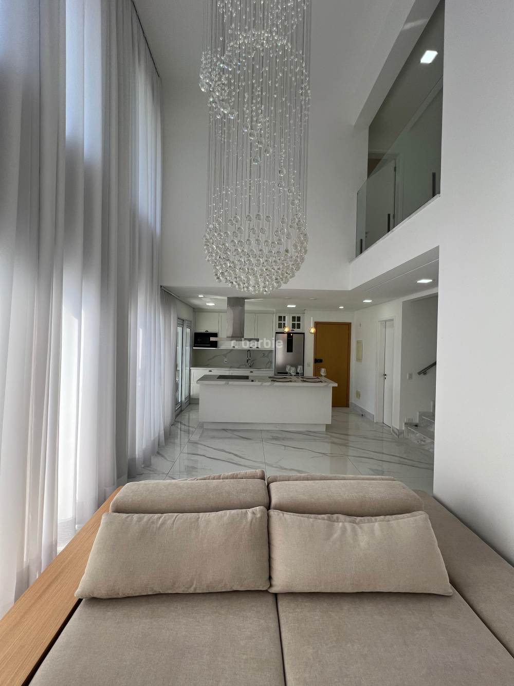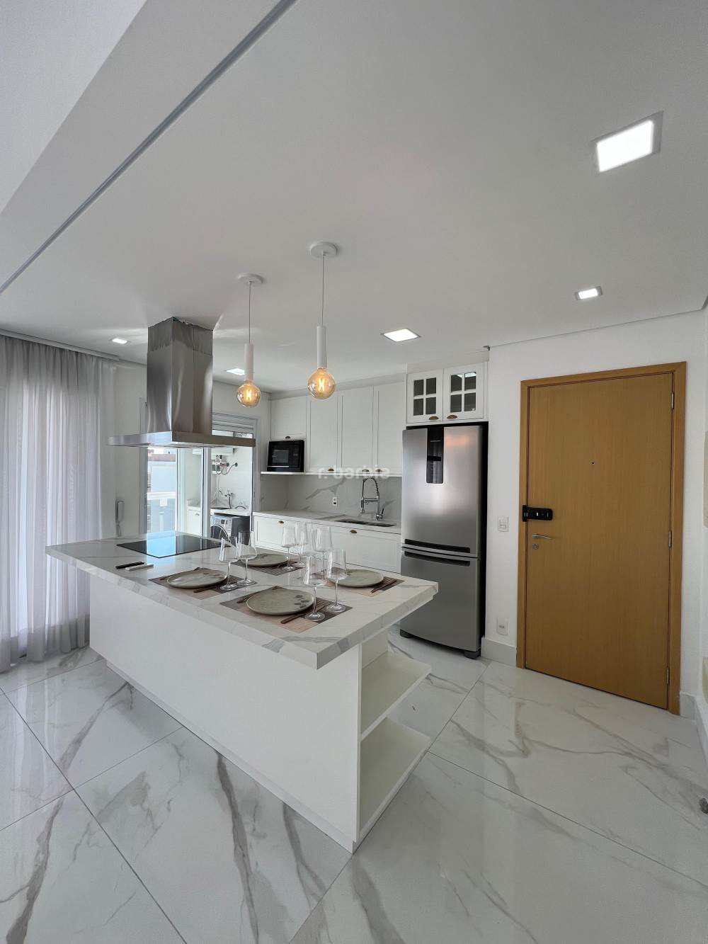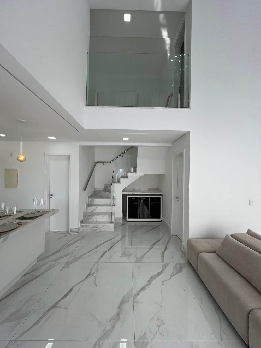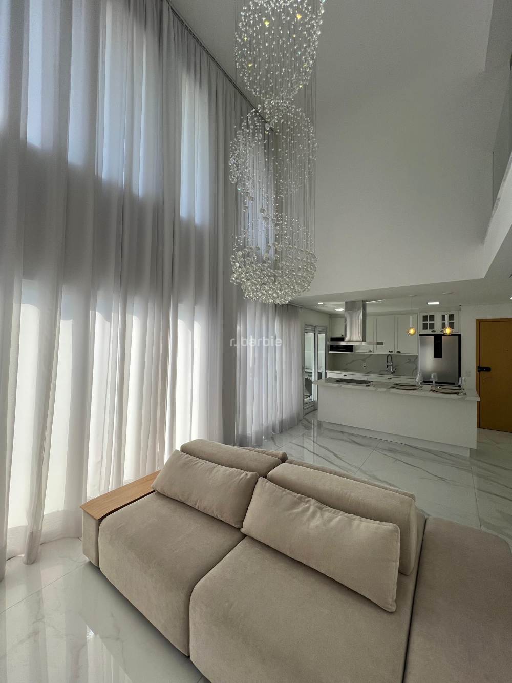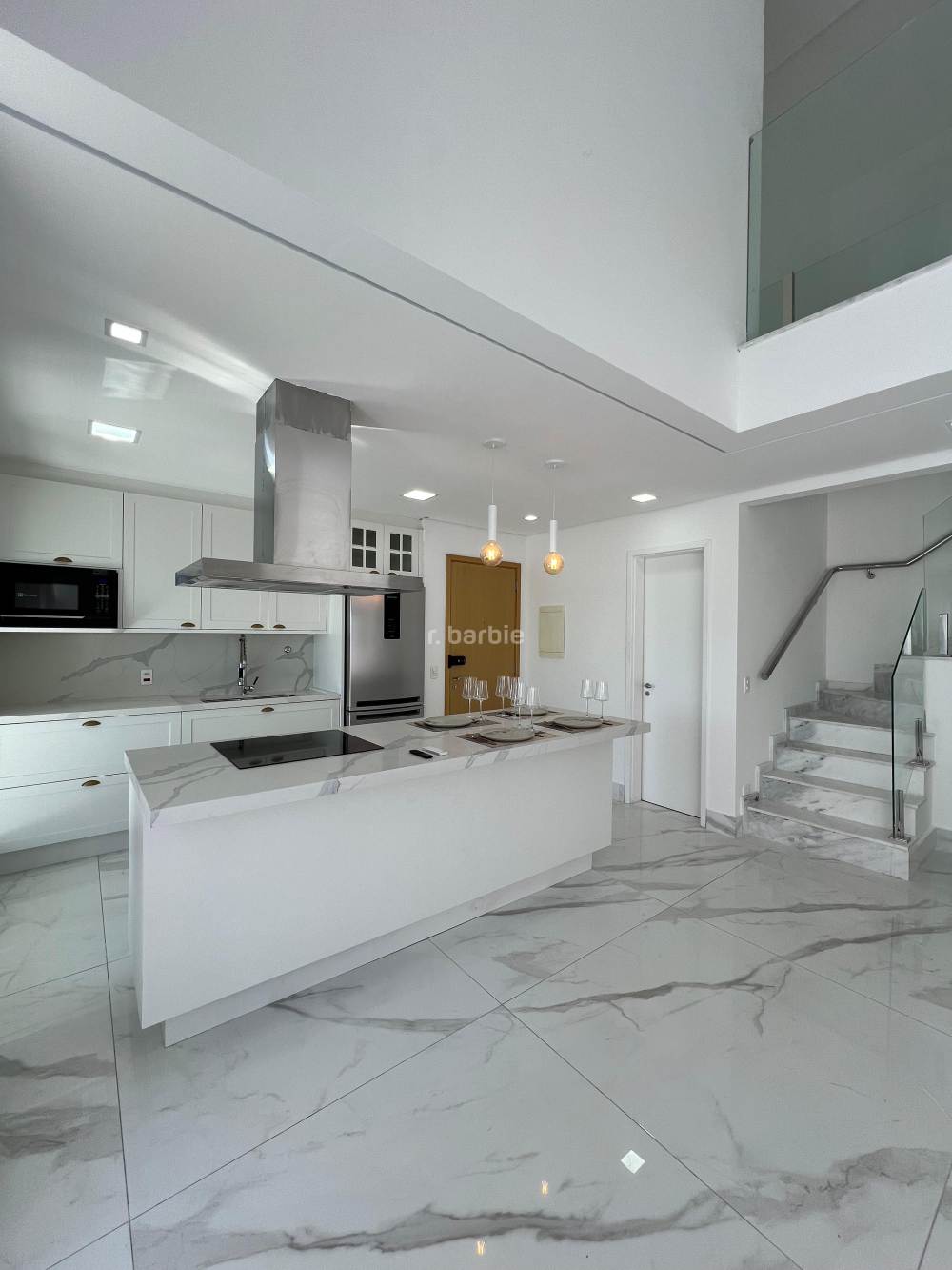 Apartamento duplex mobiliado em Alphaville, 3 suítes sendo 1 como closet que pode ser revertida, 134 metros, living para 2 ambientes com pé direito duplo, bar, cozinha com eletrodomésticos e armários planejados, lavanderia com maquina lava e seca, lavabo, andar alto, vista livre e 2 vagas de garagem.