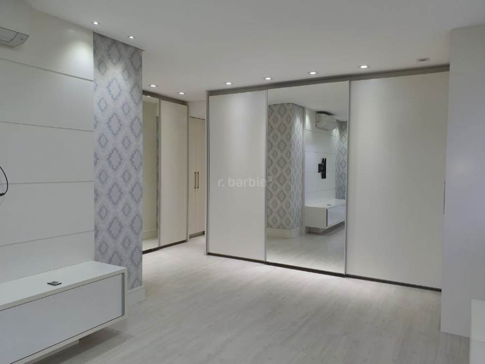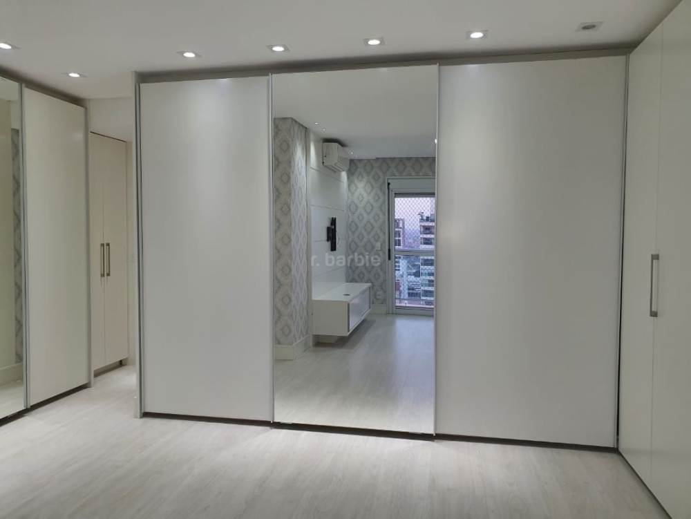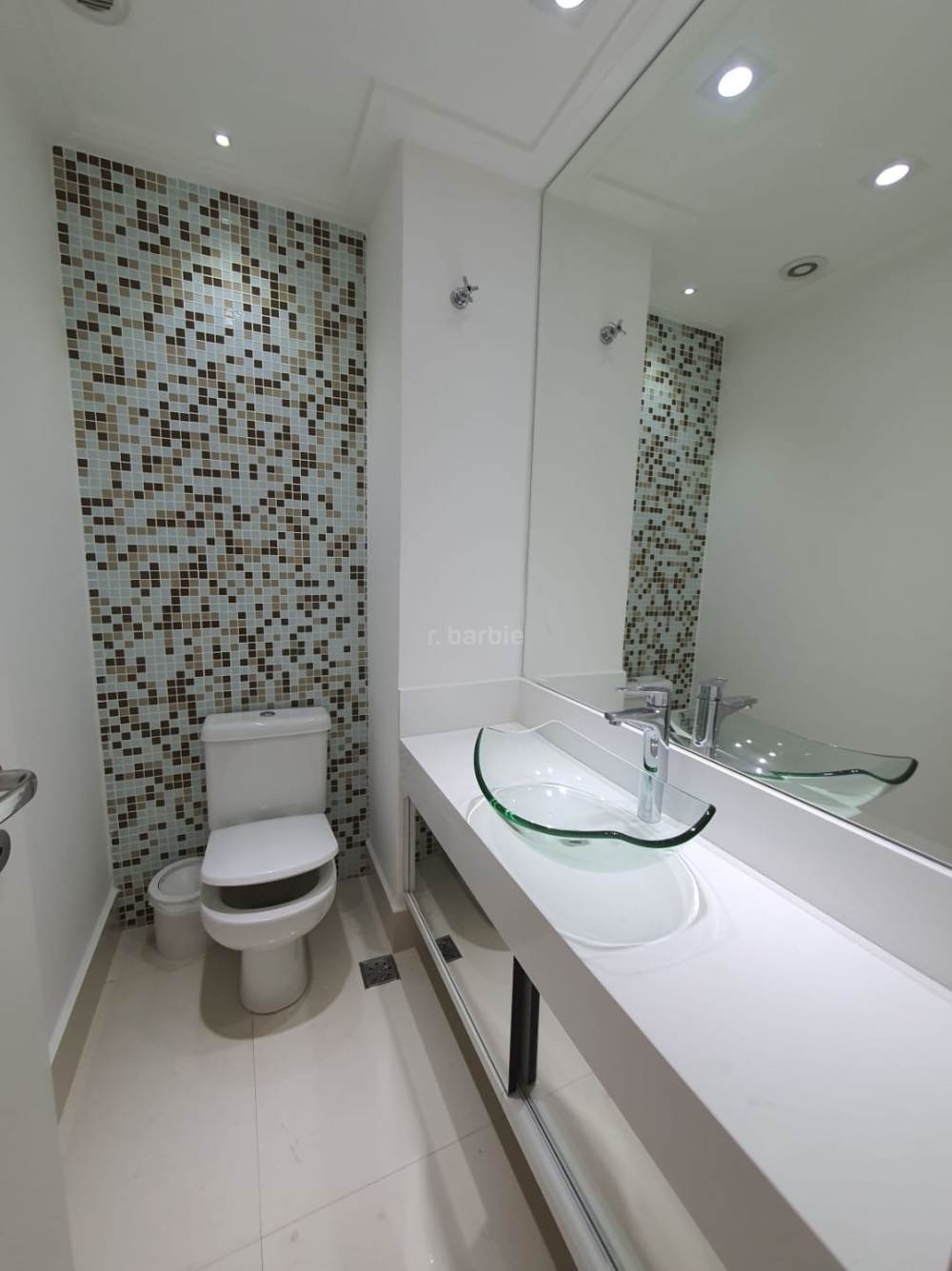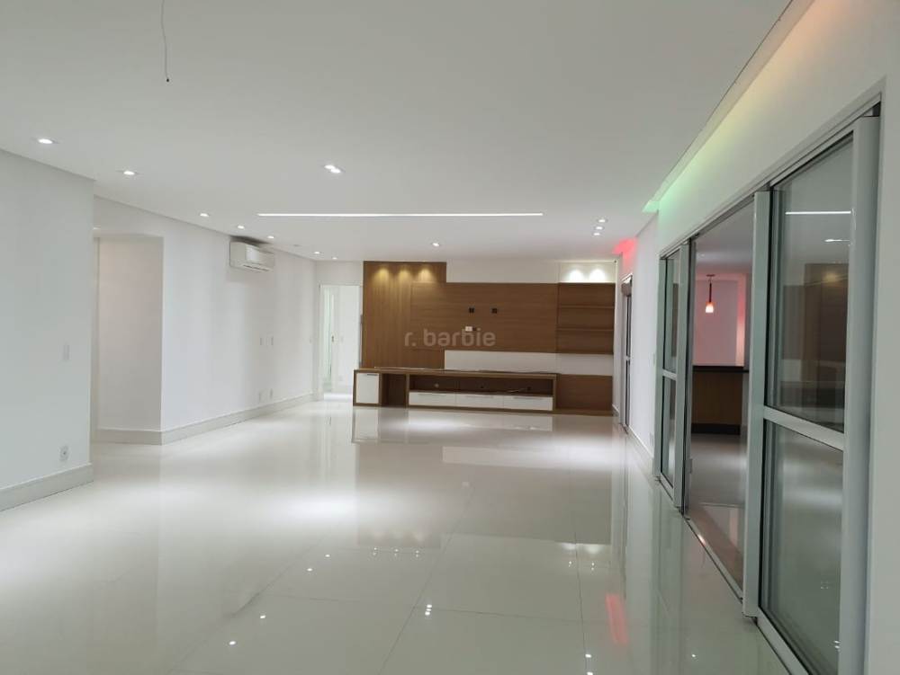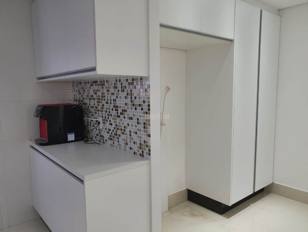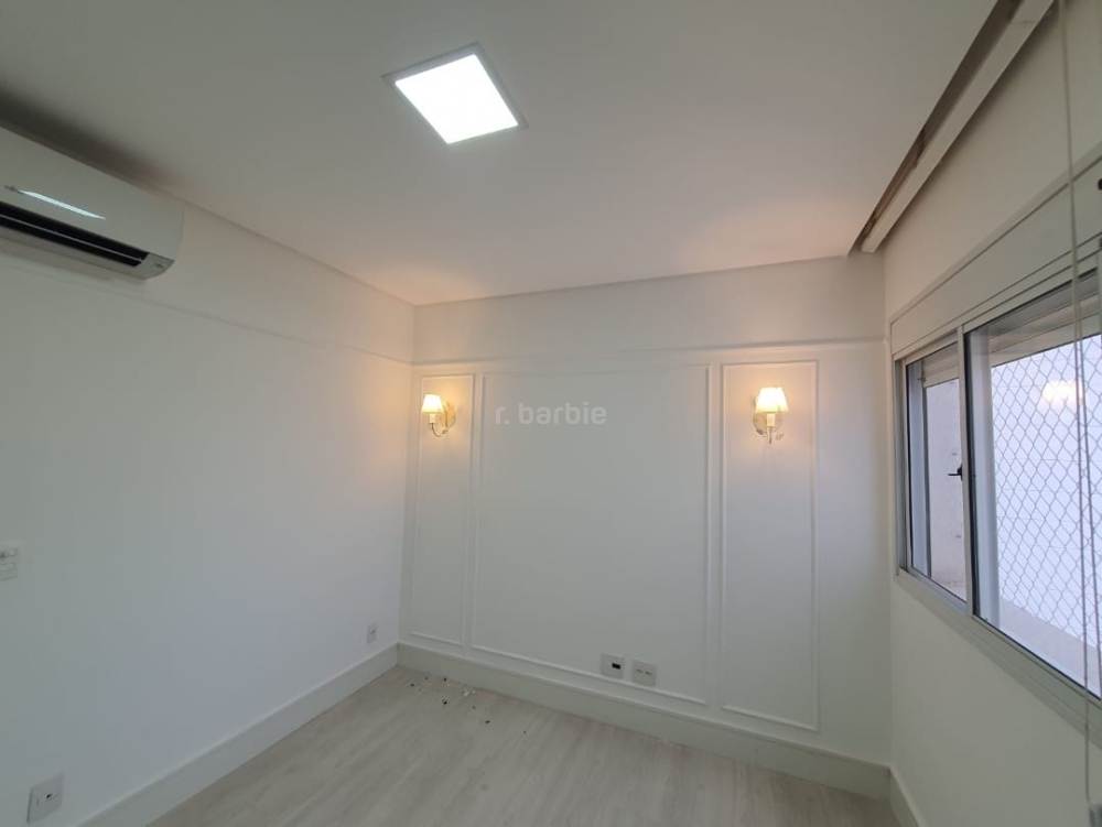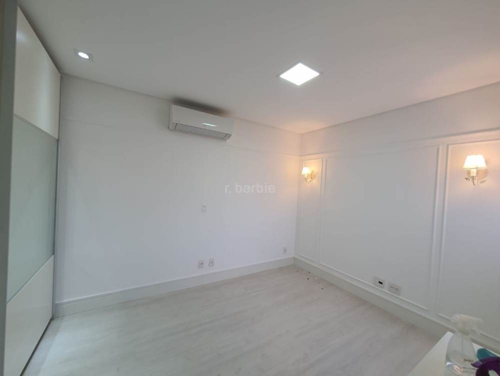 Apartamento com 3 suítes em Alphaville, 243 metros, living para 3 ambientes, escritório, cozinha ampla com armários planejados, lavanderia, lavabo, varanda gourmet com fechamento em vidro, andar alto, vista livre, depósito e 4 vagas de garagem.