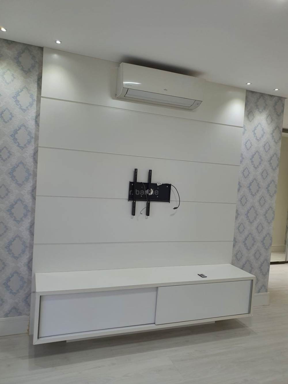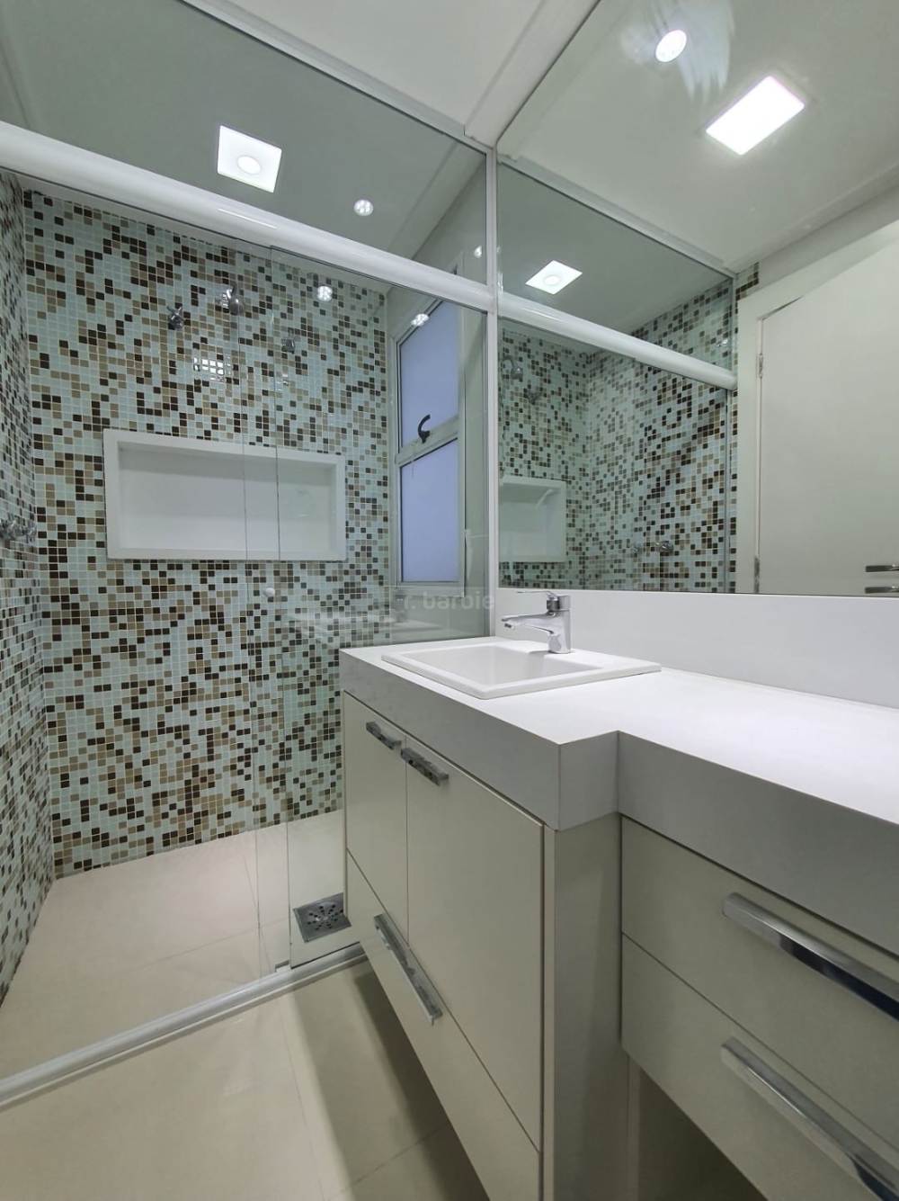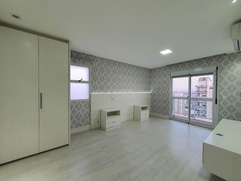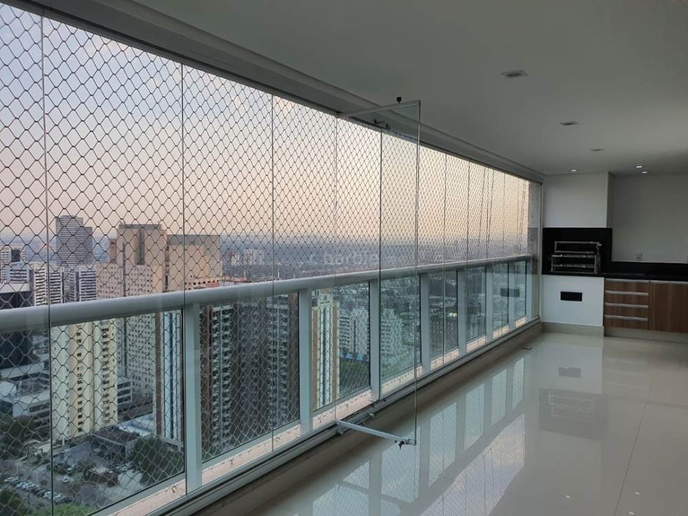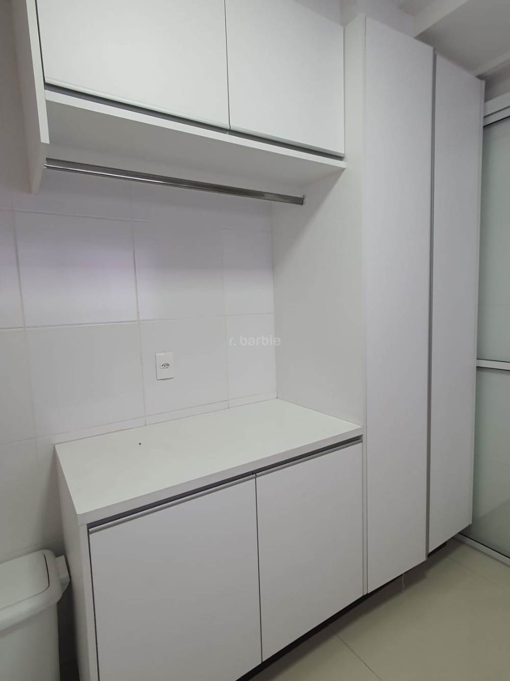 Apartamento com 3 suítes em Alphaville, 243 metros, living para 3 ambientes, escritório, cozinha ampla com armários planejados, lavanderia, lavabo, varanda gourmet com fechamento em vidro, andar alto, vista livre, depósito e 4 vagas de garagem.