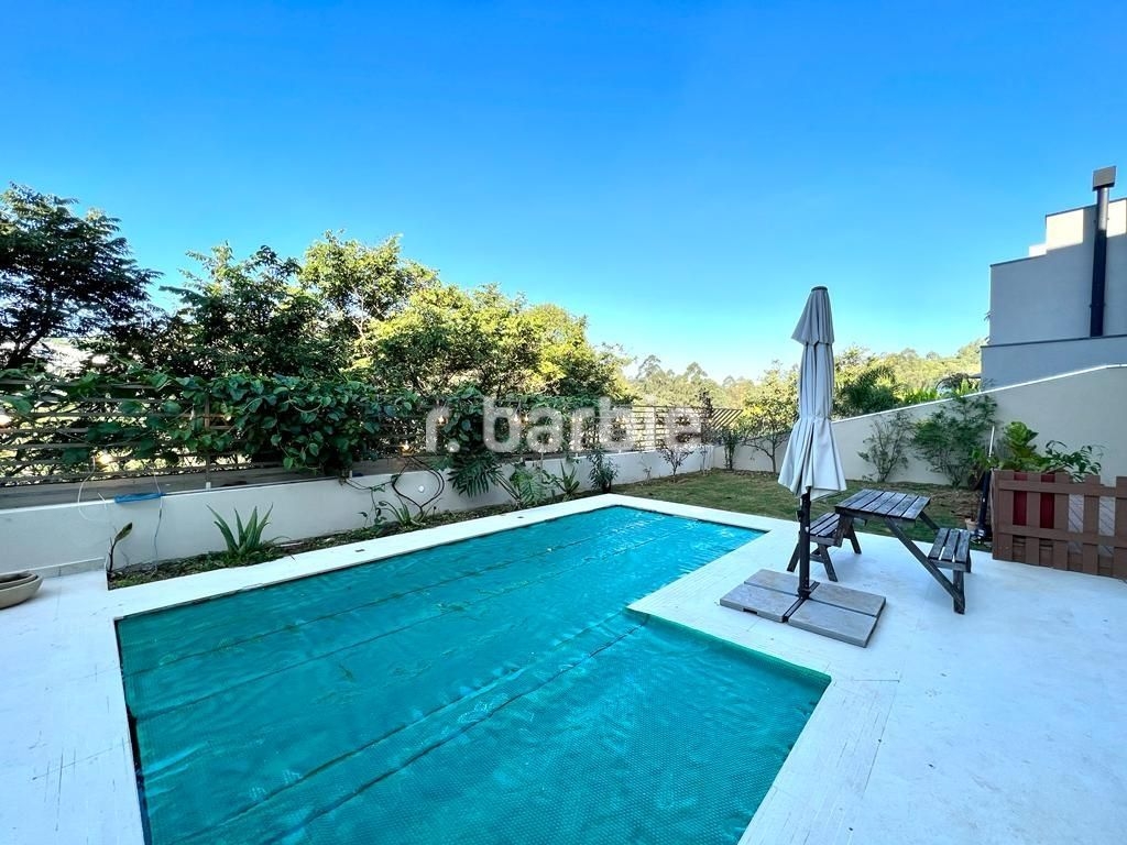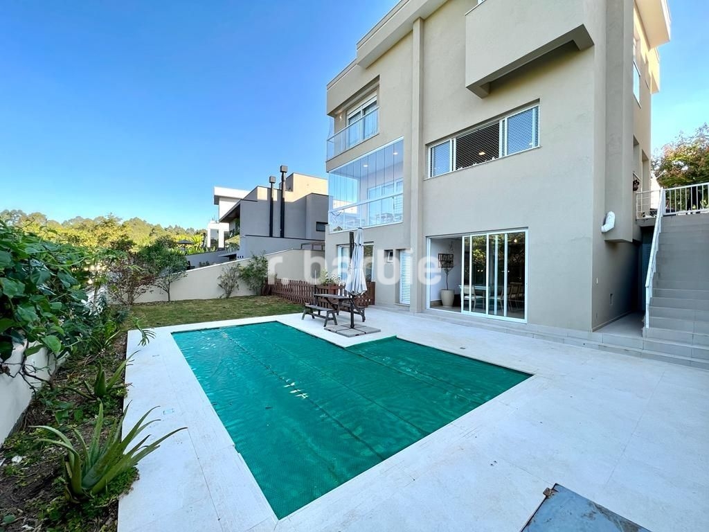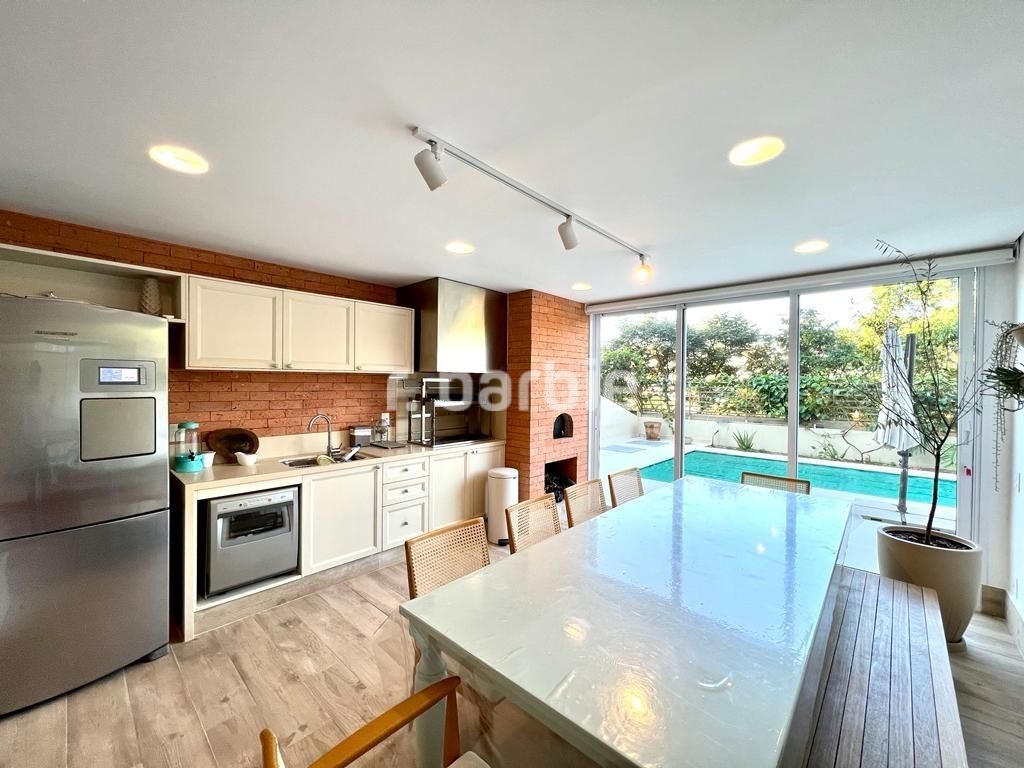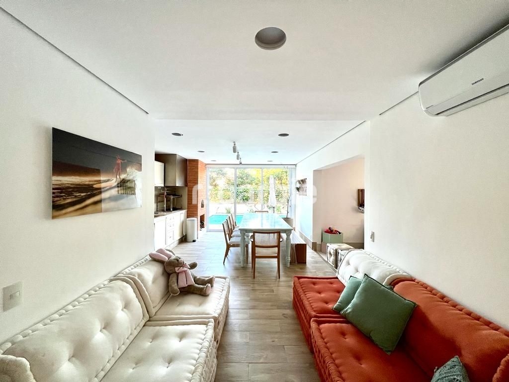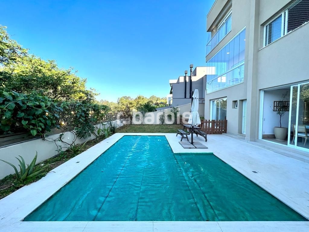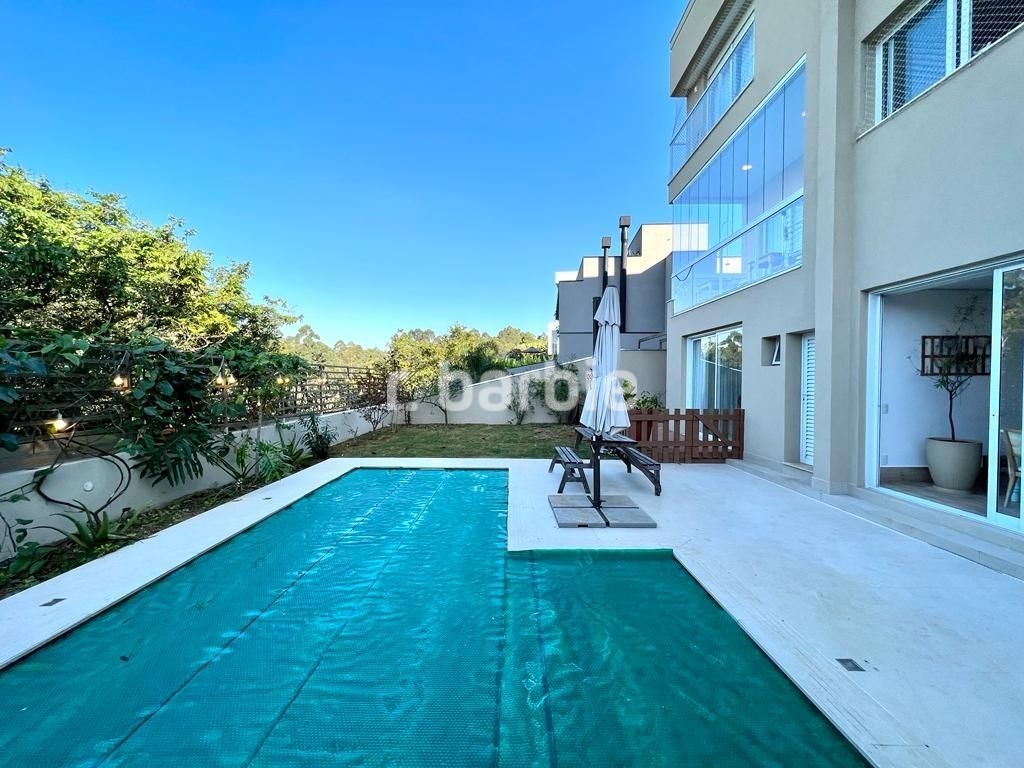 Belíssima casa com 500 metros de terreno e 450 metros de área construída, 4 amplas suítes, living para 3 ambientes com pé direito duplo, área gourmet integrando os ambientes, piscina aquecida com vista livre, salão de festa, escritório, sala íntima, closet, banheiro de hidromassagem, dependência de empregada e 5 vagas de garagem.