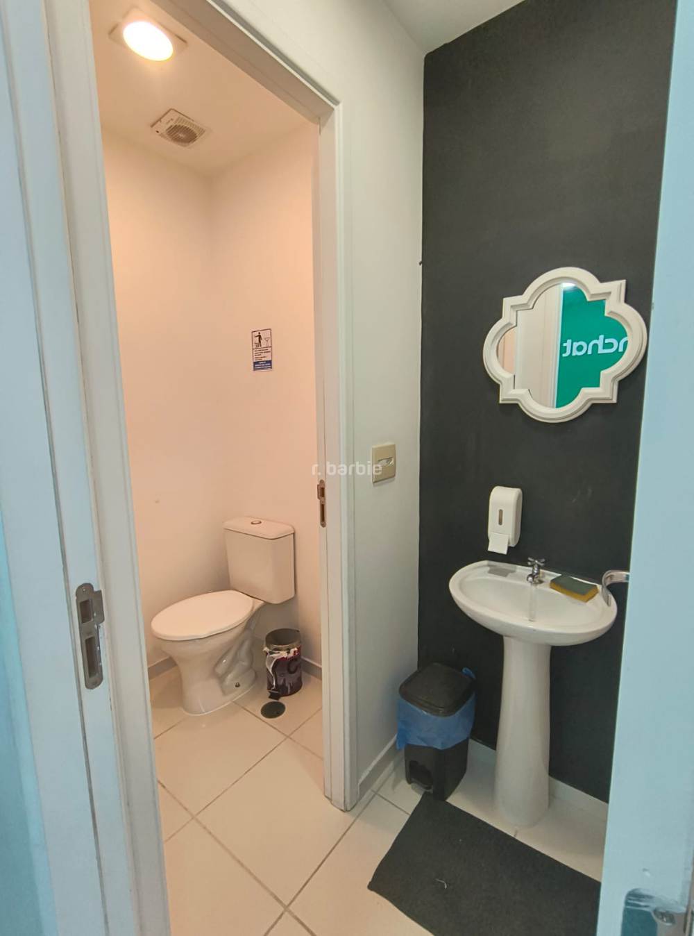 Sala comercial em Alphaville, 47 metros, living para 2 ambientes, 2 banheiros e 1 vaga de garagem.