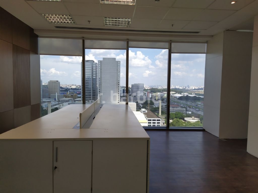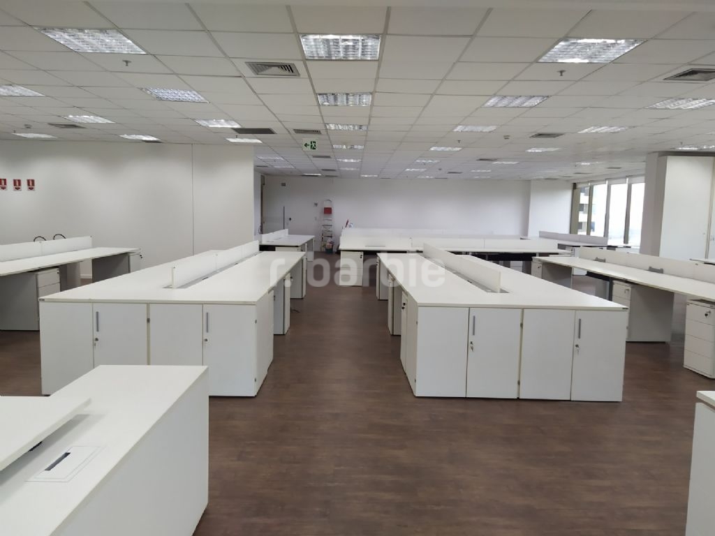 Excelente sala comercial mobiliada com 1320 metros, possui 1 sala de presidente, 4 salas de diretoria, 1 sala de reunião para 16 pessoas, 4 salas de reunião para 8 pessoas, 8 salas para departamentos e 2 amplos open spaces com o total de 100 posições de trabalho (sem contar as salas de departamento, diretoria, etc.),16 banheiros, imóvel com piso elevado, forro e ar dutado, andar alto e 40 Vagas de garagem.