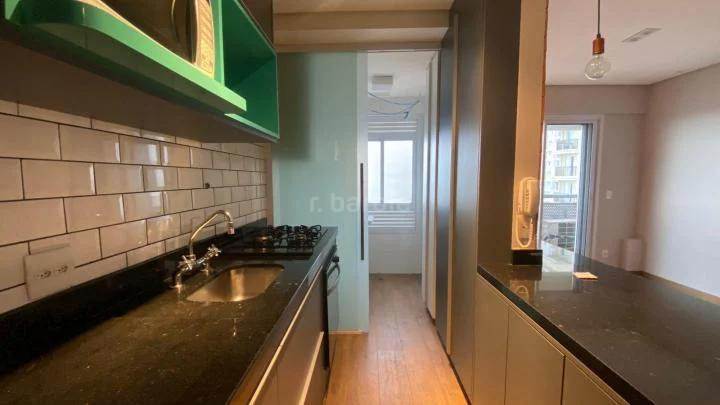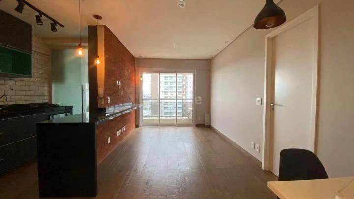 Apartamento mobiliado em Alphaville, 52 metros, 1 suíte, 2 banheiros, cozinha com armários e eletrodomésticos, lavanderia, ar condicionado, sacada 1 vaga de garagem.