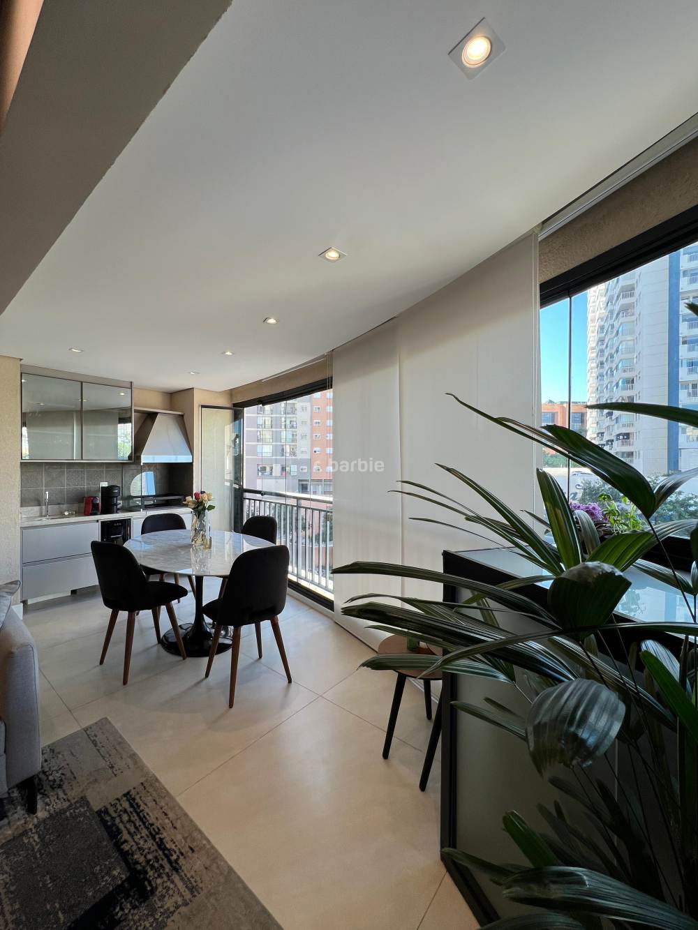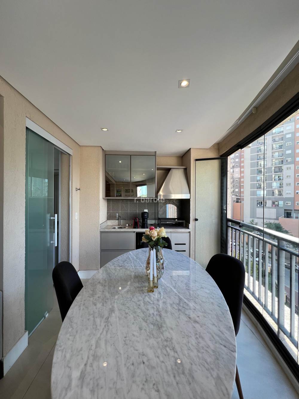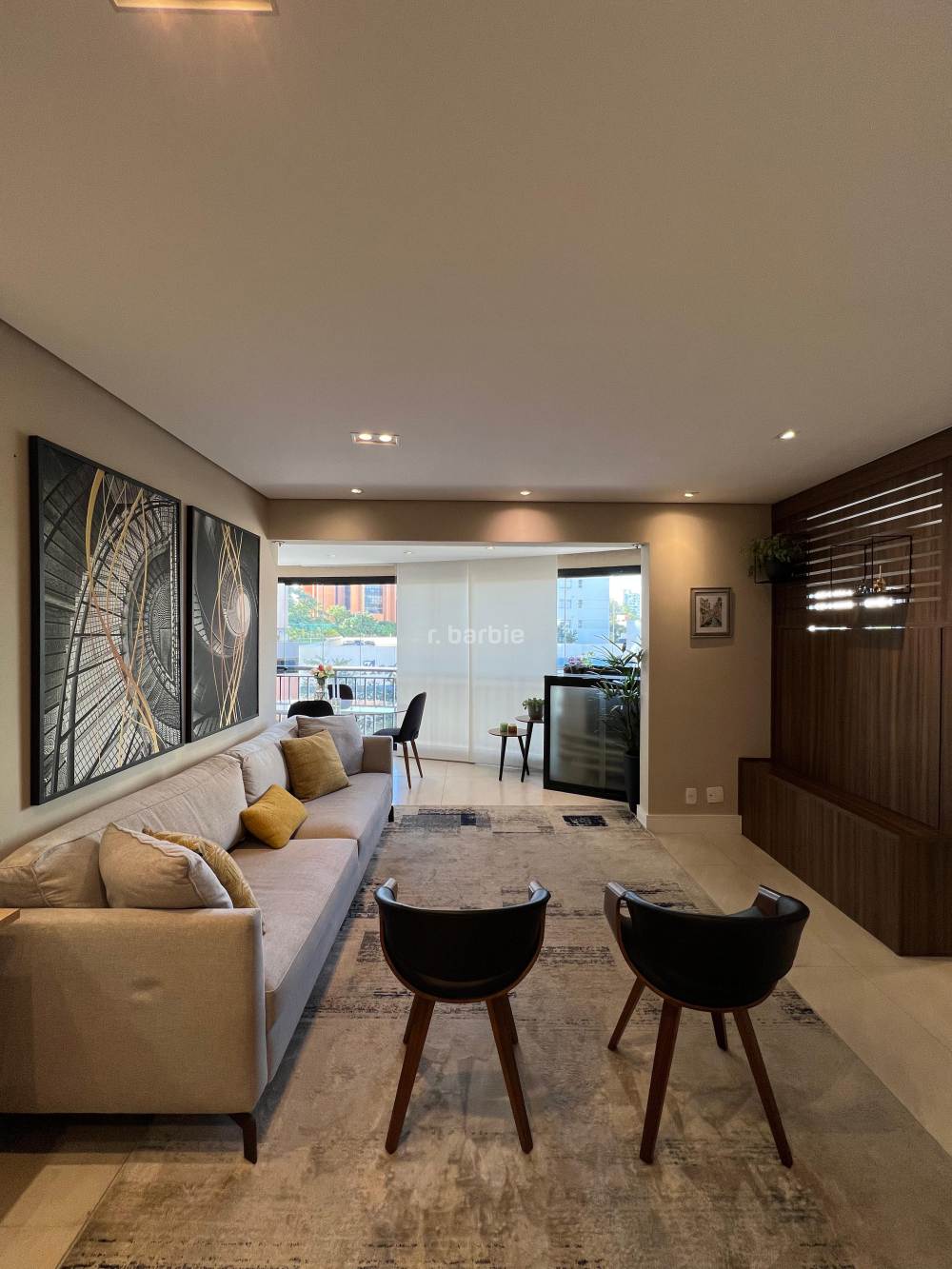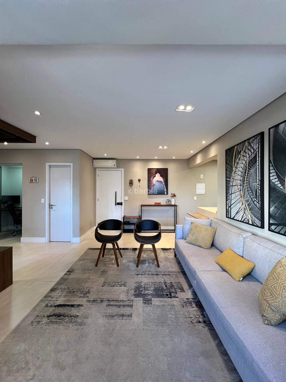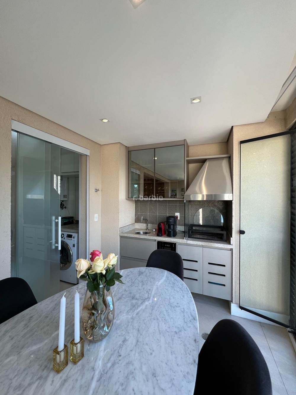 Apartamento mobiliado com 2 suítes em Alphaville, 98 metros, living para 3 ambientes, cozinha ampla com eletrodomésticos e armários planejados, lavanderia, lavabo, escritório, varanda gourmet com churrasqueira e 3 vagas de garagem.