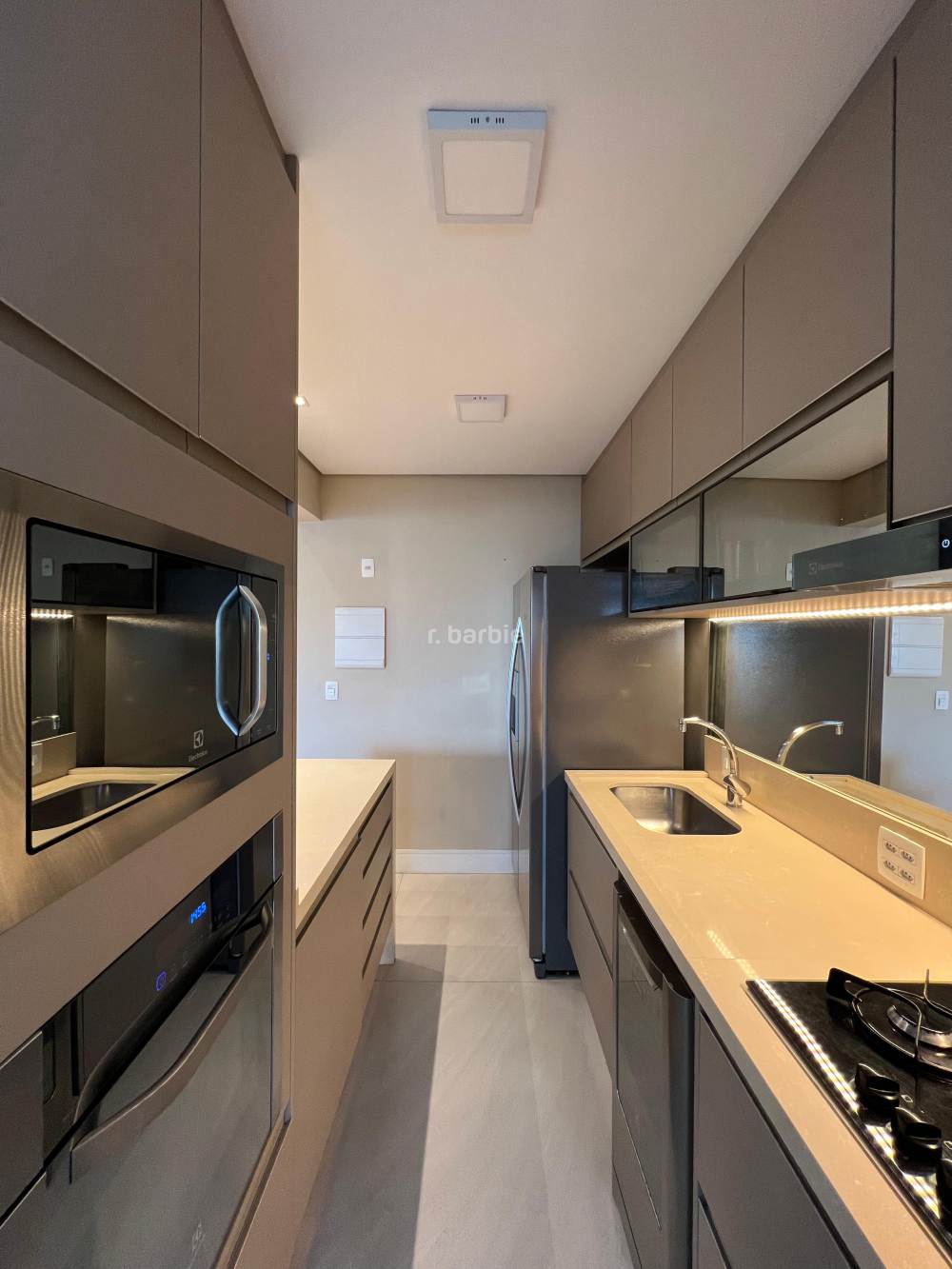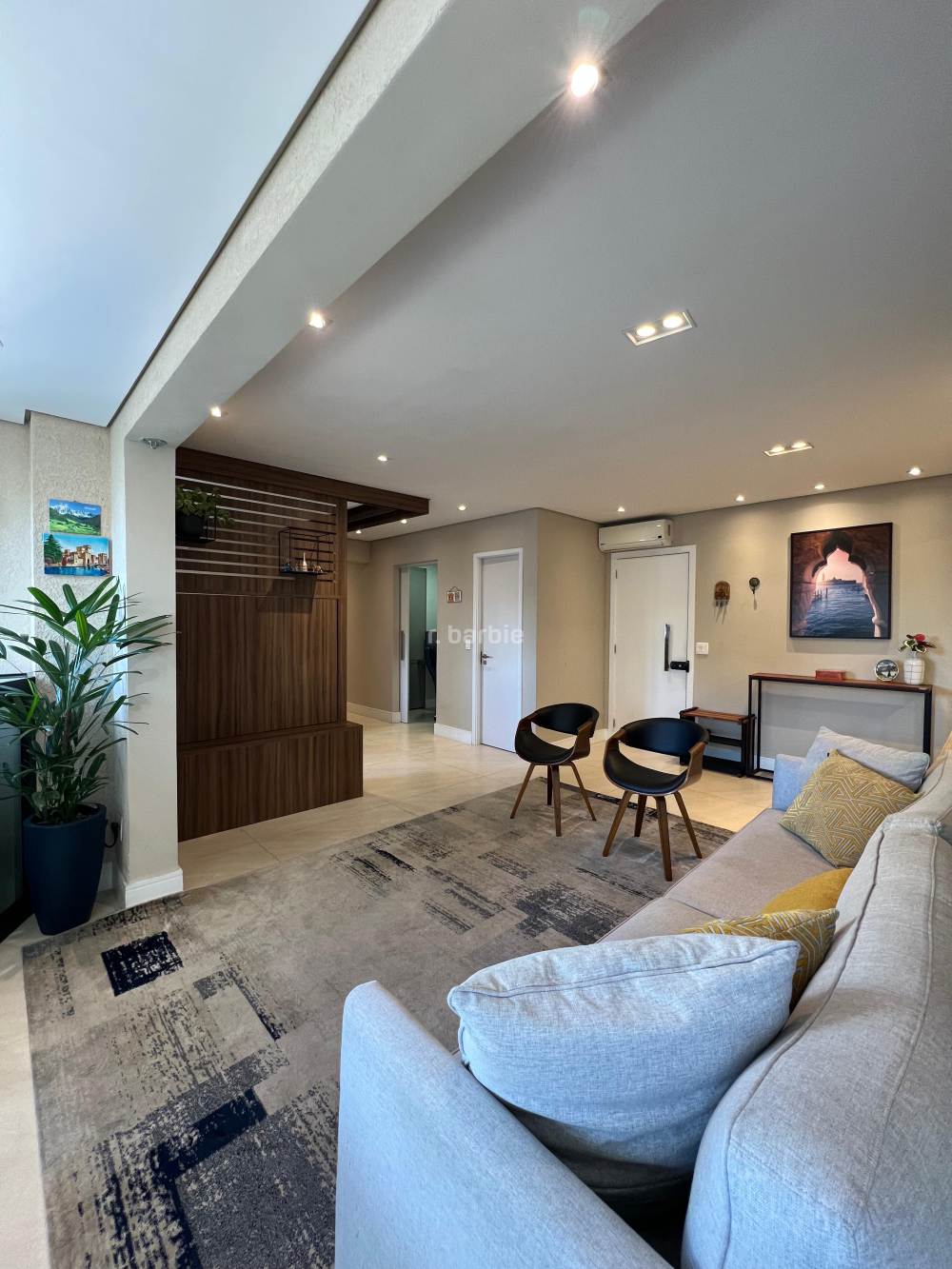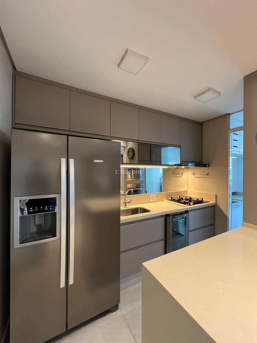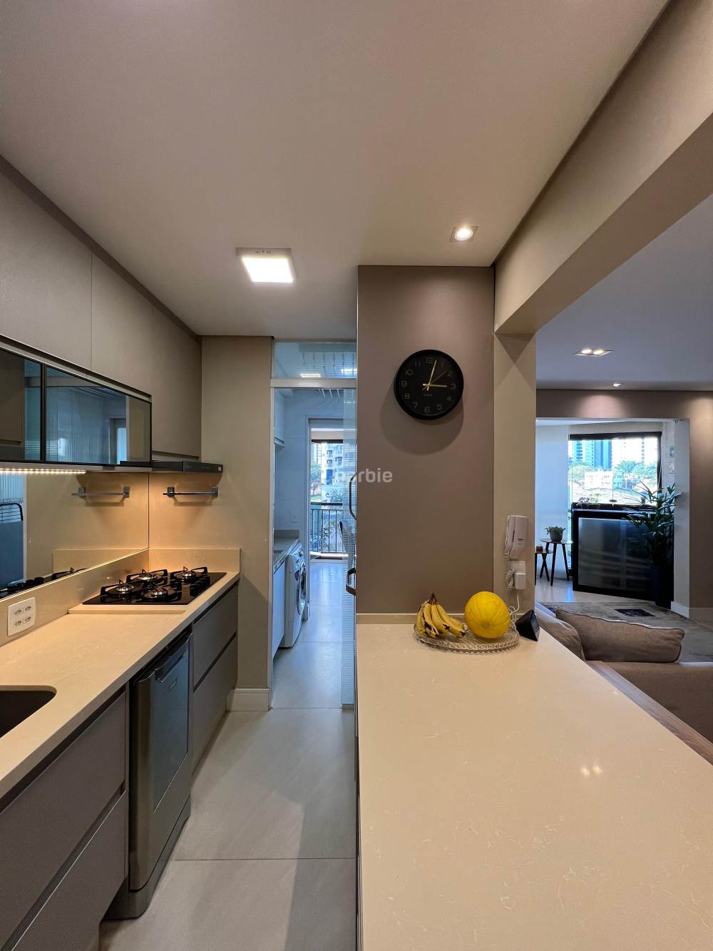 Apartamento mobiliado com 2 suítes em Alphaville, 98 metros, living para 3 ambientes, cozinha ampla com eletrodomésticos e armários planejados, lavanderia, lavabo, escritório, varanda gourmet com churrasqueira e 3 vagas de garagem.