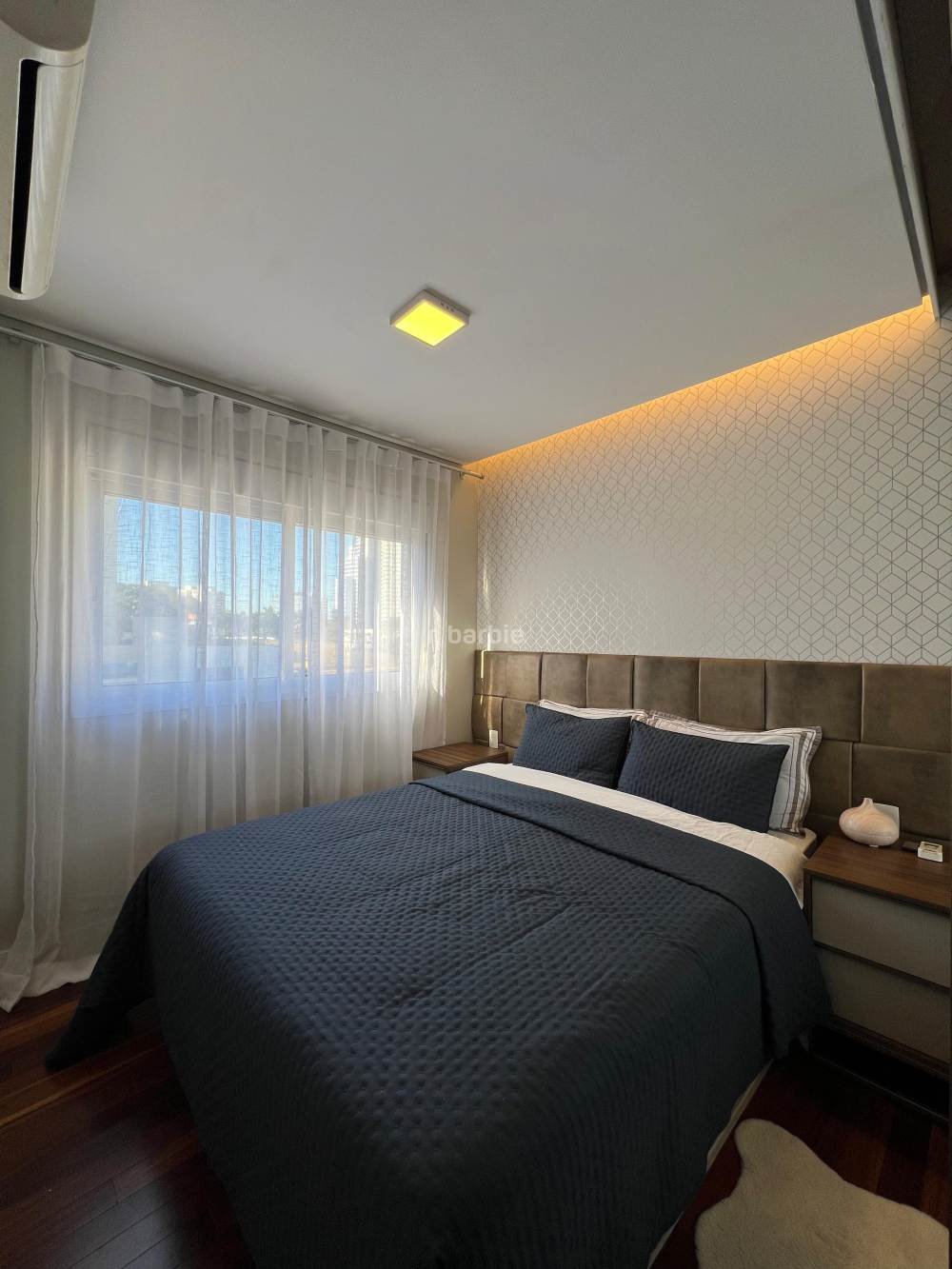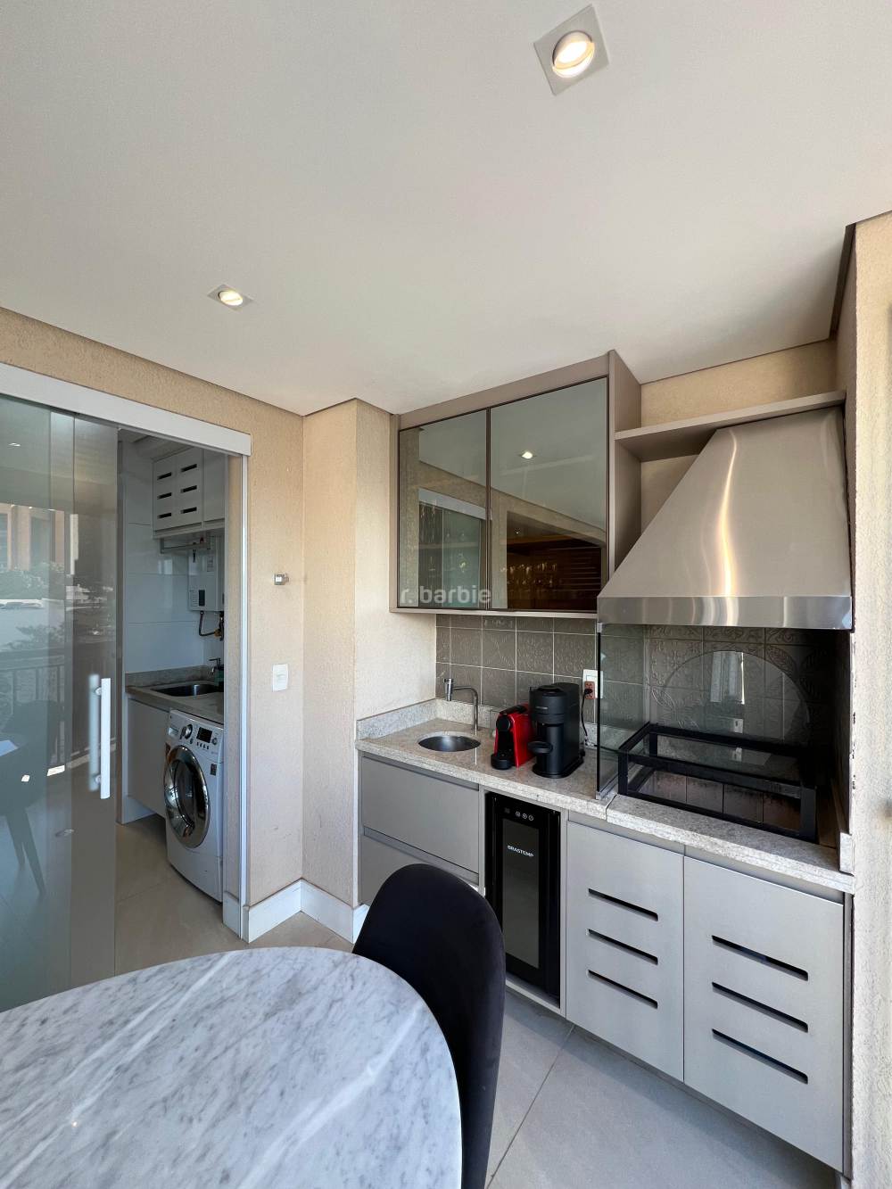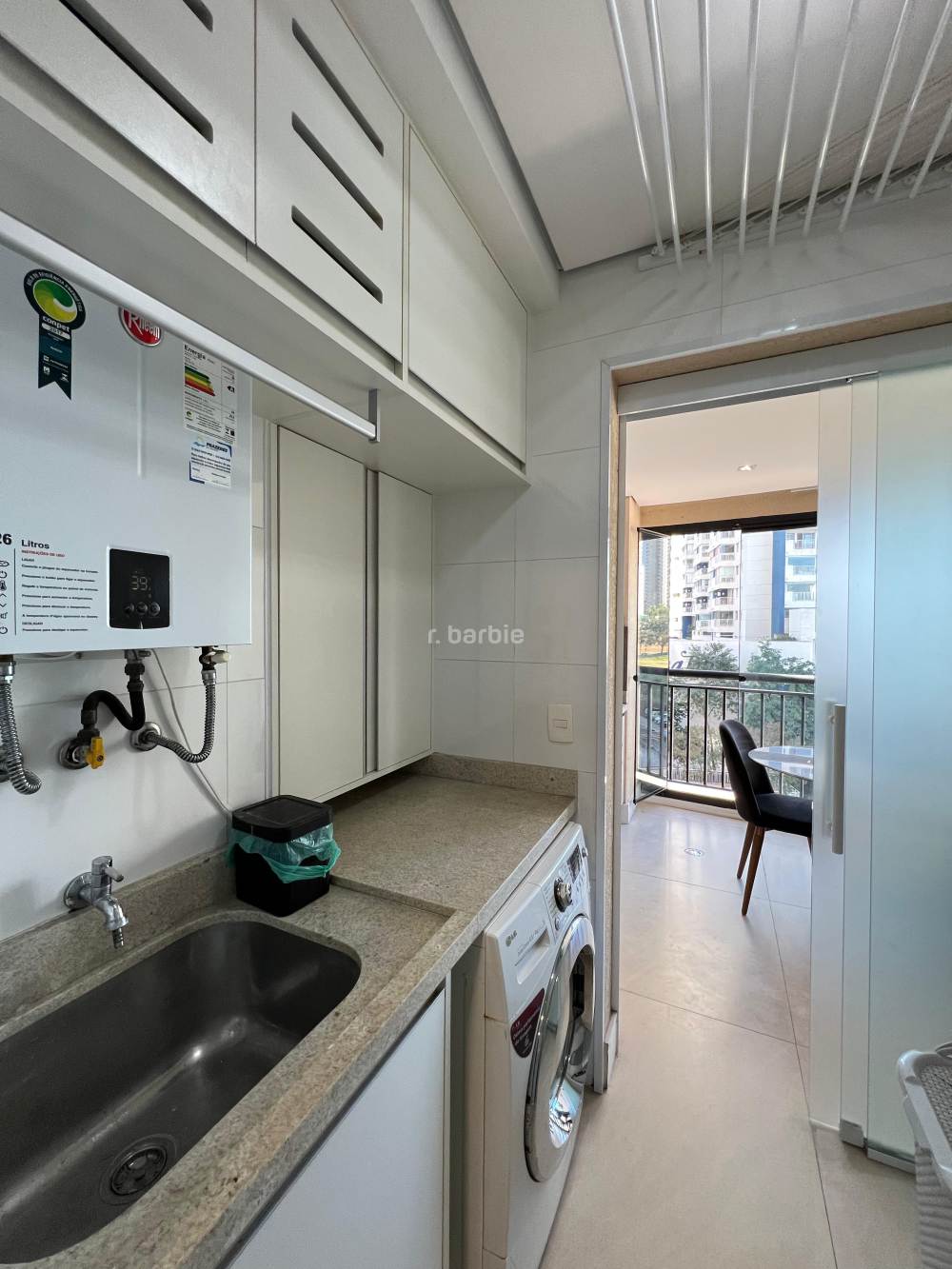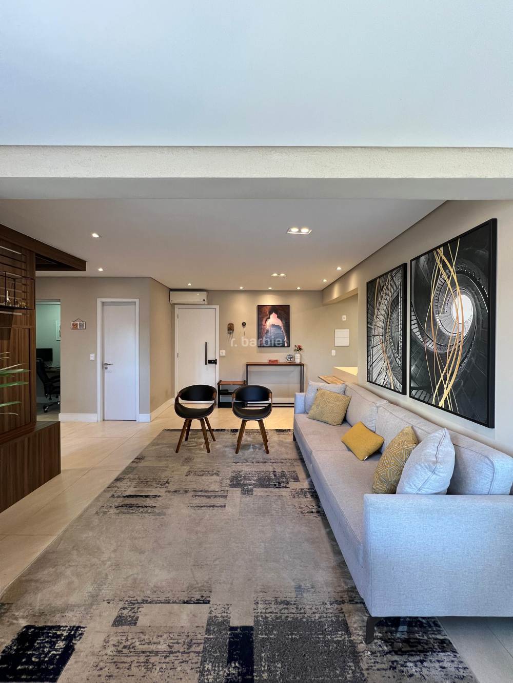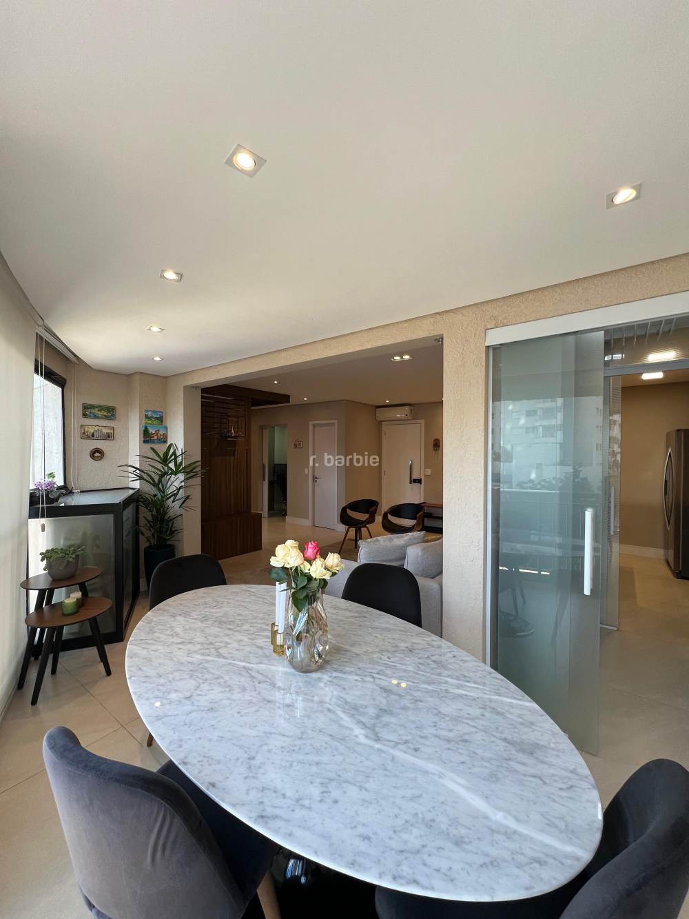 Apartamento mobiliado com 2 suítes em Alphaville, 98 metros, living para 3 ambientes, cozinha ampla com eletrodomésticos e armários planejados, lavanderia, lavabo, escritório, varanda gourmet com churrasqueira e 3 vagas de garagem.