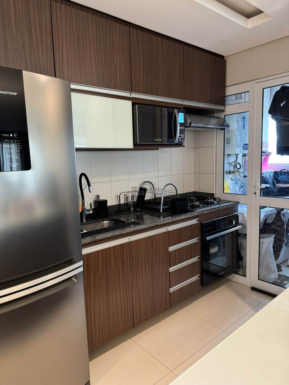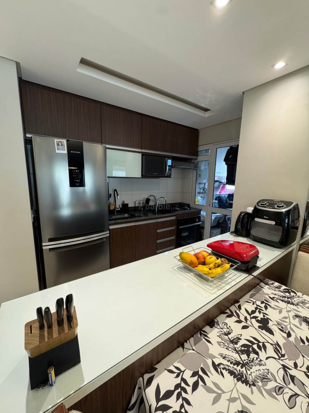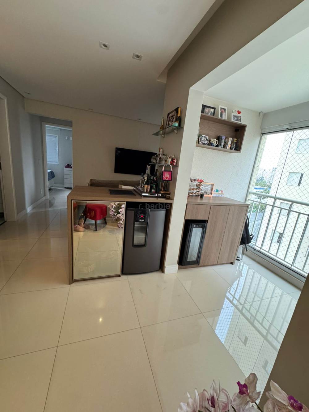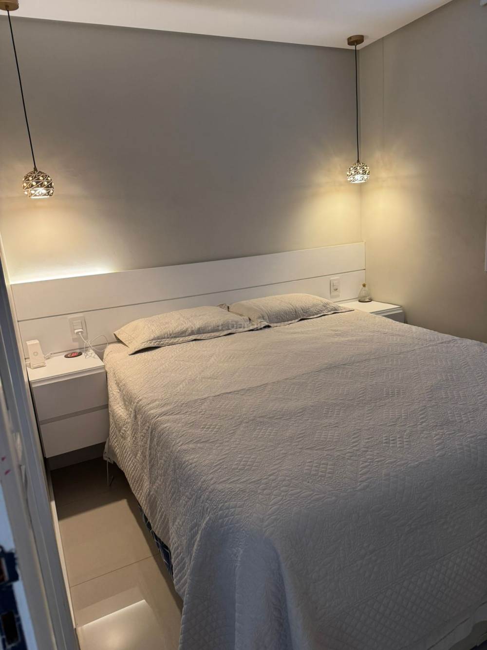 Apartamento de 64 metros com 2 dormitórios sendo 1 suíte e 1 vaga de garagem em andar médio, varanda envidraçada, living para e ambientes, sendo sala de estar, jantar e Tv, cozinha americana equipada, lavanderia, decoração clean e repleto de armários.