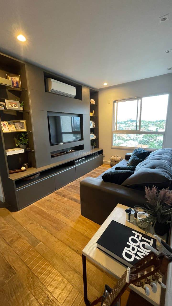 Apartamento em Alphaville, 63 metros, 2 dormitórios, living para 2 ambientes, 1 banheiro, todos os ambientes com ar condicionado, cozinha ampla com armários planejados, andar alto, vista livre e 1 vaga de garagem.