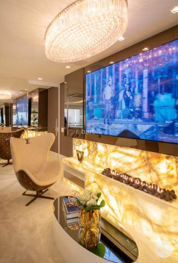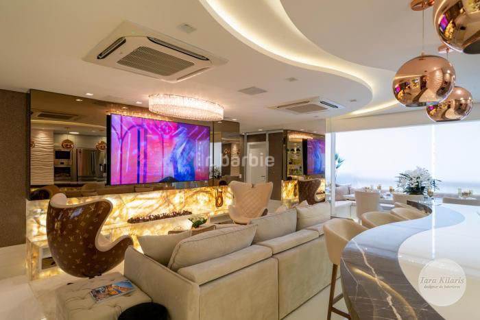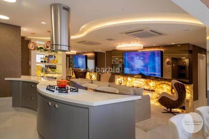 Apartamento mobiliado e decorado em Alphaville de extremo bom gosto com 110 metros, 2 suítes, living para 3 ambientes integrado, 4 banheiros, cozinha com armários planejados e eletrodomésticos embutidos, varanda gourmet integrada, lavabo que toca musica, andar alto e 4 vagas de garagem.