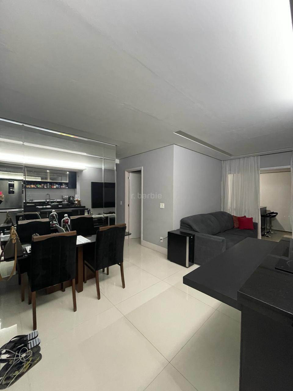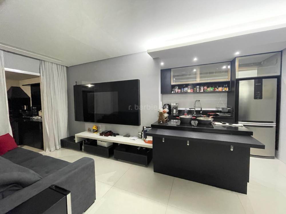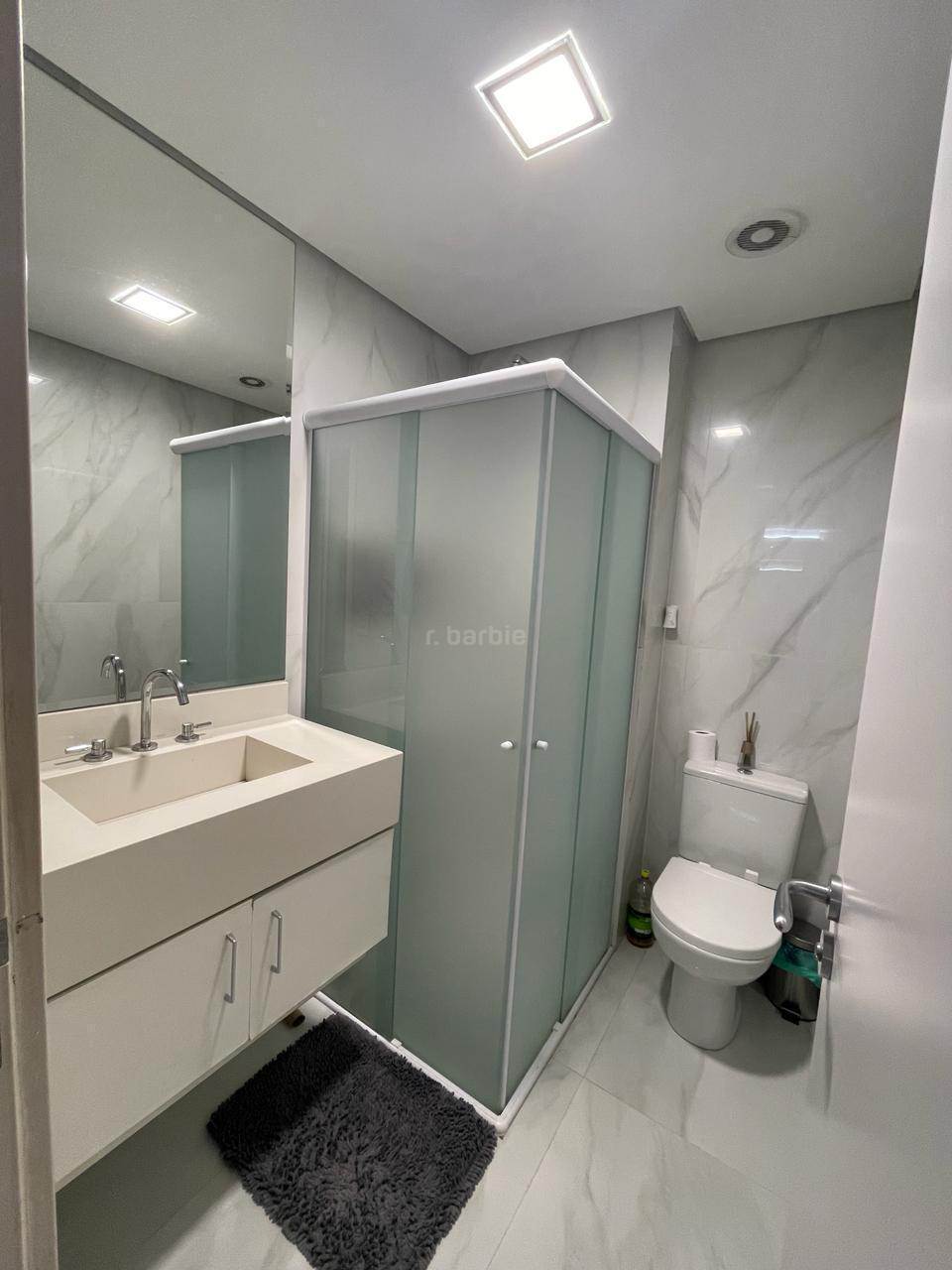 Apartamento à venda com 2 dormitórios e 1 vaga de garagem, varanda gourmet, andar alto, cozinha americana, banheiro social, decoração clean e repleto de armários