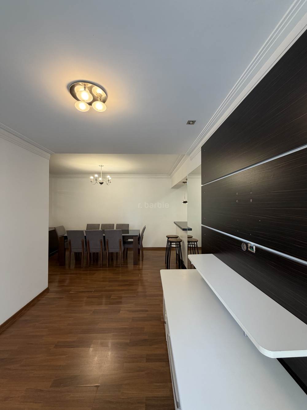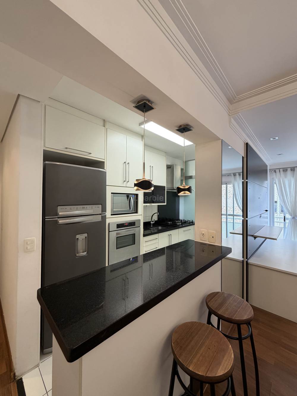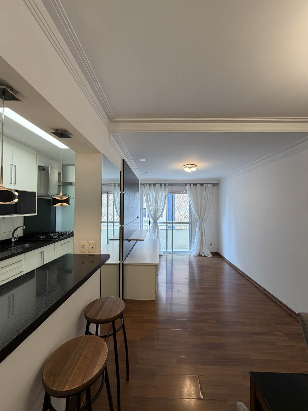 Apartamento semi mobiliado com 86 metros, 2 dormitórios sendo 1 suíte, terceiro dormitório configurado como closet da suíte, podendo ser revertido, living para 2 ambientes, cozinha ampla com armários, lavanderia, 2 banheiros, sacada, andar alto e 2 vagas de garagem.