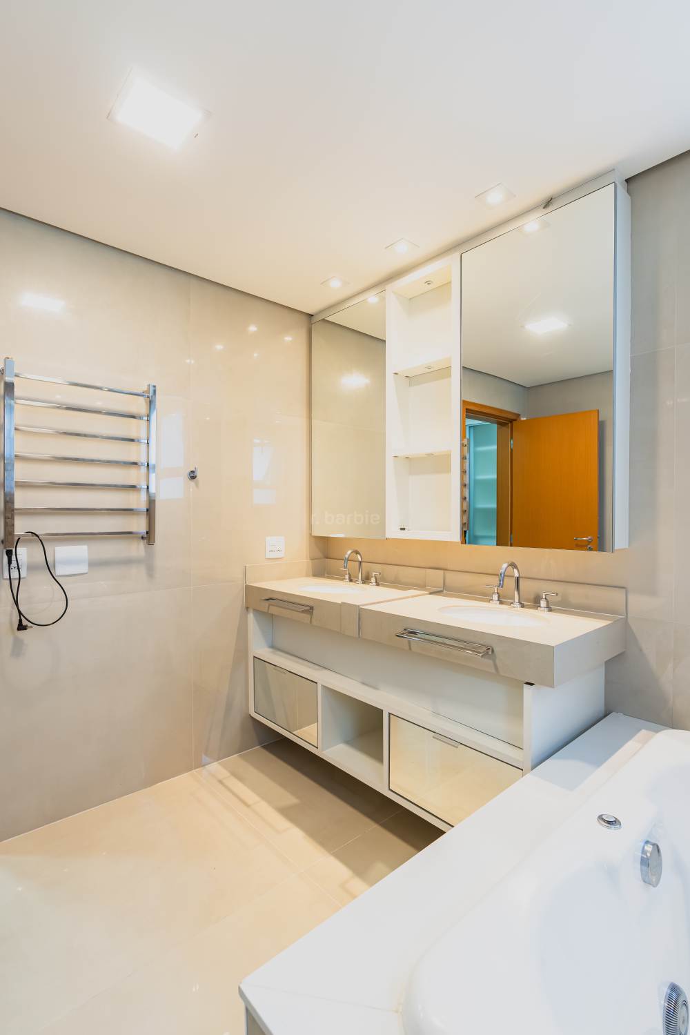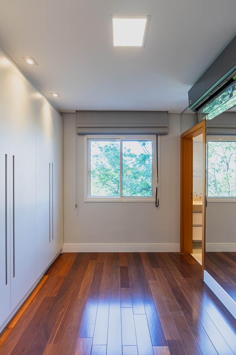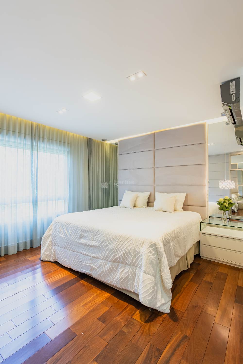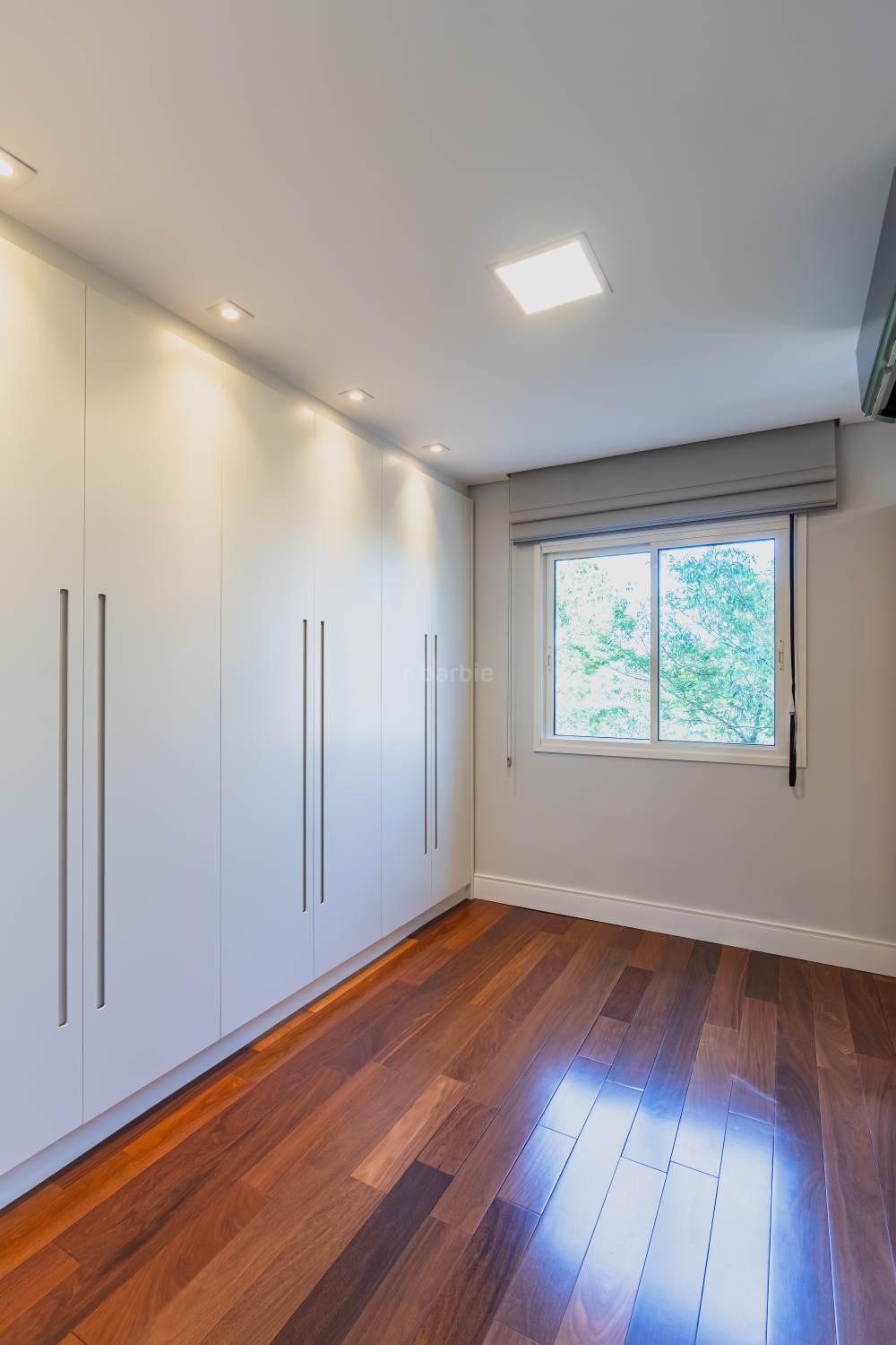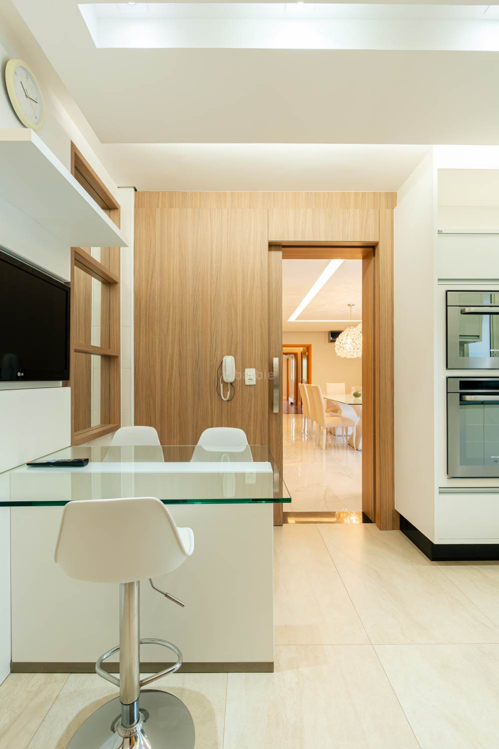 Apartamento semi mobiliado com 3 suítes em Alphaville, 224 metros, living para 3 ambientes, cozinha ampla com armários planejados ID Móveis e eletrodomésticos, ar condicionado, lavanderia despensa, lavabo, varanda gourmet com churrasqueira a carvão, vista para mata, depósito no andar e 4 vagas de garagem.