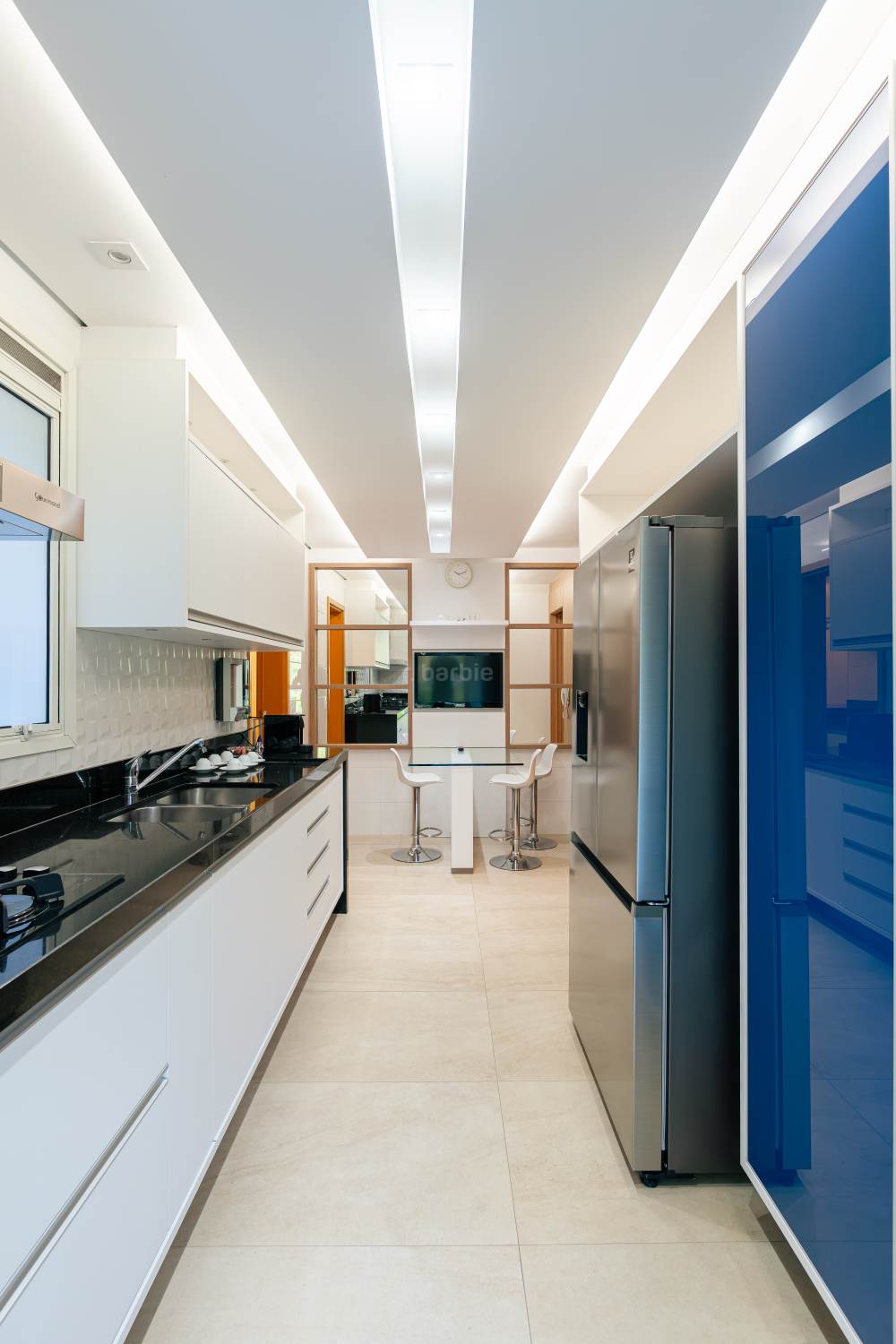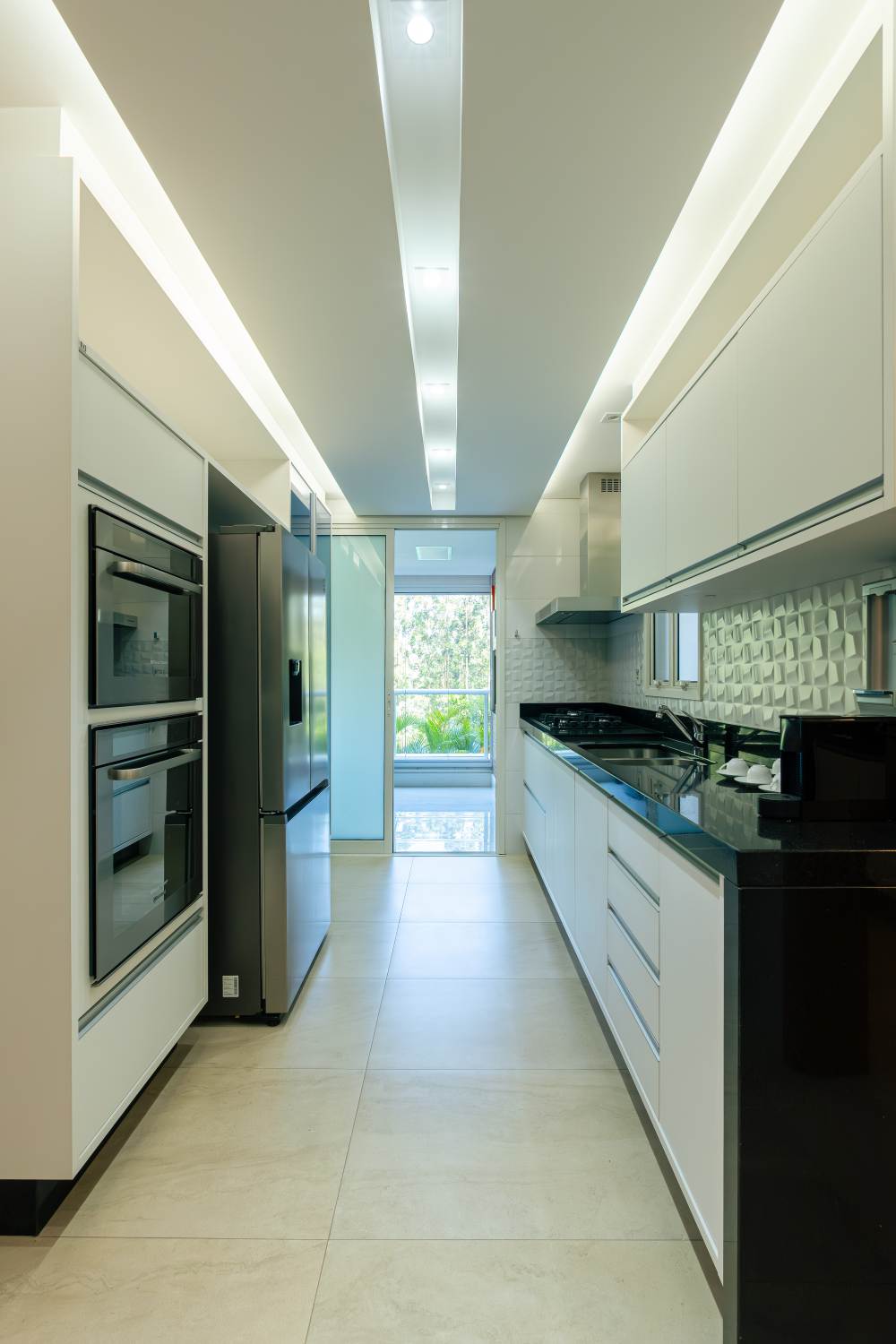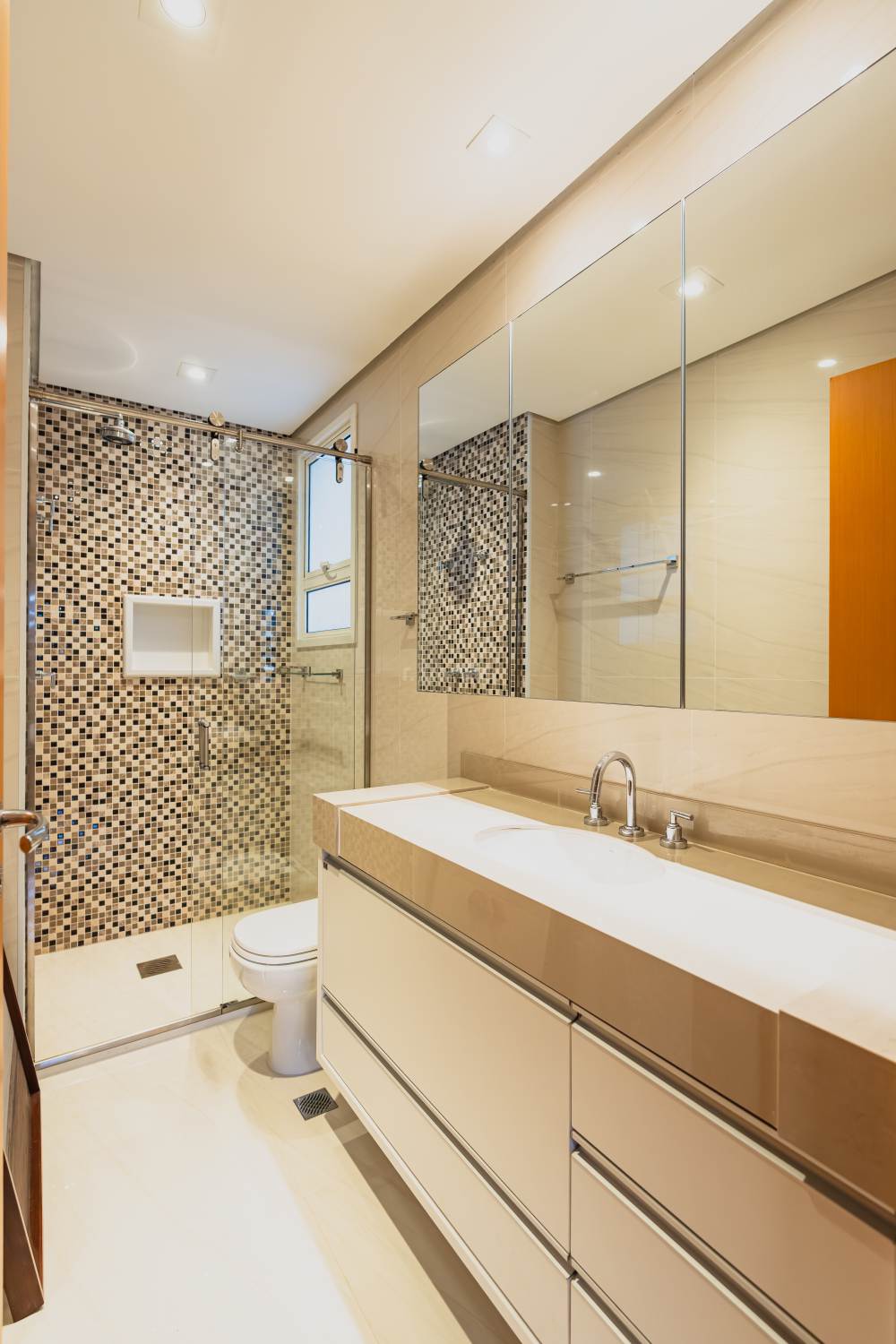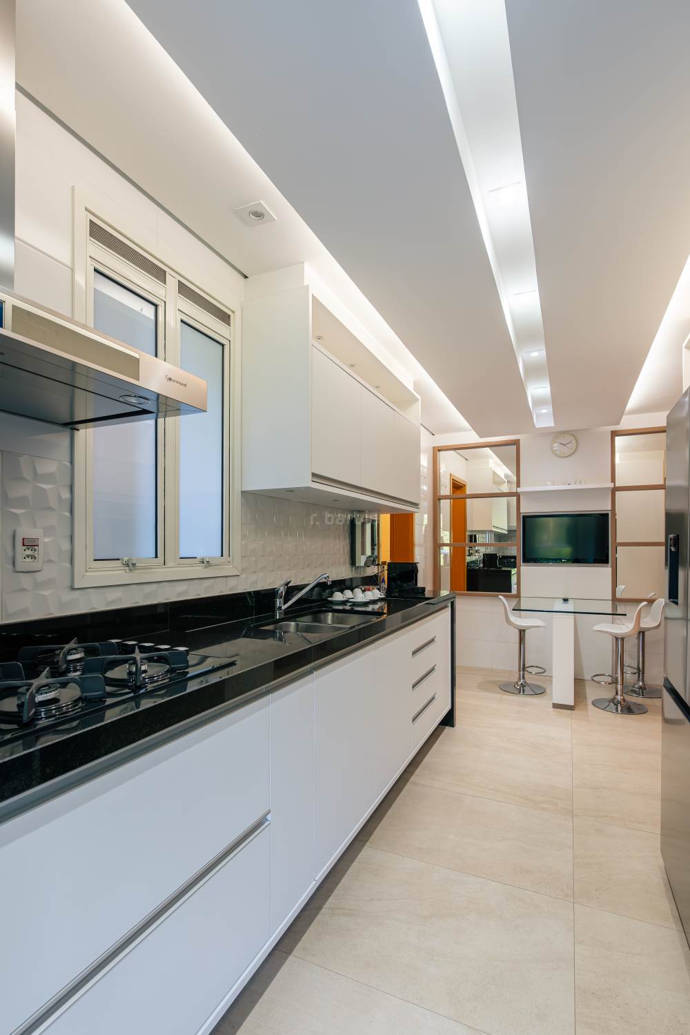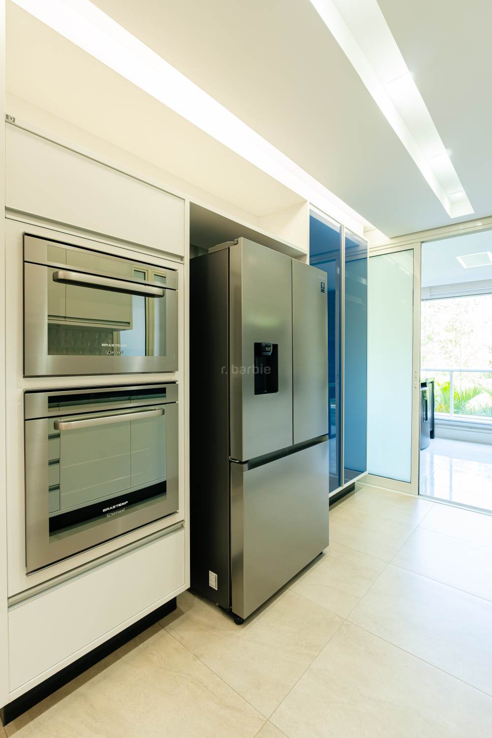 Apartamento semi mobiliado com 3 suítes em Alphaville, 224 metros, living para 3 ambientes, cozinha ampla com armários planejados ID Móveis e eletrodomésticos, ar condicionado, lavanderia despensa, lavabo, varanda gourmet com churrasqueira a carvão, vista para mata, depósito no andar e 4 vagas de garagem.