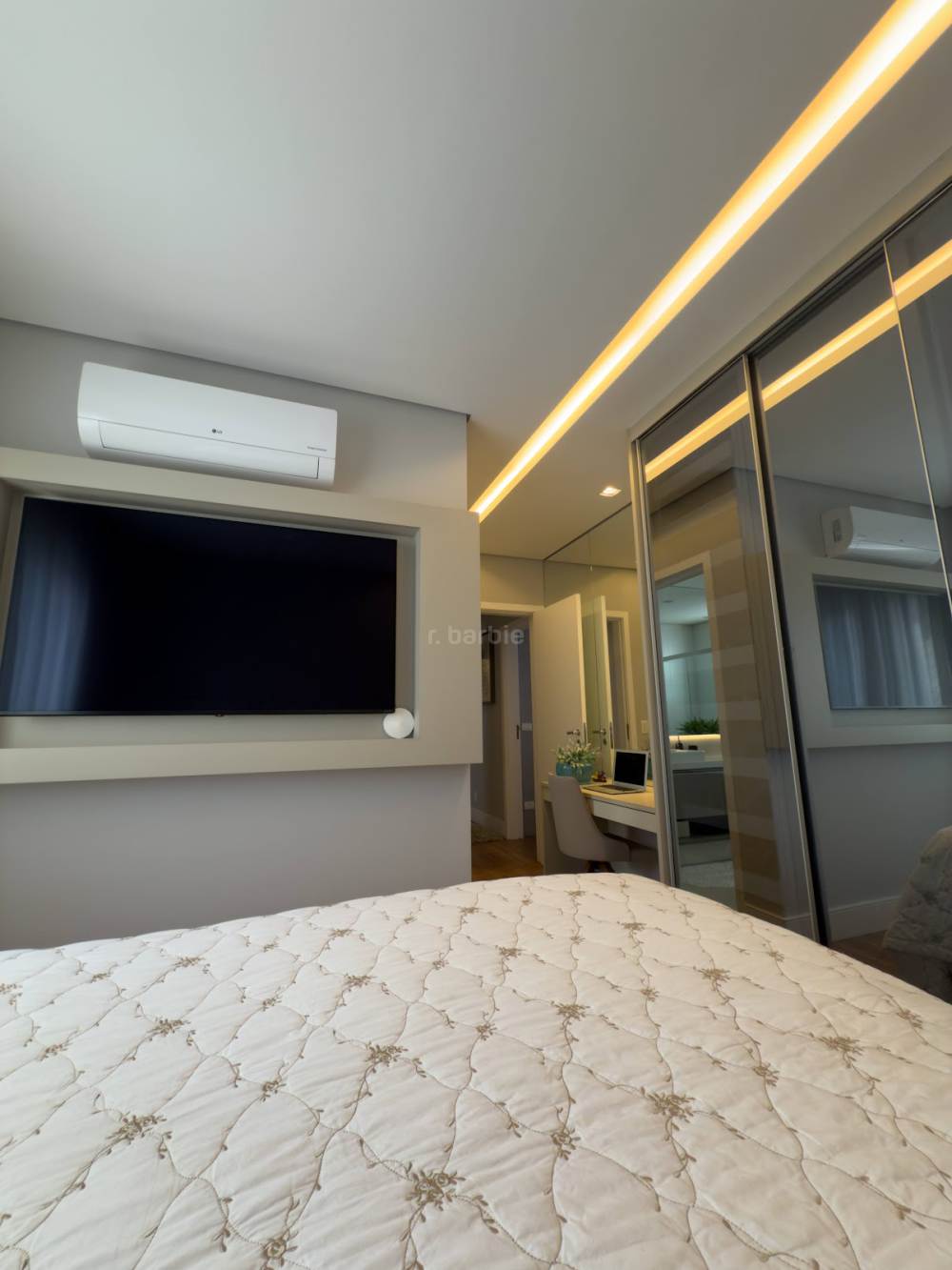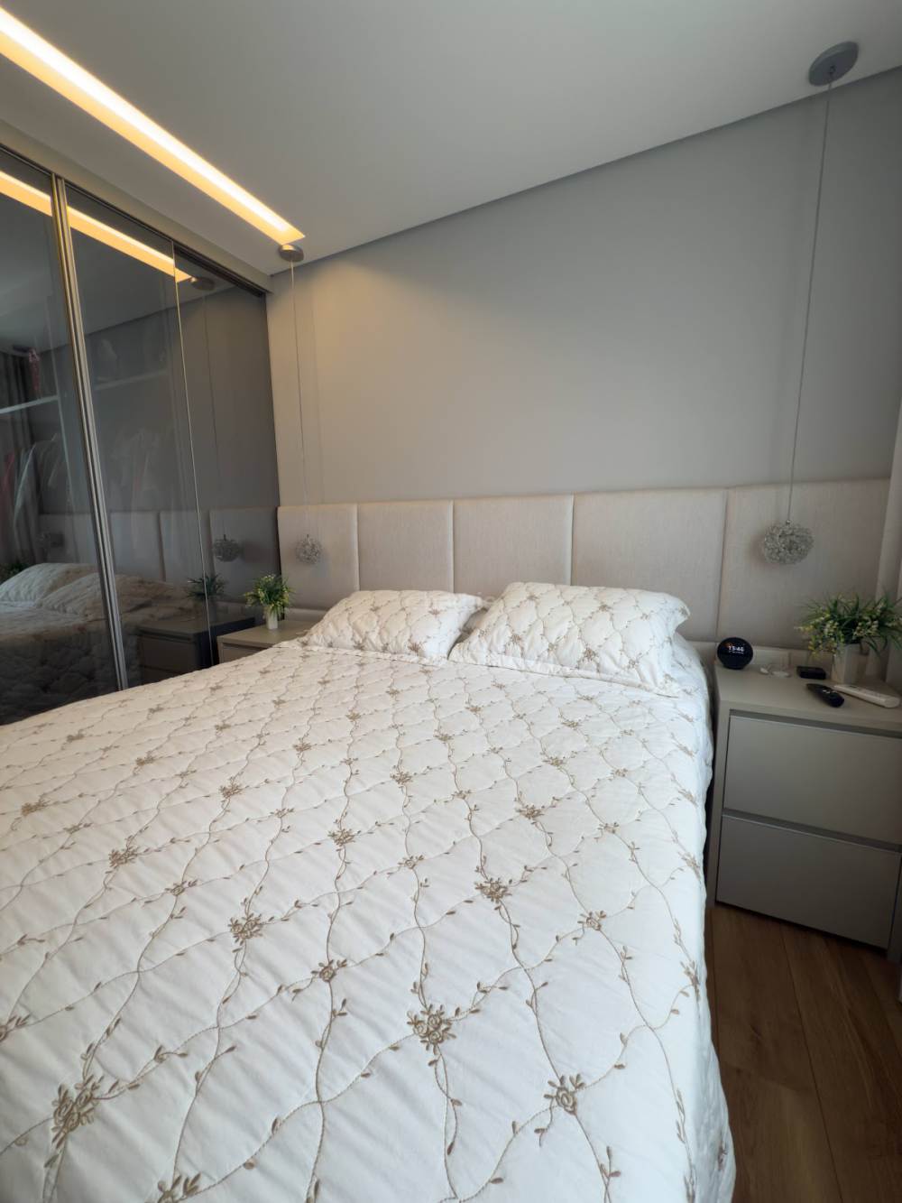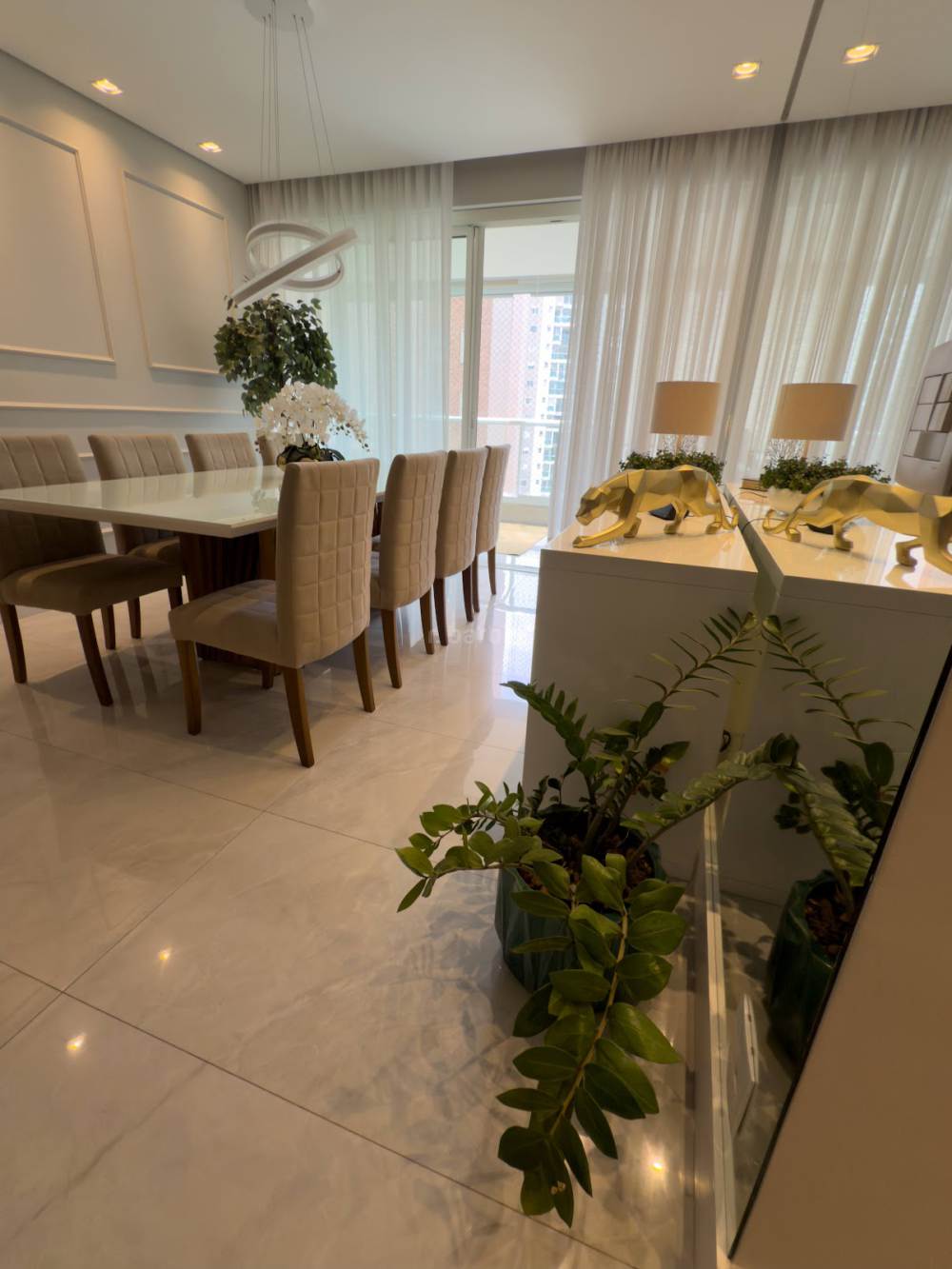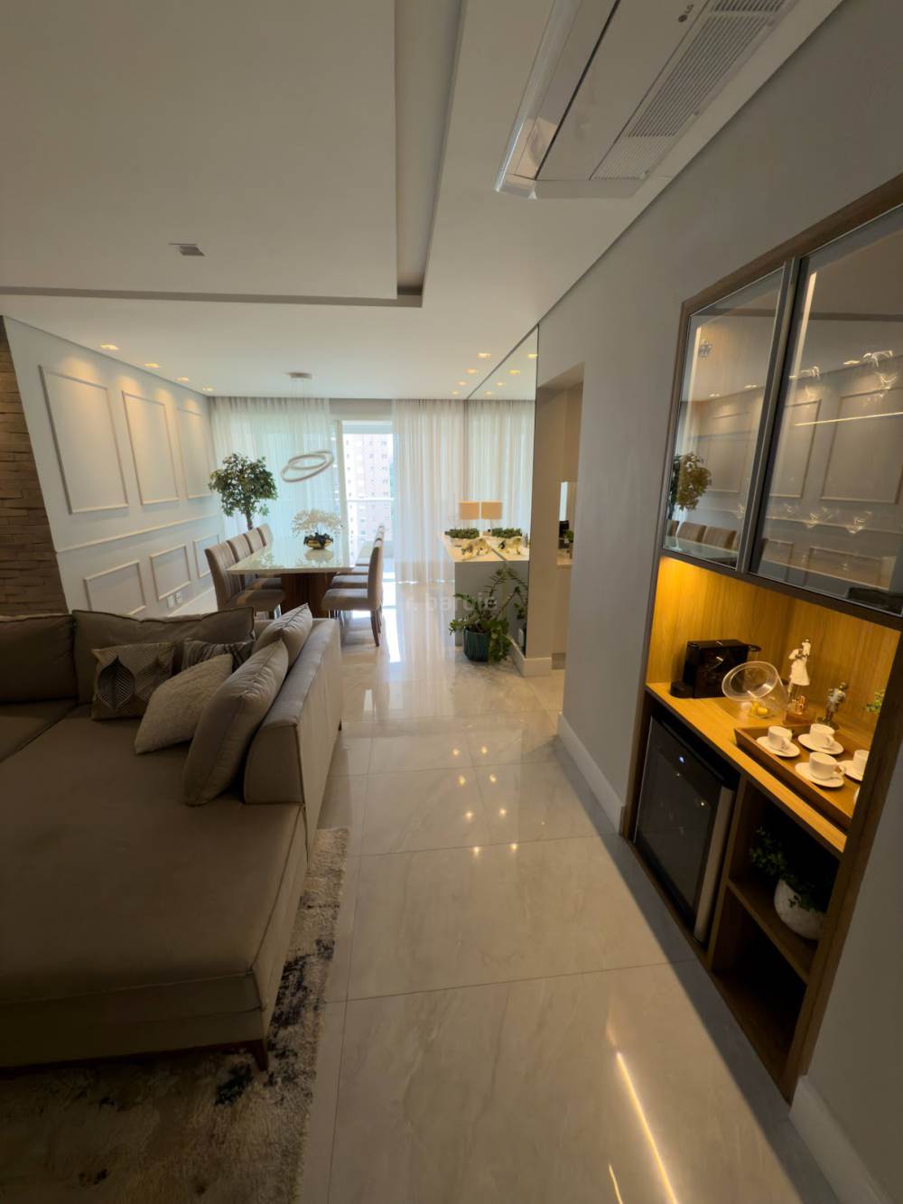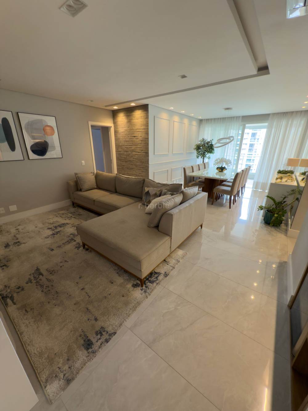Apartamento com 3 suítes em Alphaville, 140 metros, living para 3 ambientes, cozinha ampla com armários planejados, lavanderia, lavabo, ar condicionado em todos os ambientes, varanda gourmet e 3 vagas de garagem.