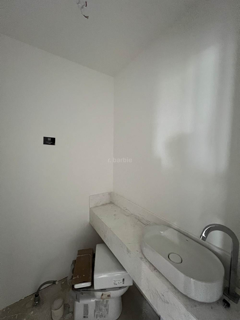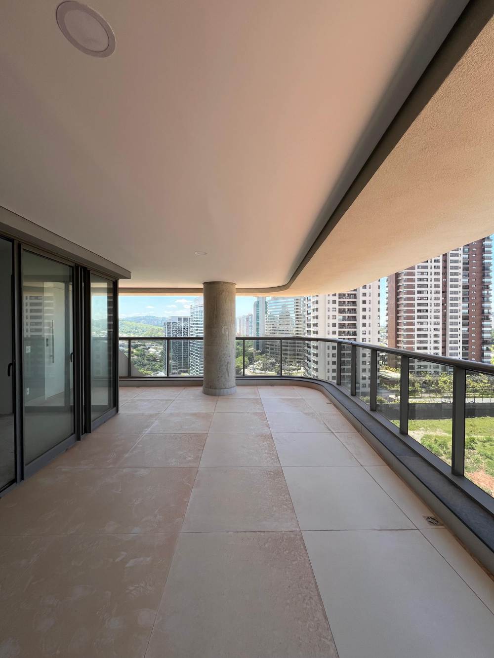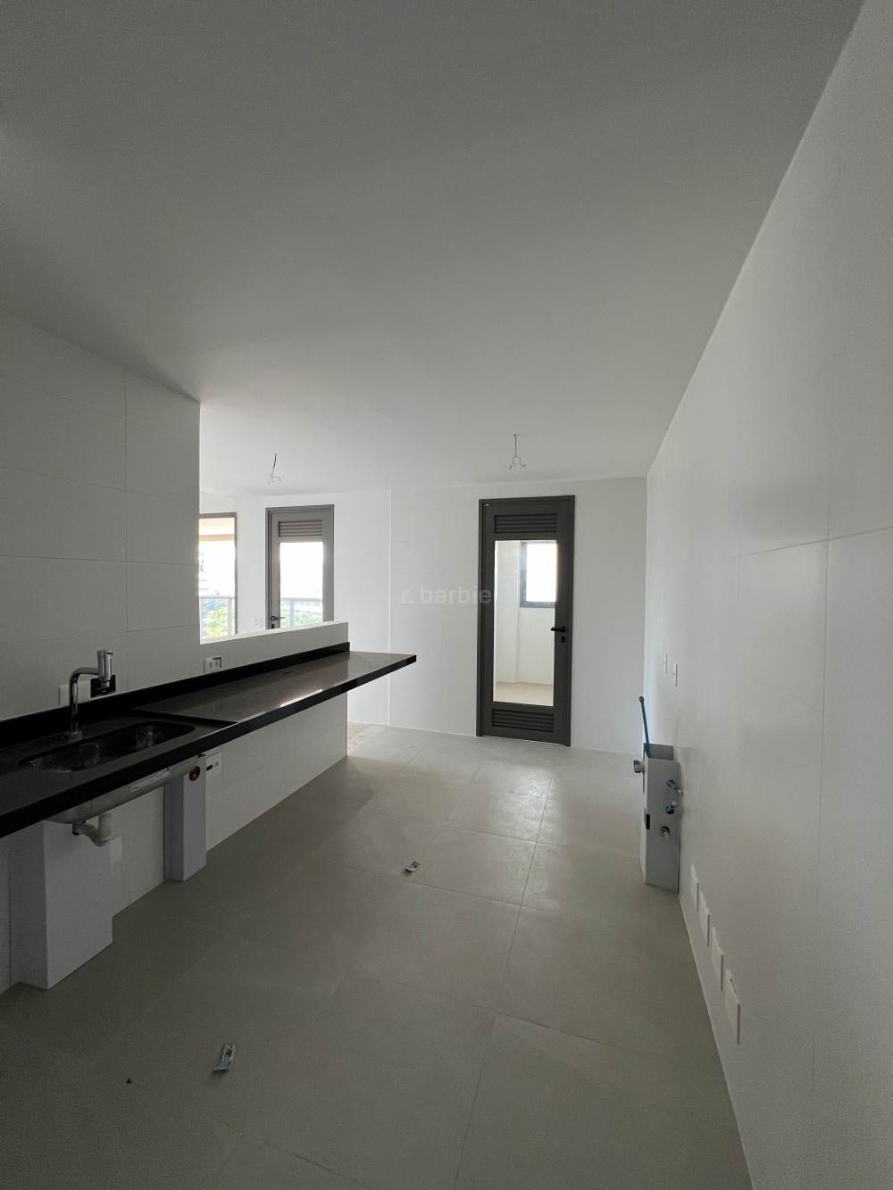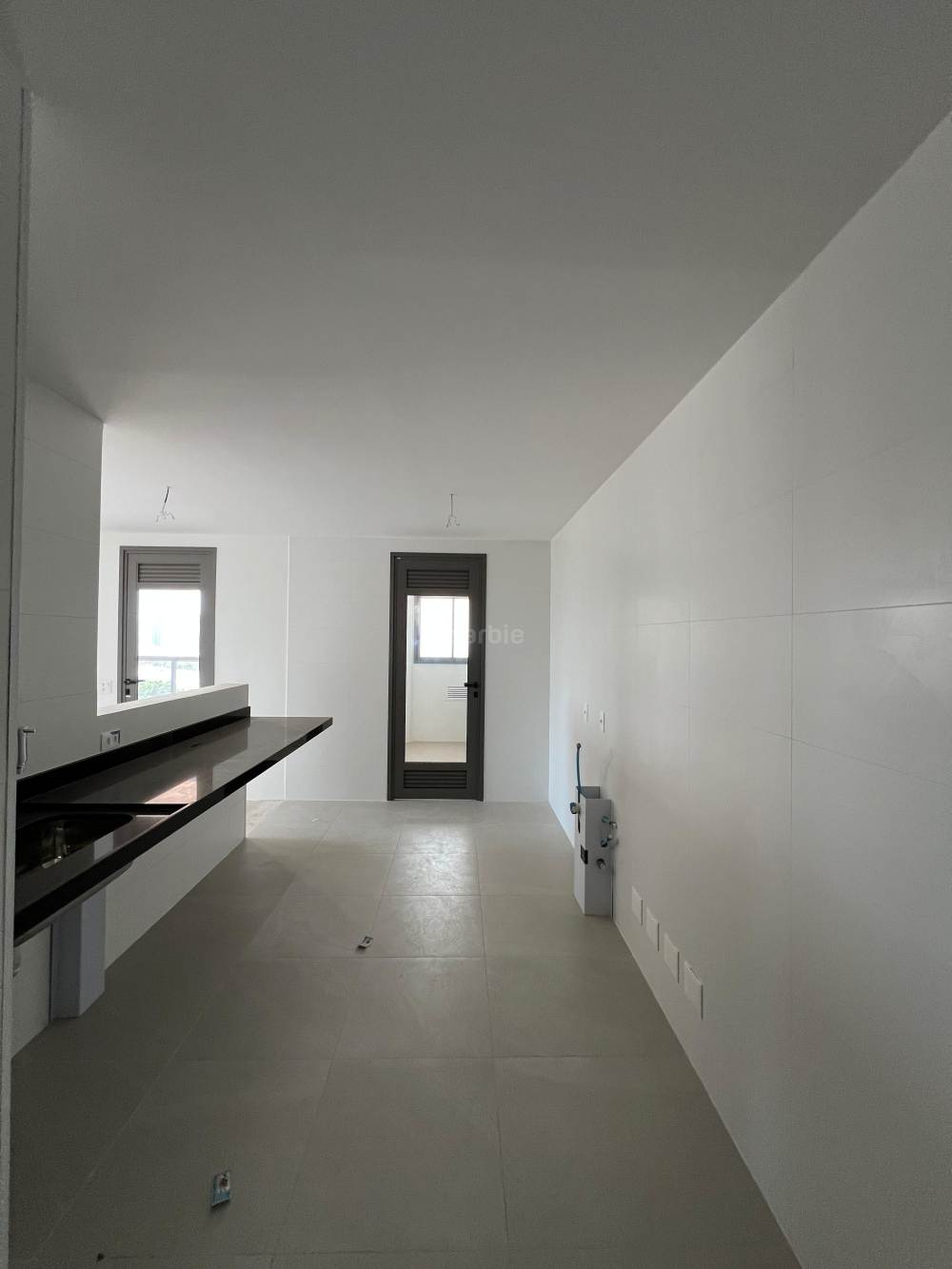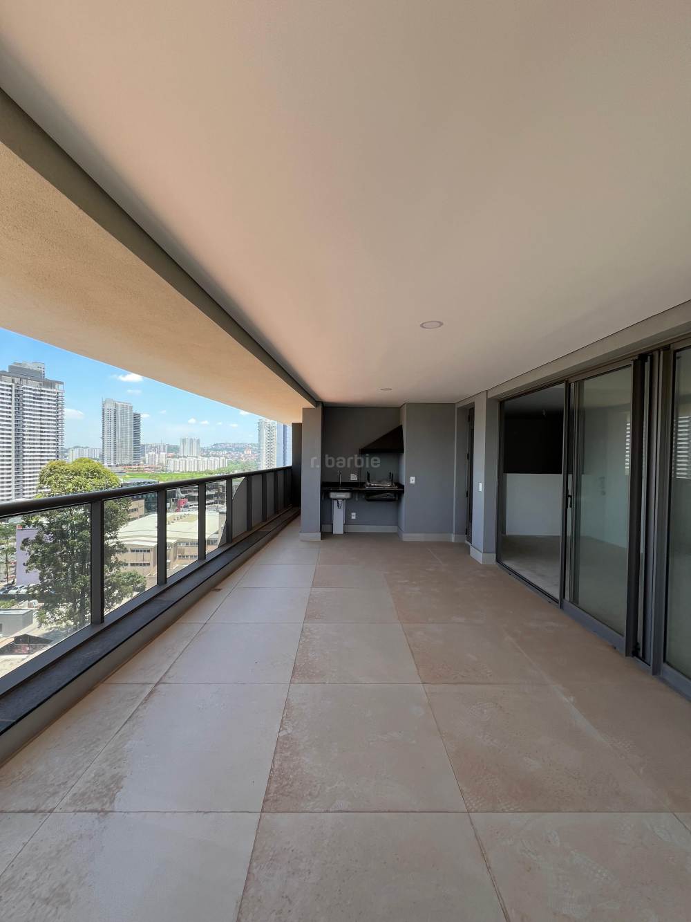 Apartamento com 3 suítes em Alphaville, 185 metros, living para 2 ambientes, cozinha ampla, 5 banheiros, área técnica para ar condicionado, depósito privativo no andar e 3 vagas de garagem.