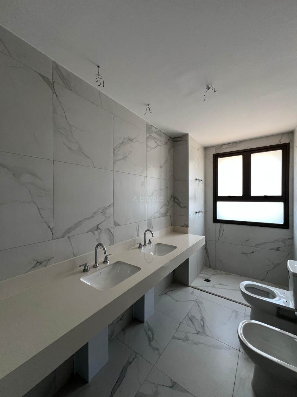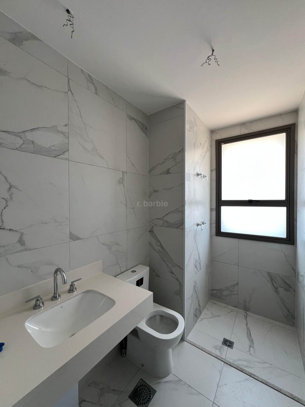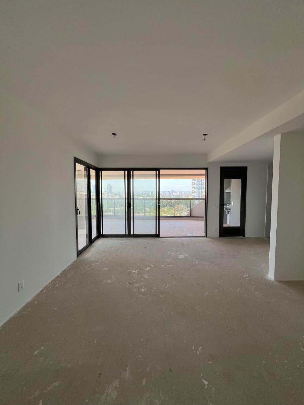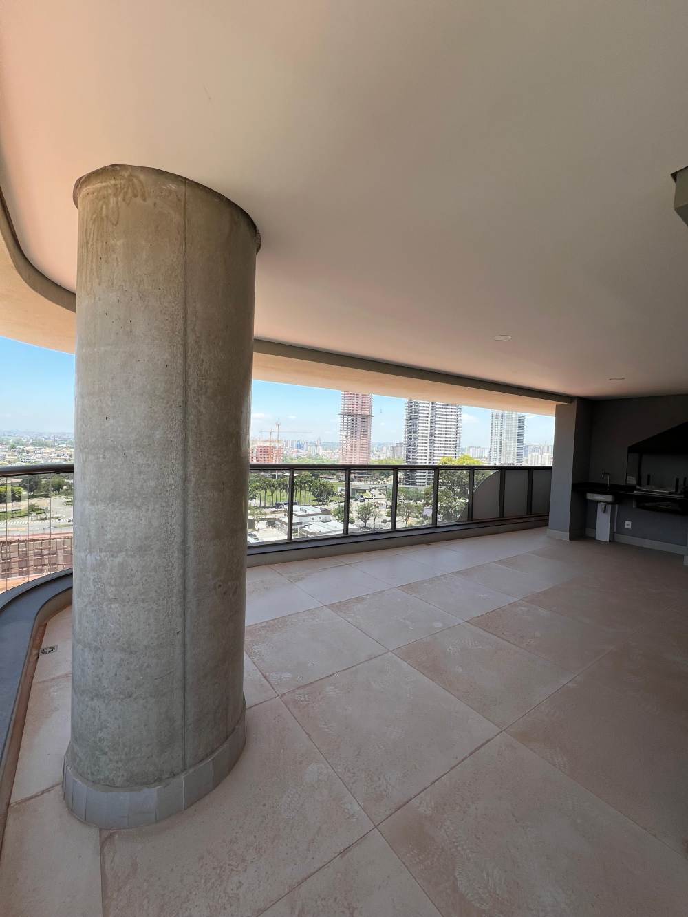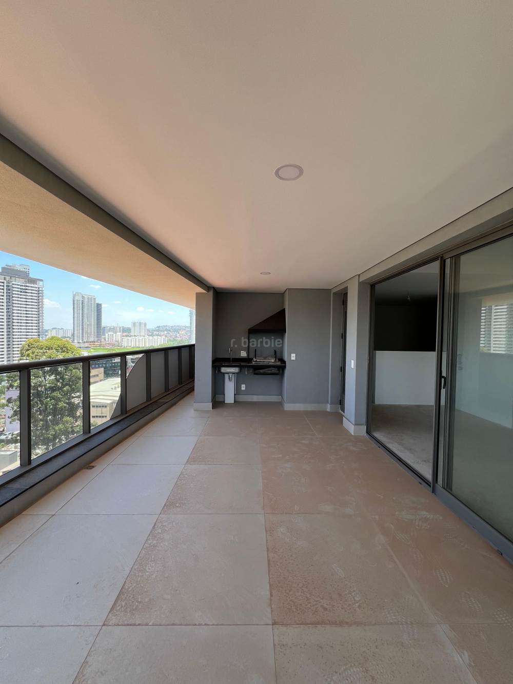 Apartamento com 3 suítes em Alphaville, 185 metros, living para 2 ambientes, cozinha ampla, 5 banheiros, área técnica para ar condicionado, depósito privativo no andar e 3 vagas de garagem.