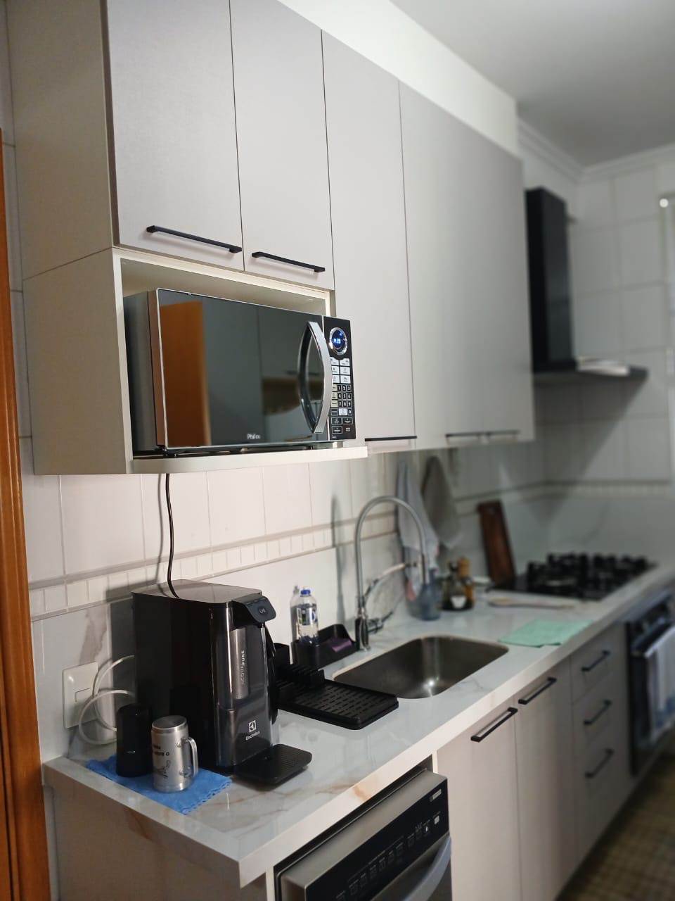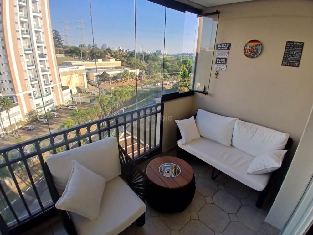 Apartamento com 3 suítes em Alphaville, 149 metros, living para 3 ambientes, cozinha ampla com armários planejados, lavanderia, lavabo, varanda envidraçada e 2 vagas de garagem.