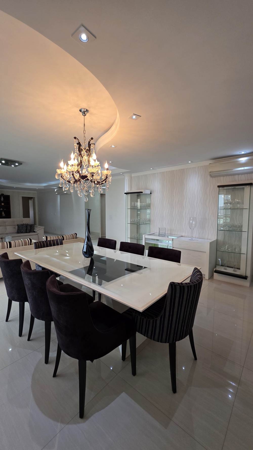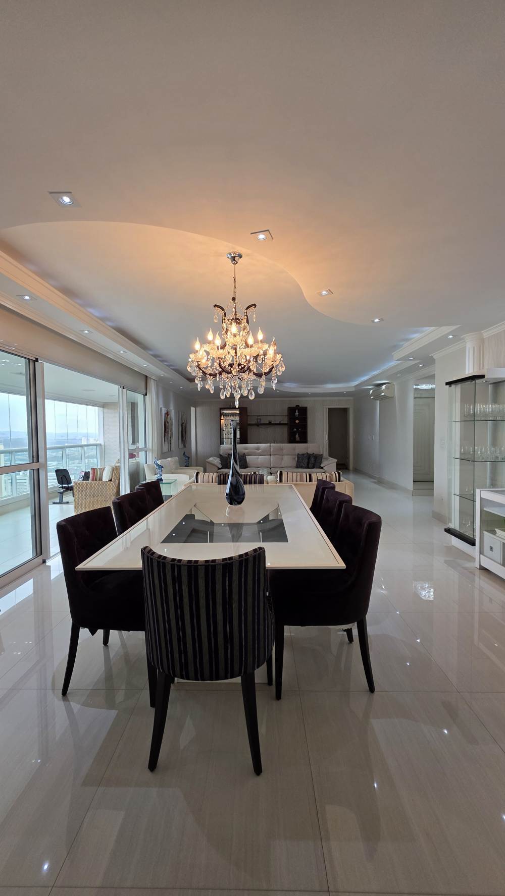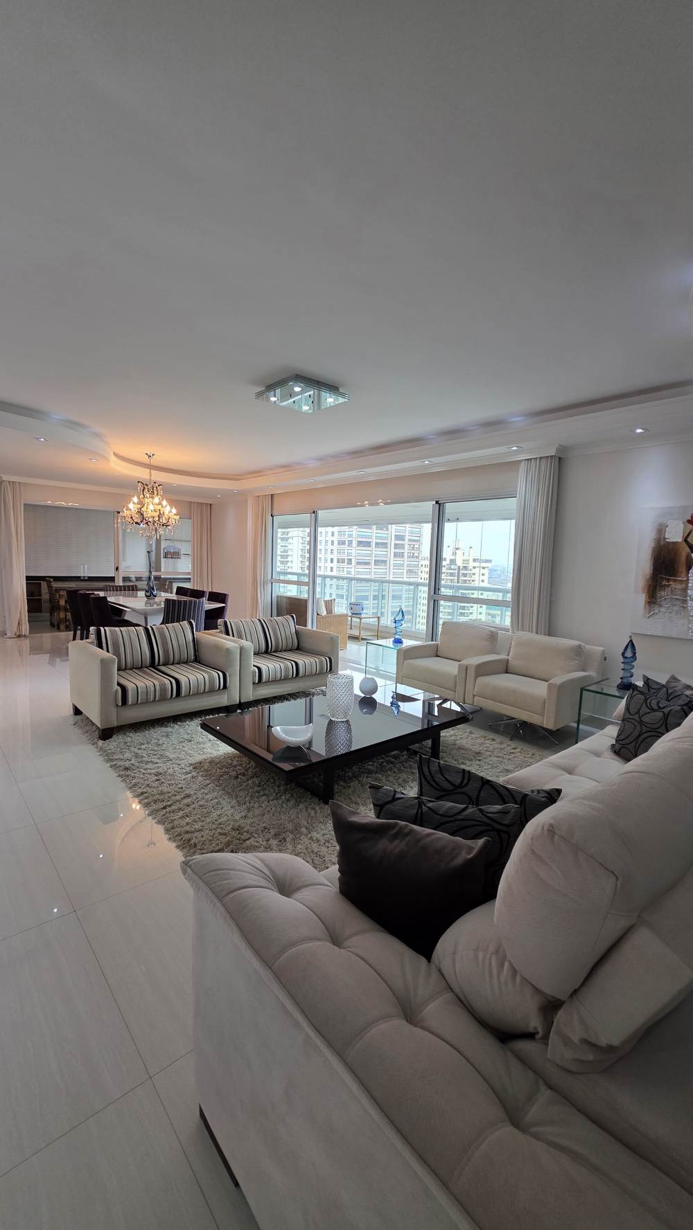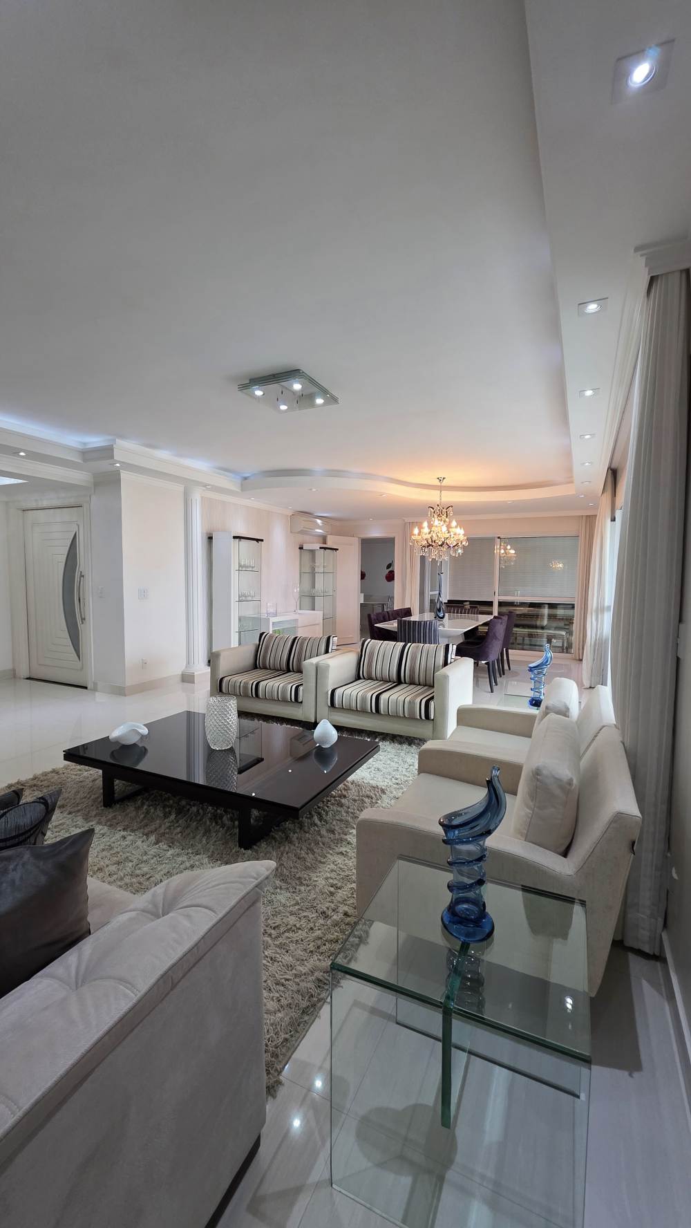 Com 243 metros de área útil, o imóvel oferece excelente distribuição dos ambientes, com 3 suítes confortáveis, ar-condicionado na sala e na suíte master, além de amplo living para até 3 ambientes integrados.