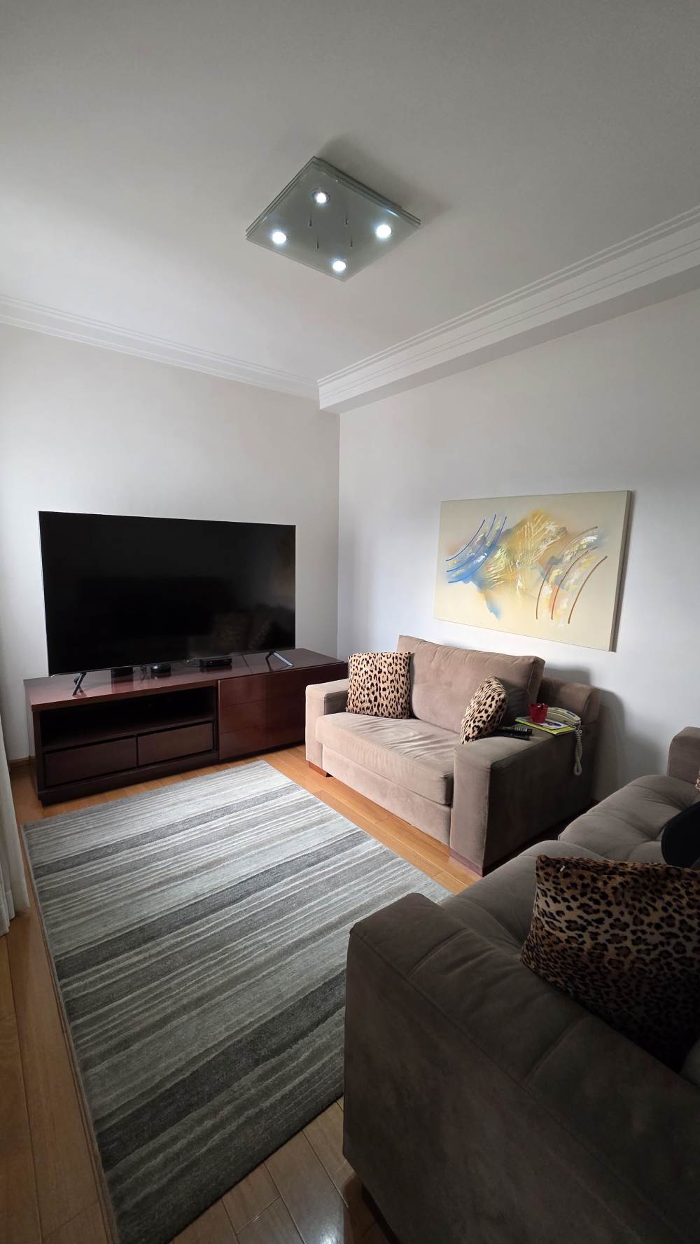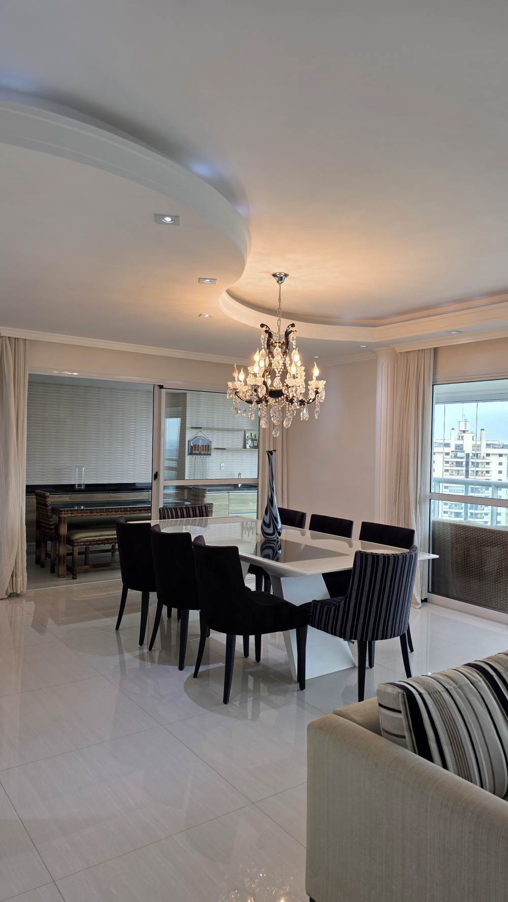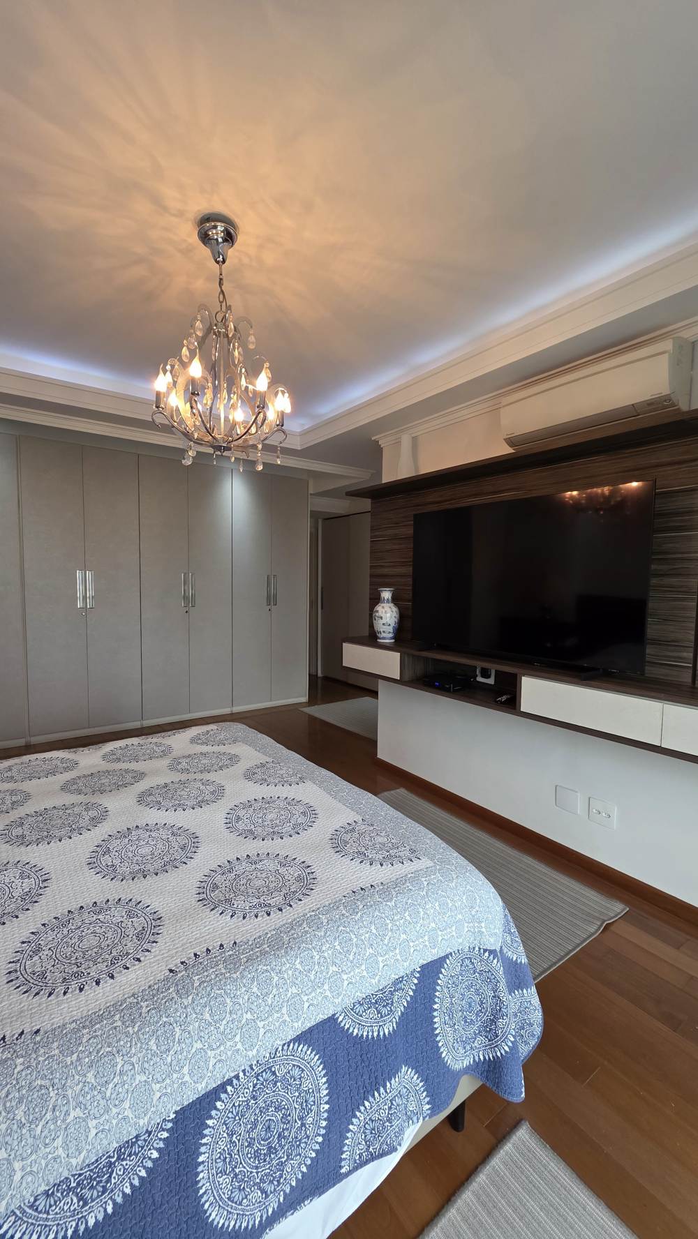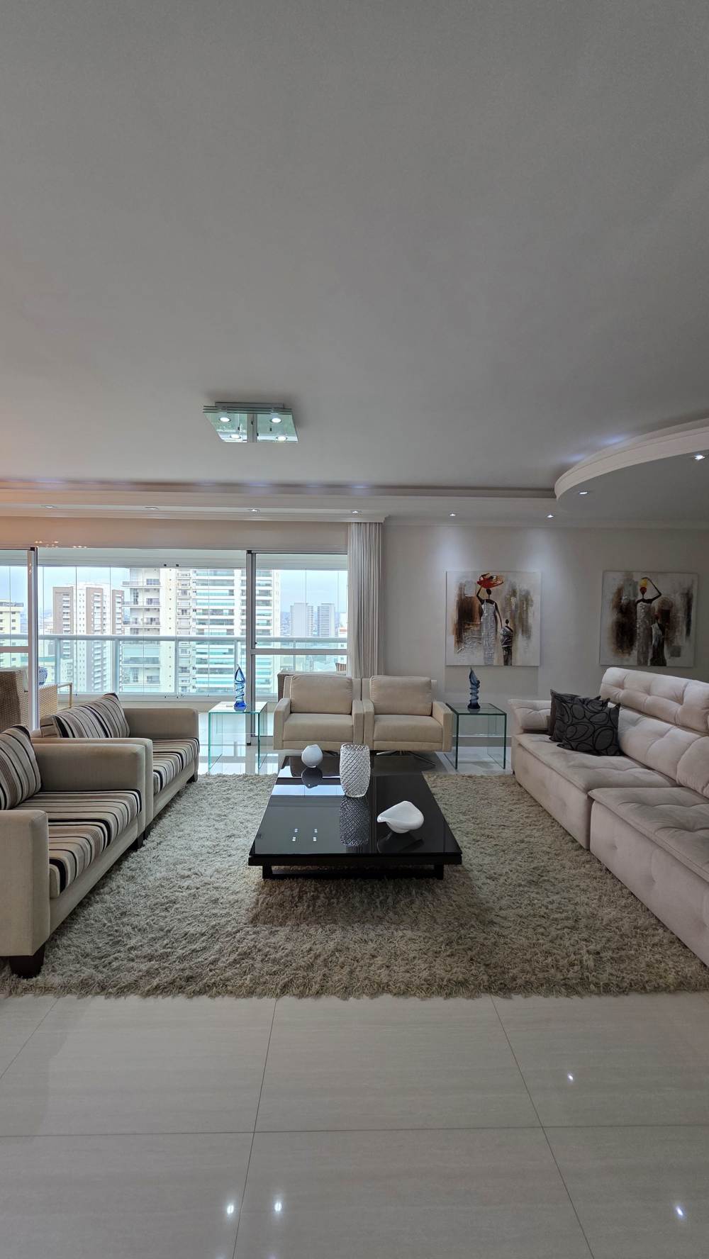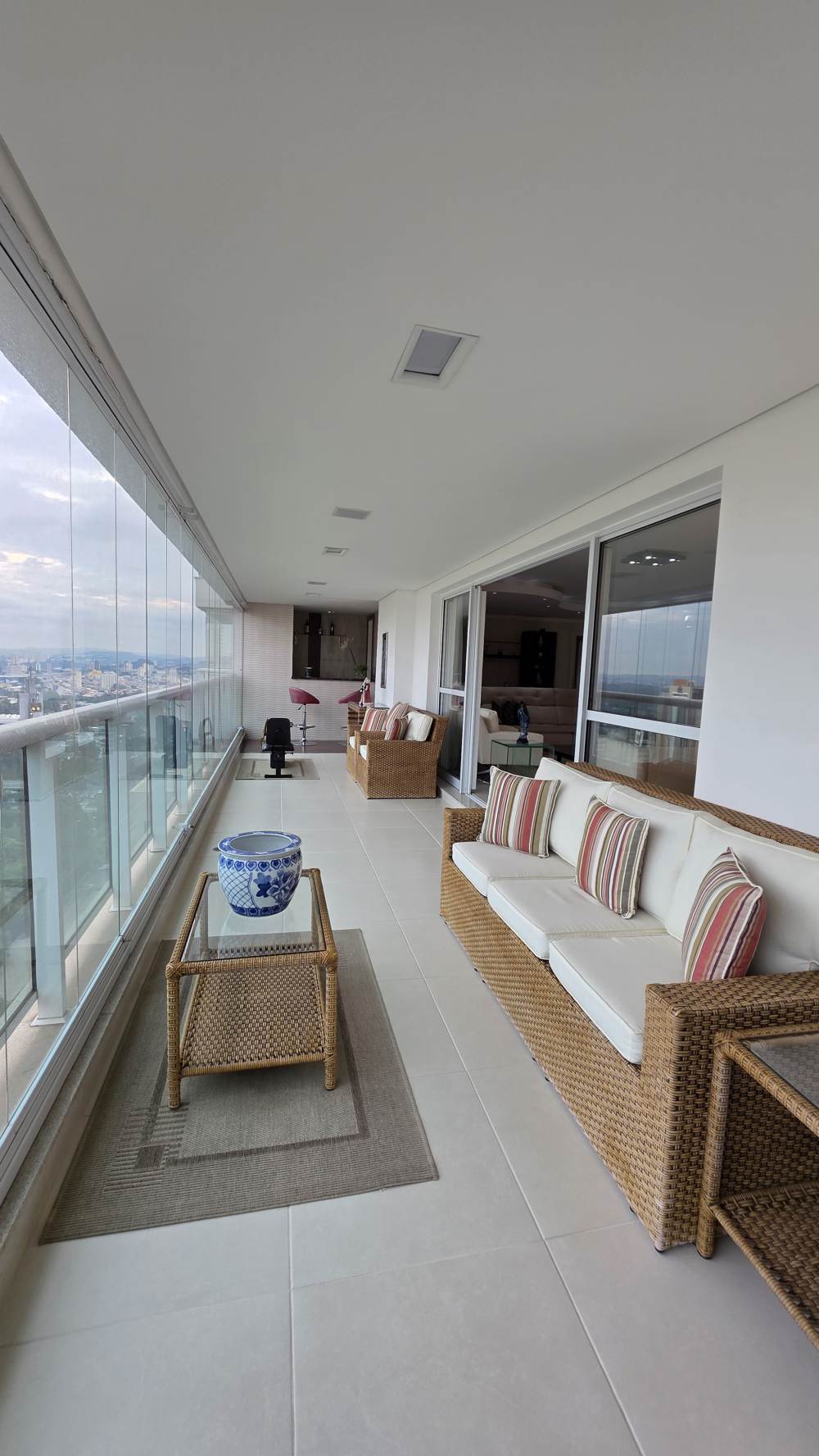 Com 243 metros de área útil, o imóvel oferece excelente distribuição dos ambientes, com 3 suítes confortáveis, ar-condicionado na sala e na suíte master, além de amplo living para até 3 ambientes integrados.