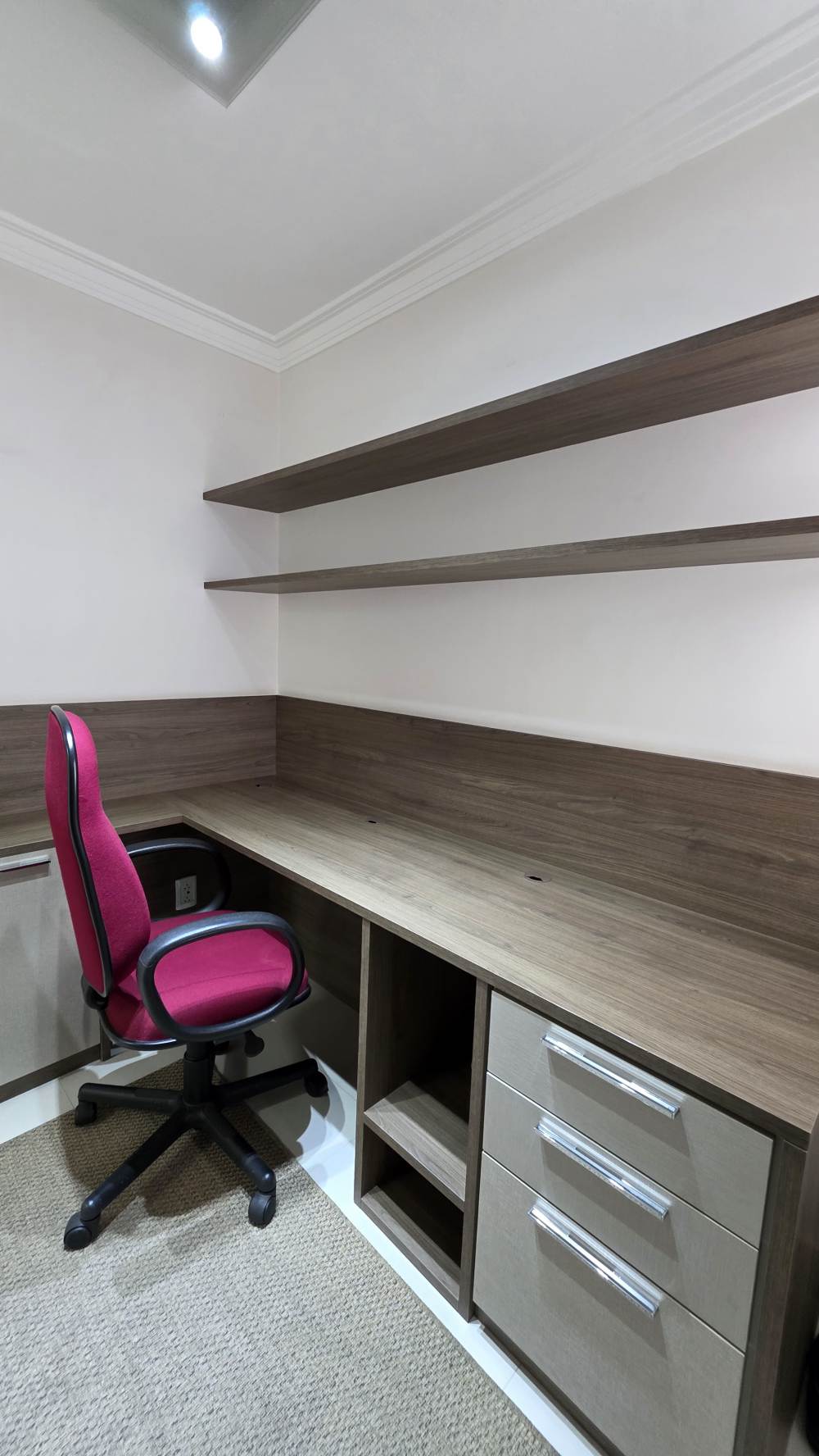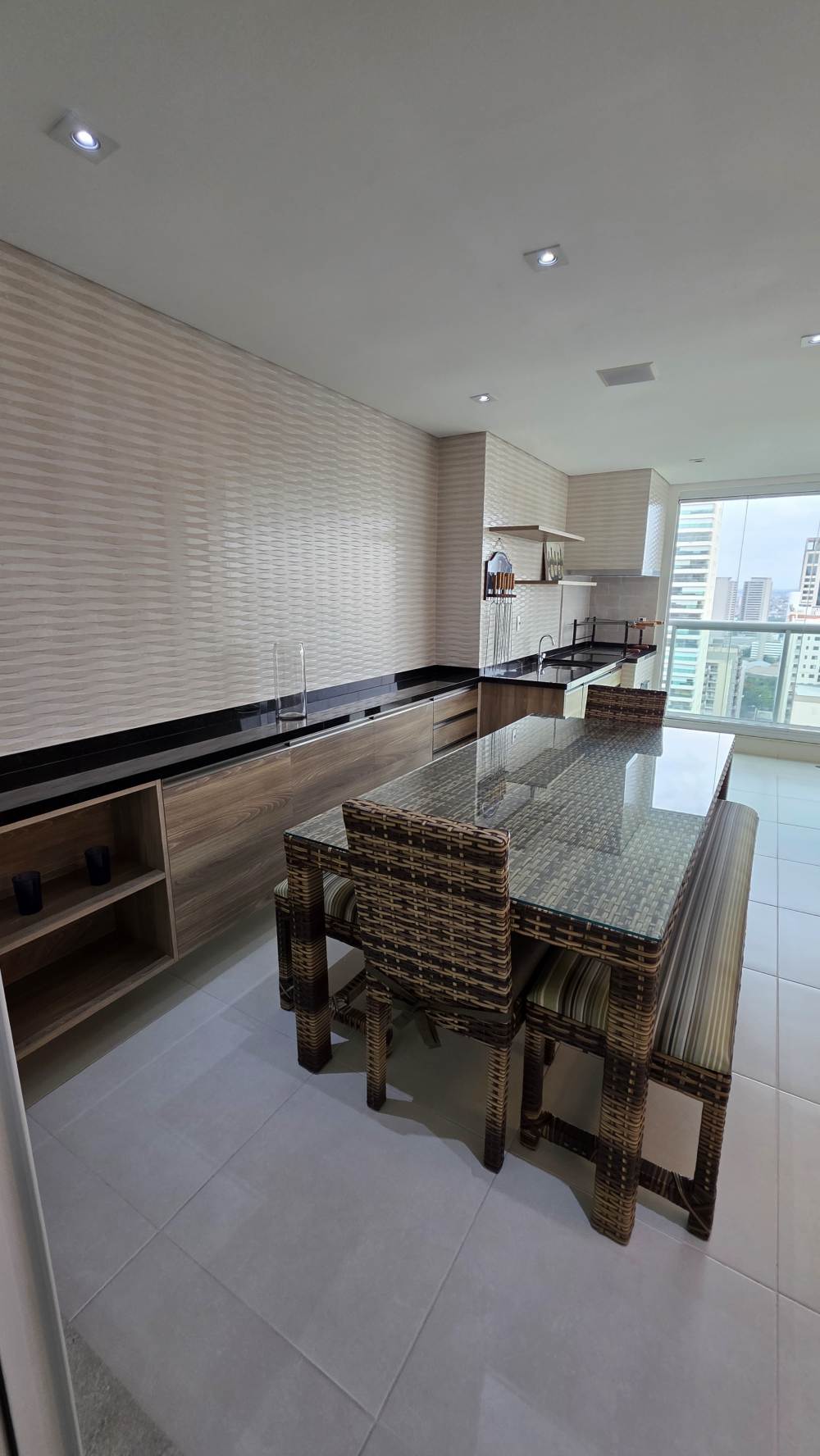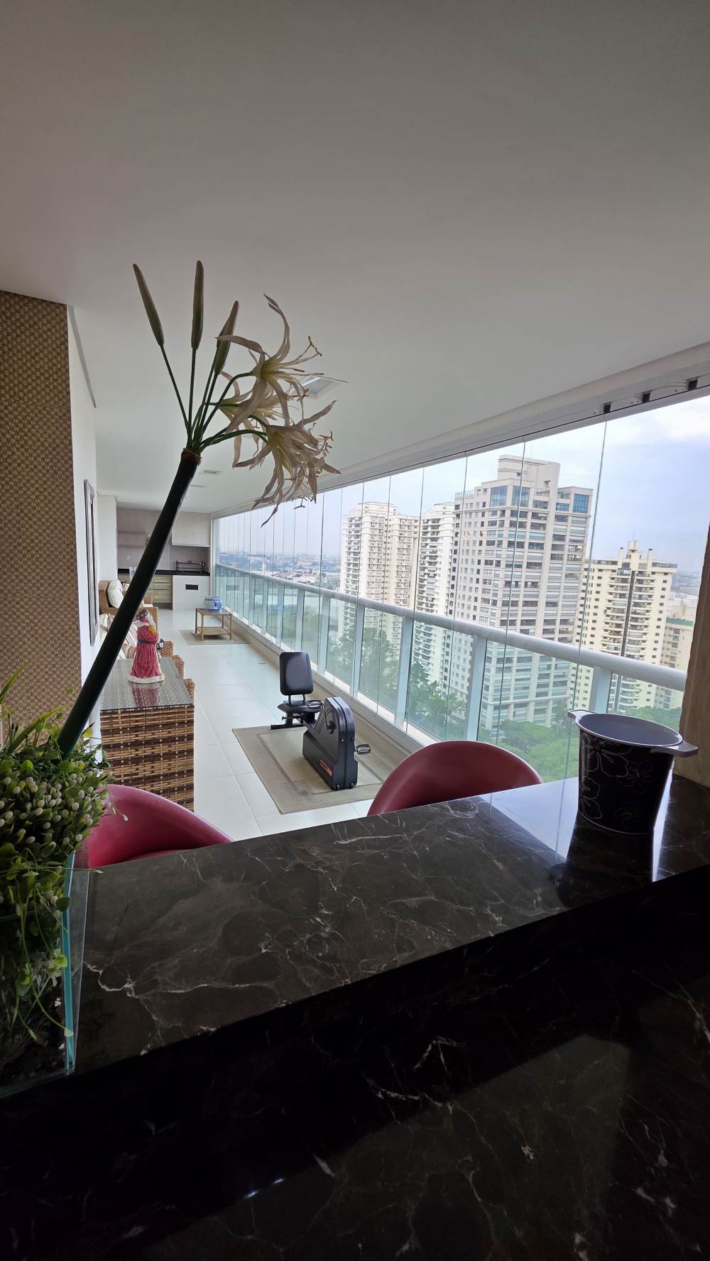 Conta ainda com escritório, cozinha ampla integrada à copa, lavanderia independente e uma agradável varanda gourmet com churrasqueira e fechamento em vidro — perfeita para receber.