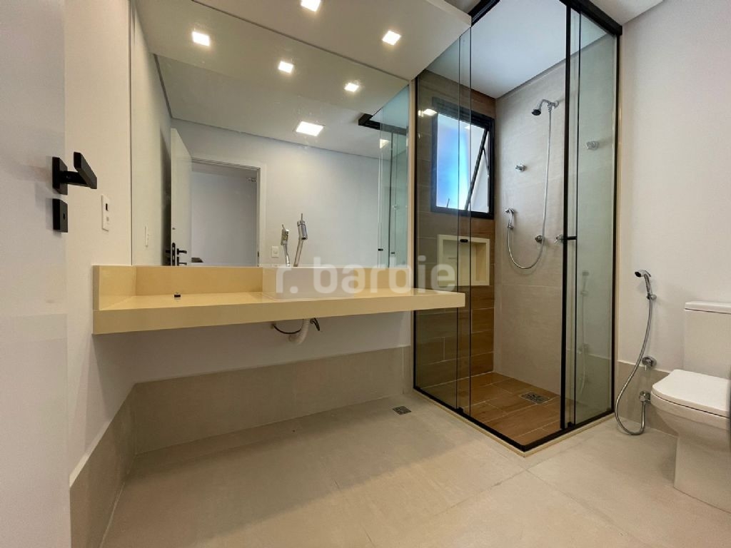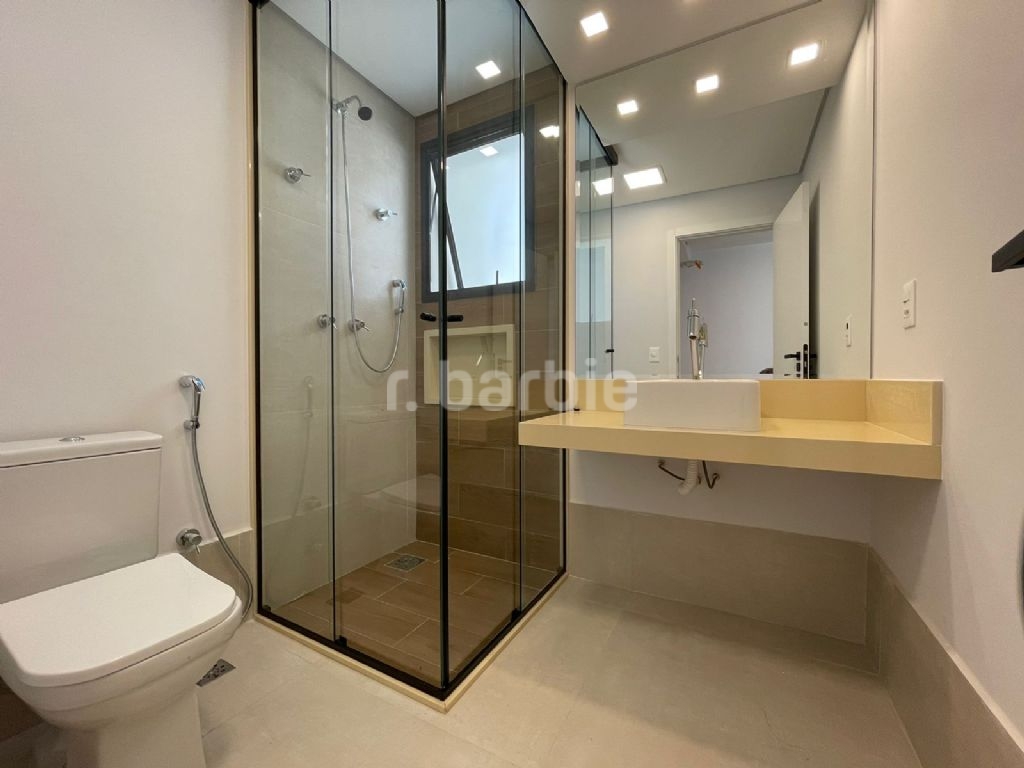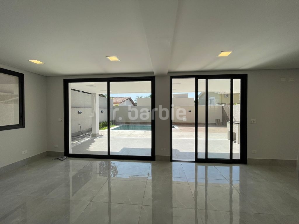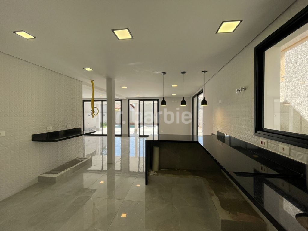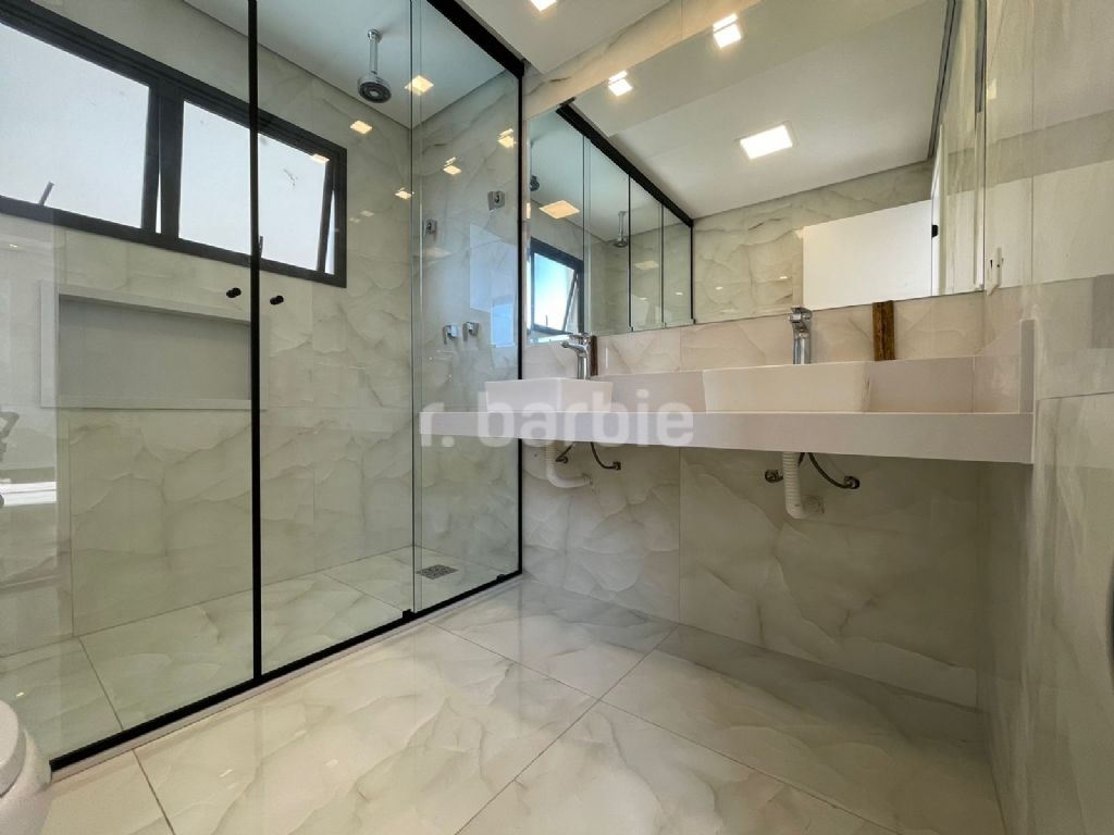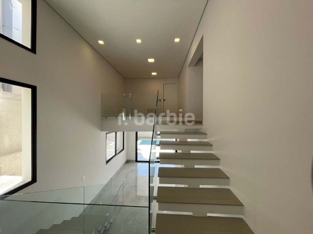 Casa em Alphaville recém construída de 310 metros de área útil e 360 metros de área total com 3 suítes e 6 vagas de garagem sendo 2 cobertas, lavabo, living para 3 ambientes integrados com a cozinha e área de lazer,6 banheiros, sala íntima, persianas automatizadas, estrutura de ar condicionado em todos os ambientes e decoração clean com fino acabamento.