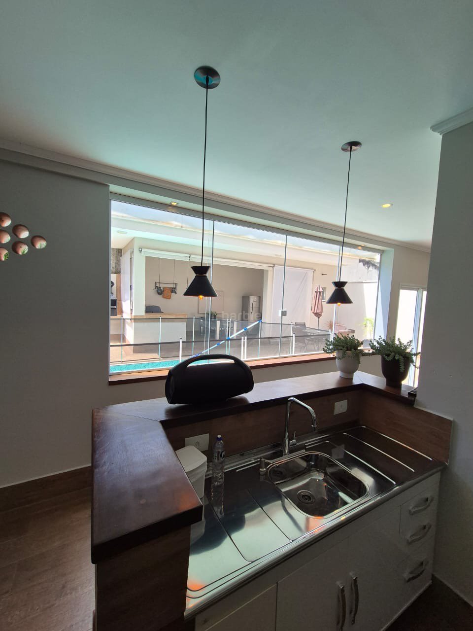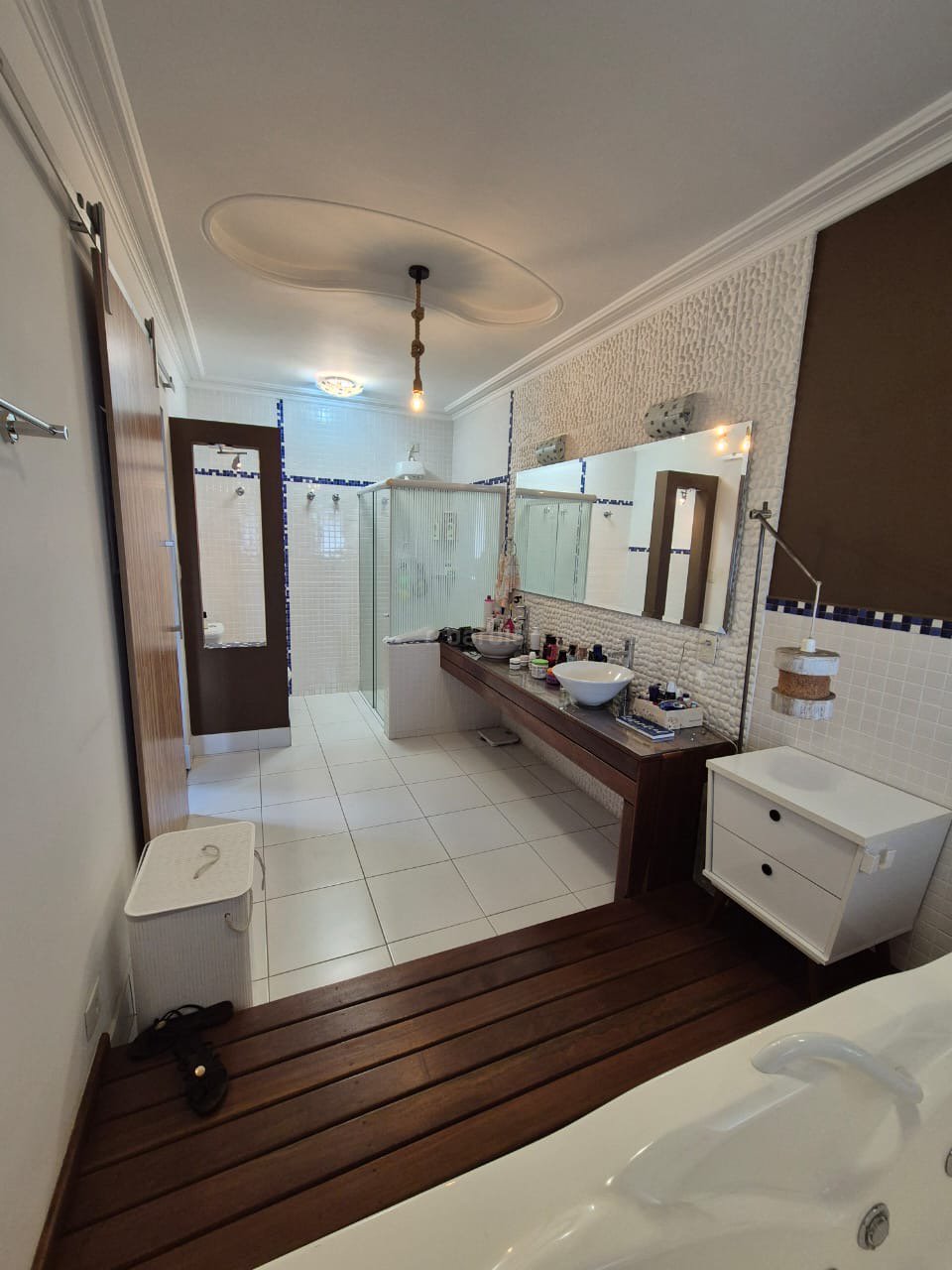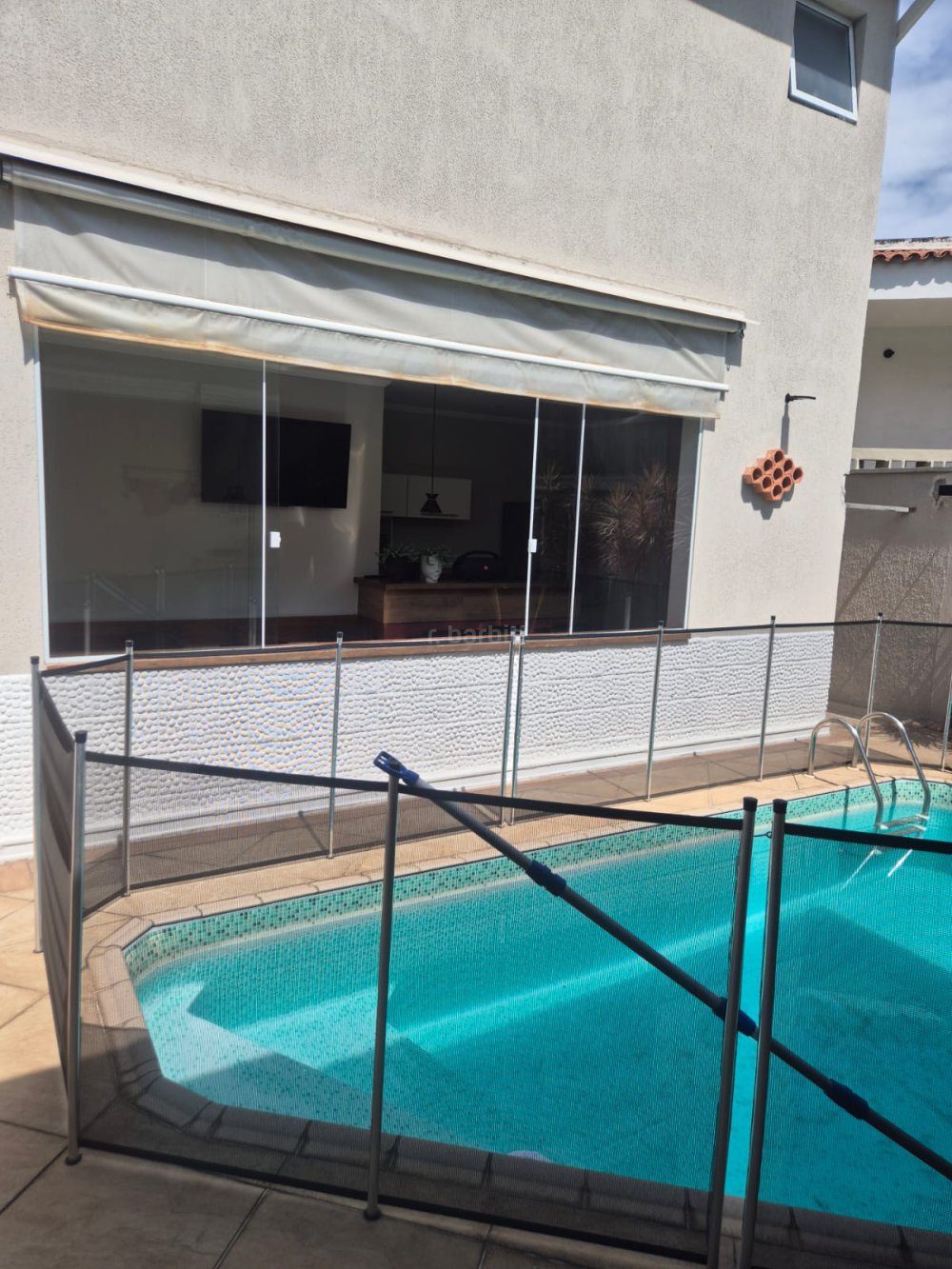 Casa com 3 suítes em Alphaville, 500 metros de terreno e 400 metros de área construída, living para 3 ambientes, escritório, cozinha ampla com armários planejados, lavanderia, depósito, área gourmet com 2 churrasqueiras, gás e carvão, piscina e garagem para 5 carros.