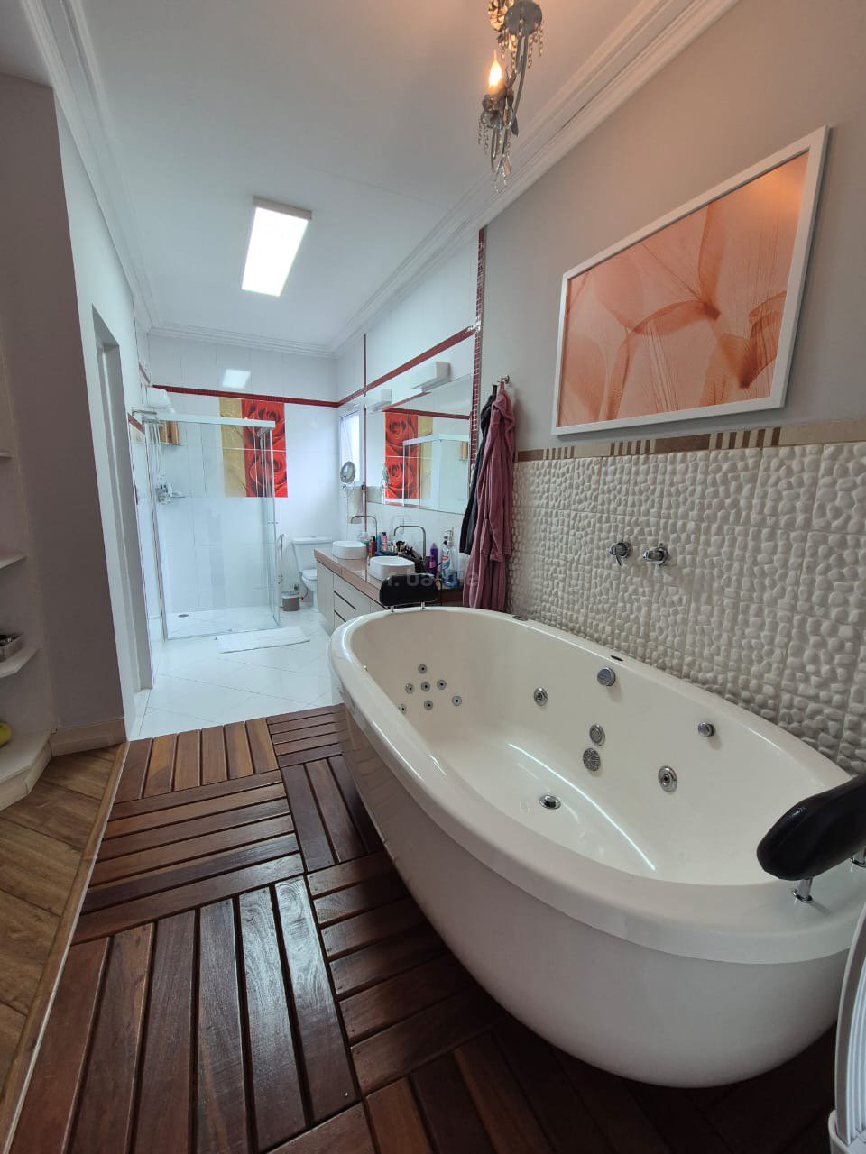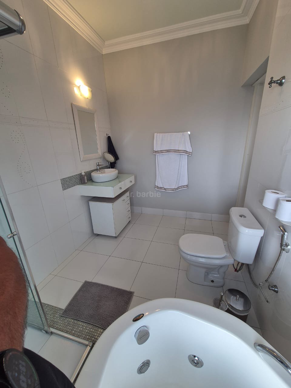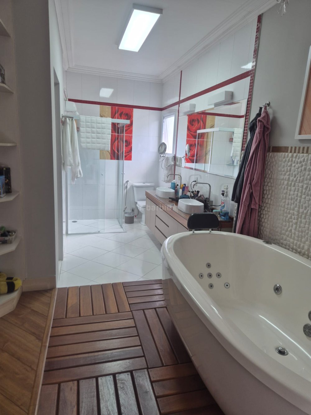 Casa com 3 suítes em Alphaville, 500 metros de terreno e 400 metros de área construída, living para 3 ambientes, escritório, cozinha ampla com armários planejados, lavanderia, depósito, área gourmet com 2 churrasqueiras, gás e carvão, piscina e garagem para 5 carros.
