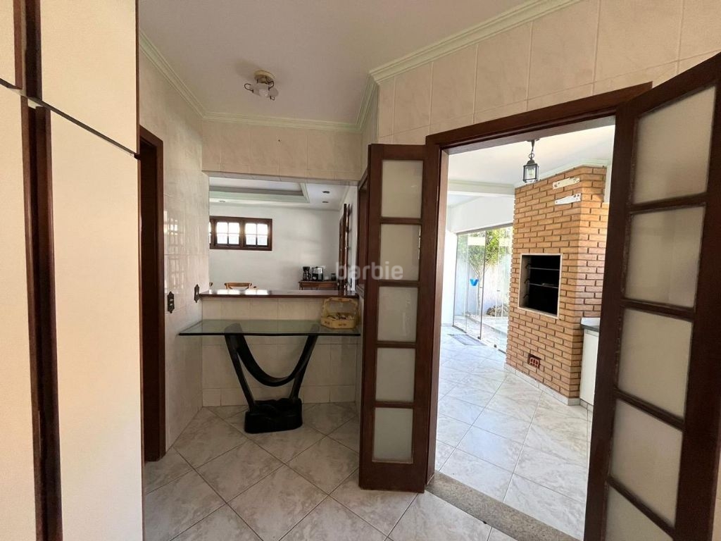 Casa em Aldeia da Serra com 360 metros de terreno e 280 metros de área construída, 3 dormitórios sendo 1 suíte com banheira, living para 3 ambientes, cozinha com armários, lavanderia, 3 banheiros, área gourmet com churrasqueira, piscina e 4 vagas de garagem.