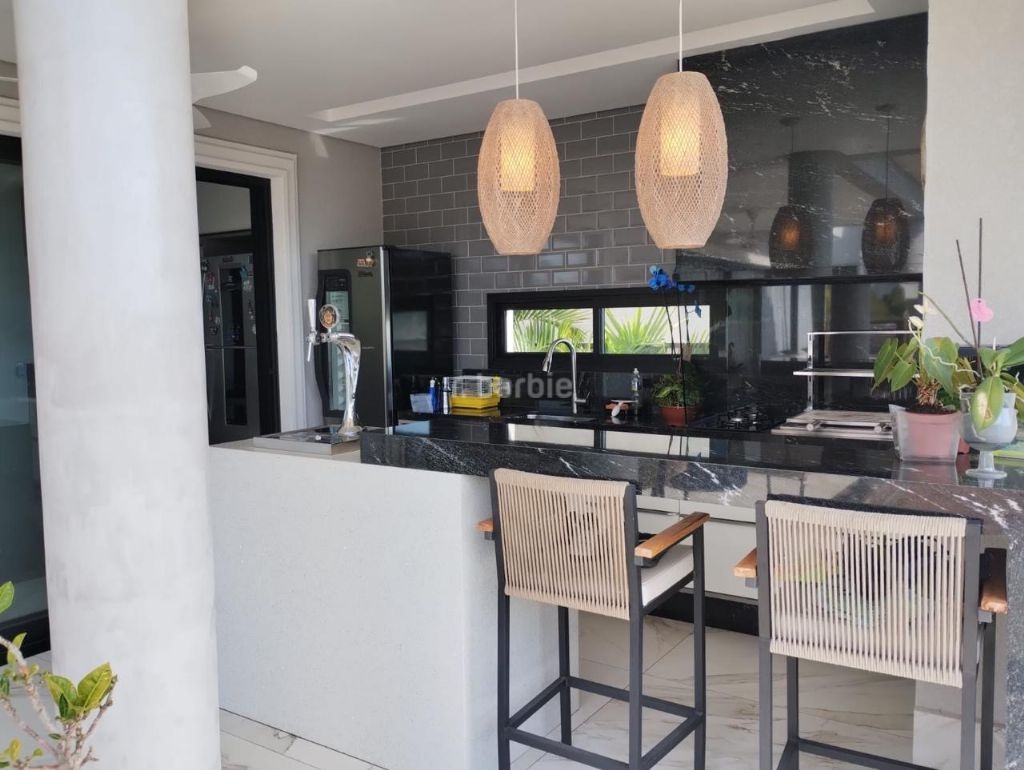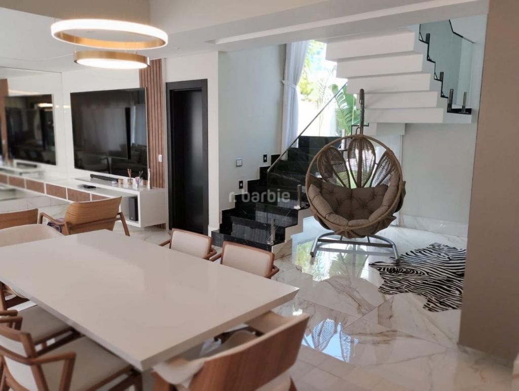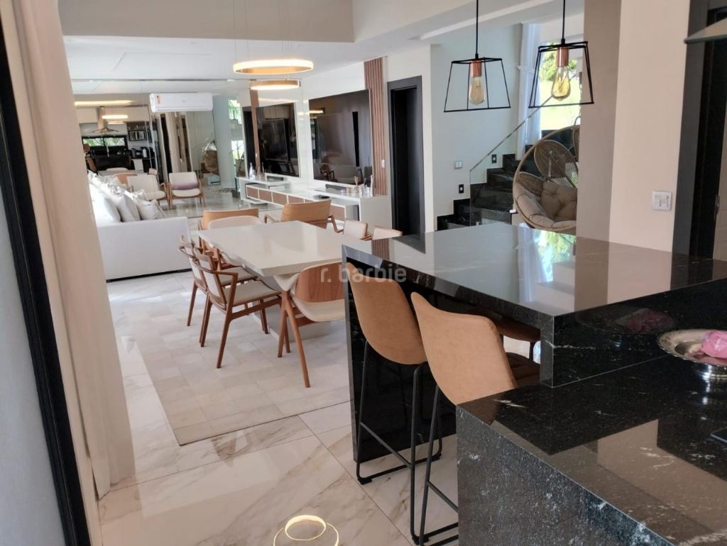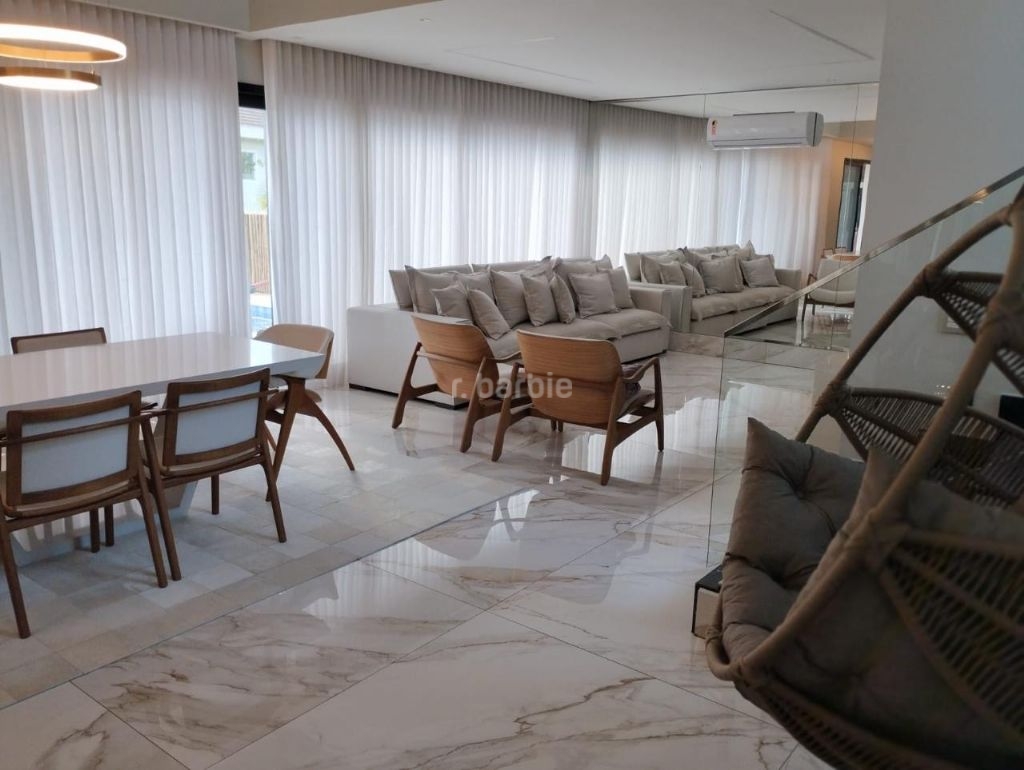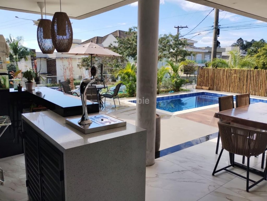 Excelente casa mobiliada e decorada com 468 metros de terreno e 275 metros de área construída, 3 suítes com armários planejados, ar condicionado e persianas blackout automatizadas, e master com closet e jacuzzi, living para 3 ambientes integrados, cozinha em conceito aberto toda equipada com eletrodomésticos e planejados, despensa, lavanderia, lavabo, área gourmet com churrasqueira a carvão, chopeira, cervejeira, maquina de gelo e balcão em granito, piscina com prainha e sistema de aquecimento e 6 vagas de garagem.