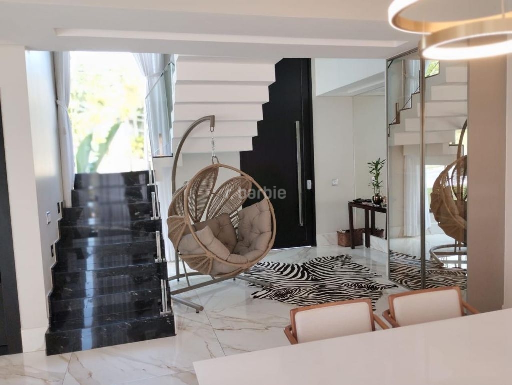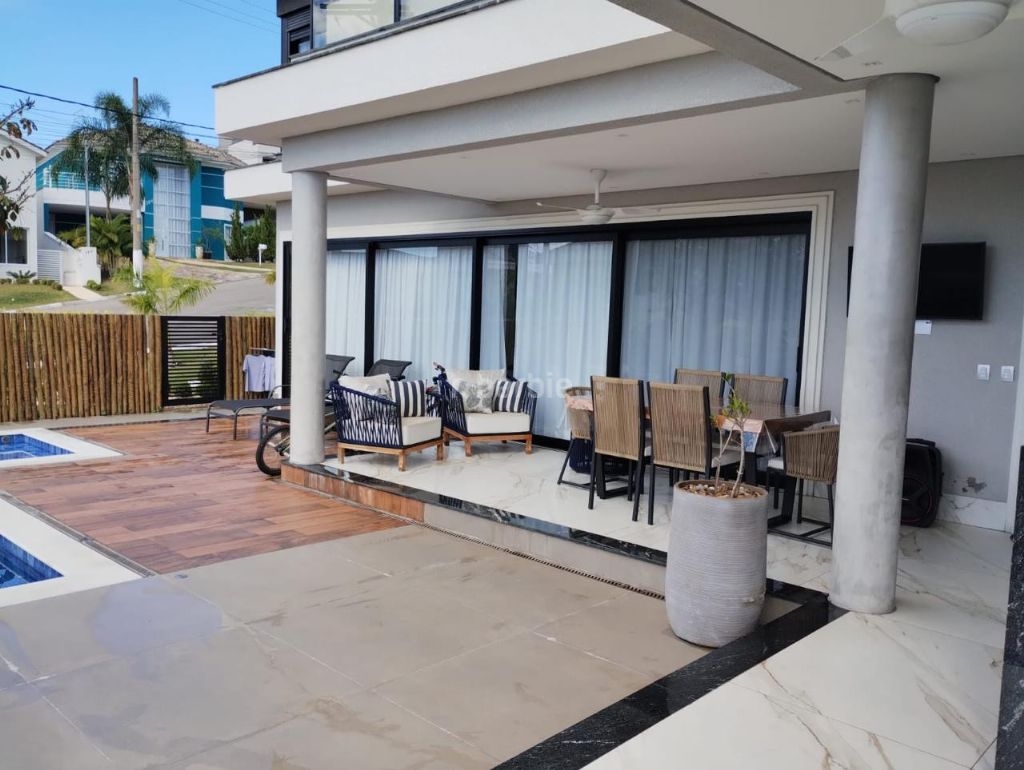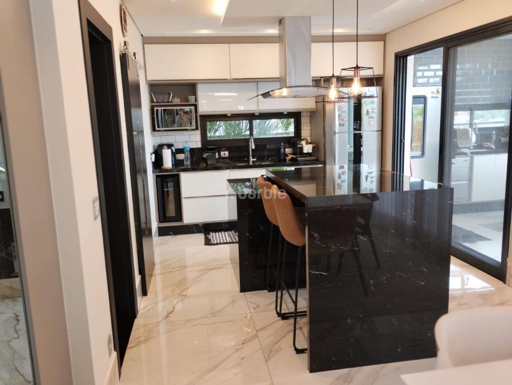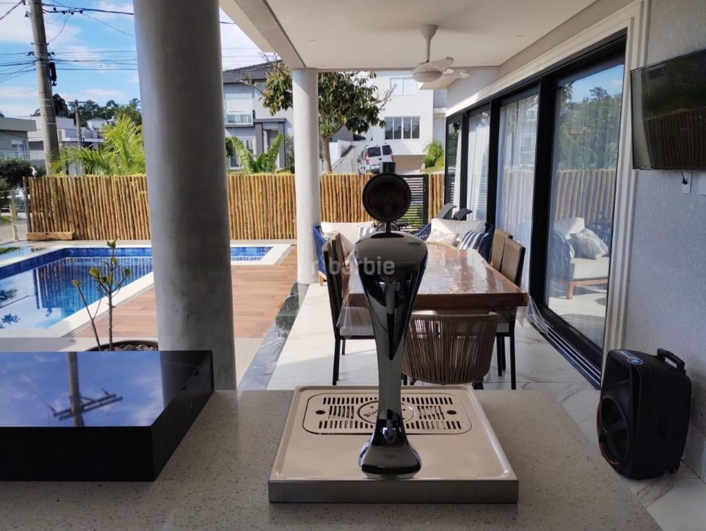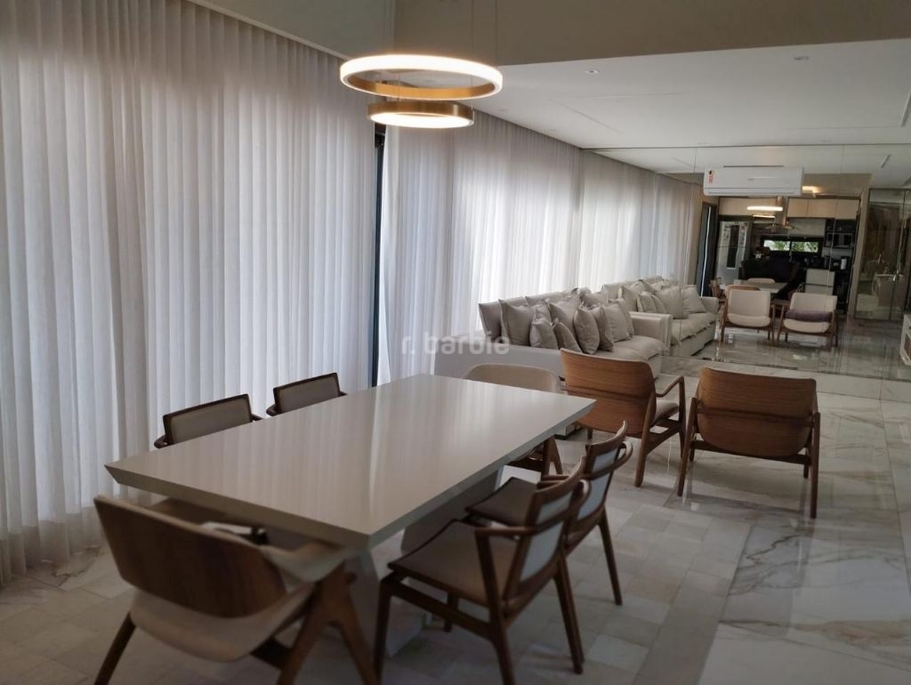 Excelente casa mobiliada e decorada com 468 metros de terreno e 275 metros de área construída, 3 suítes com armários planejados, ar condicionado e persianas blackout automatizadas, e master com closet e jacuzzi, living para 3 ambientes integrados, cozinha em conceito aberto toda equipada com eletrodomésticos e planejados, despensa, lavanderia, lavabo, área gourmet com churrasqueira a carvão, chopeira, cervejeira, maquina de gelo e balcão em granito, piscina com prainha e sistema de aquecimento e 6 vagas de garagem.