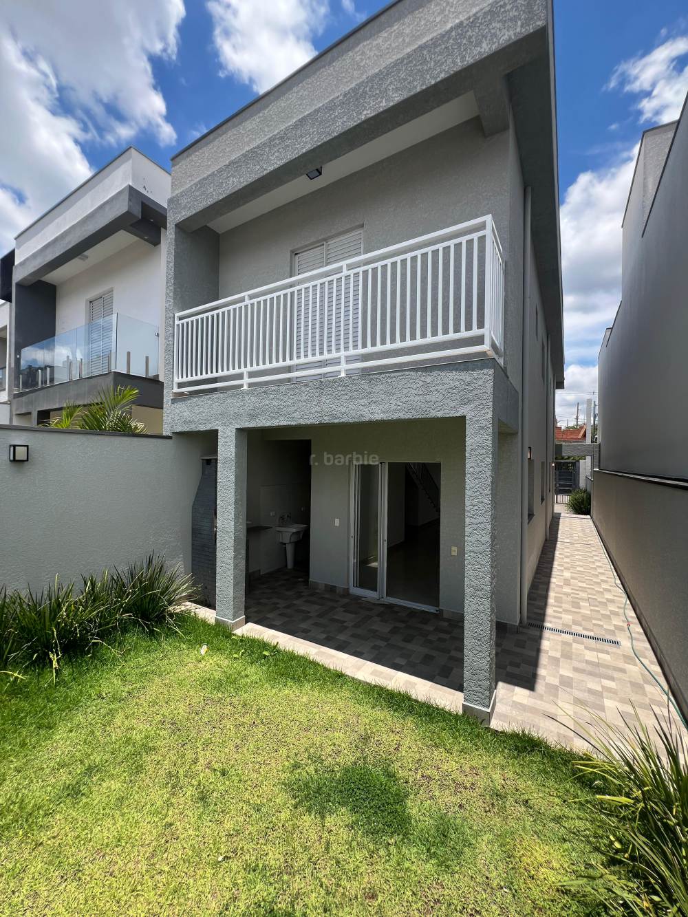Condomínio Nova Jaguari - Casa nova em Santana de Parnaíba no bairro Villas do Jaguari, lindo sobrado de 150 metros de terreno e 140 metros de área construída com 3 suítes, sendo a da frente e do fundo com sacada, living para dois ambientes, lavabo, cozinha com pia e gabinete, área externa gramada com churrasqueira modulada e lavanderia, portão automático e 2 vagas de garagem