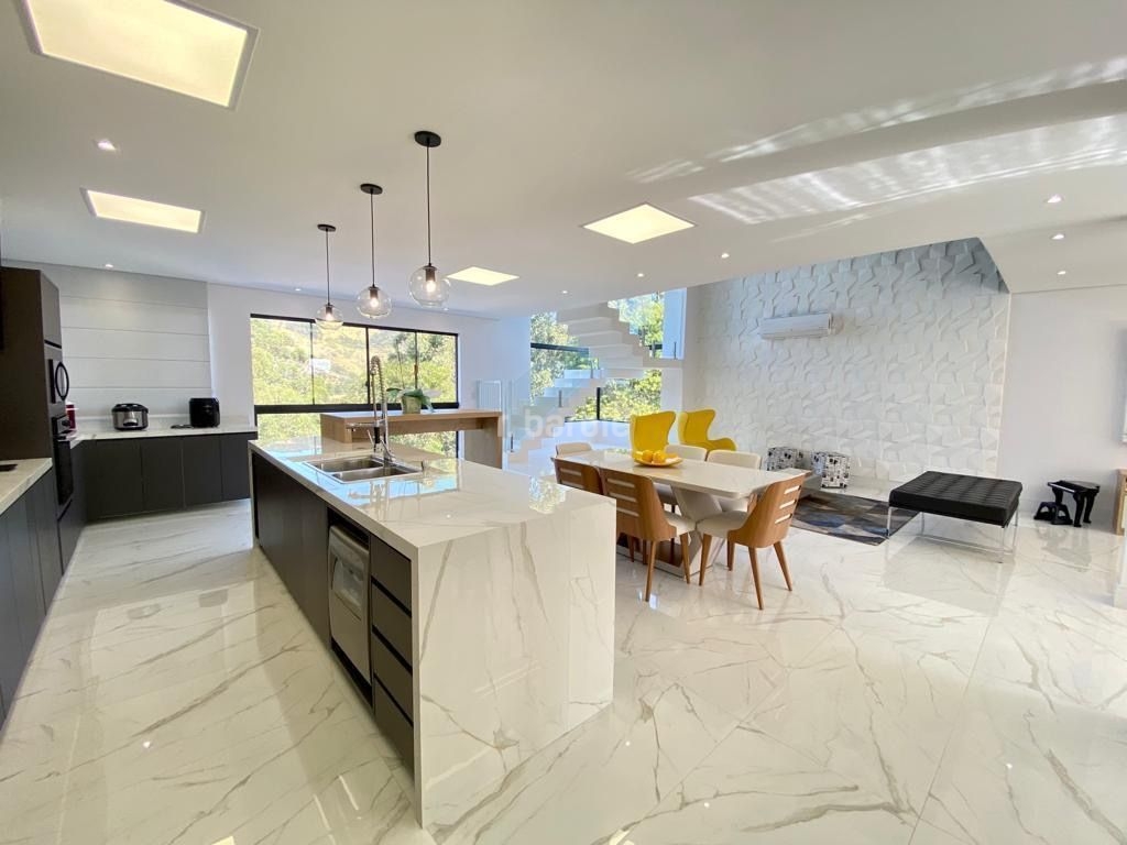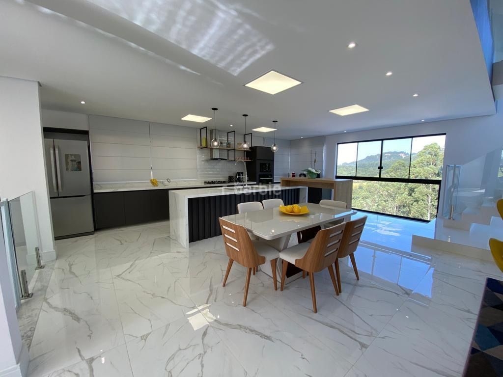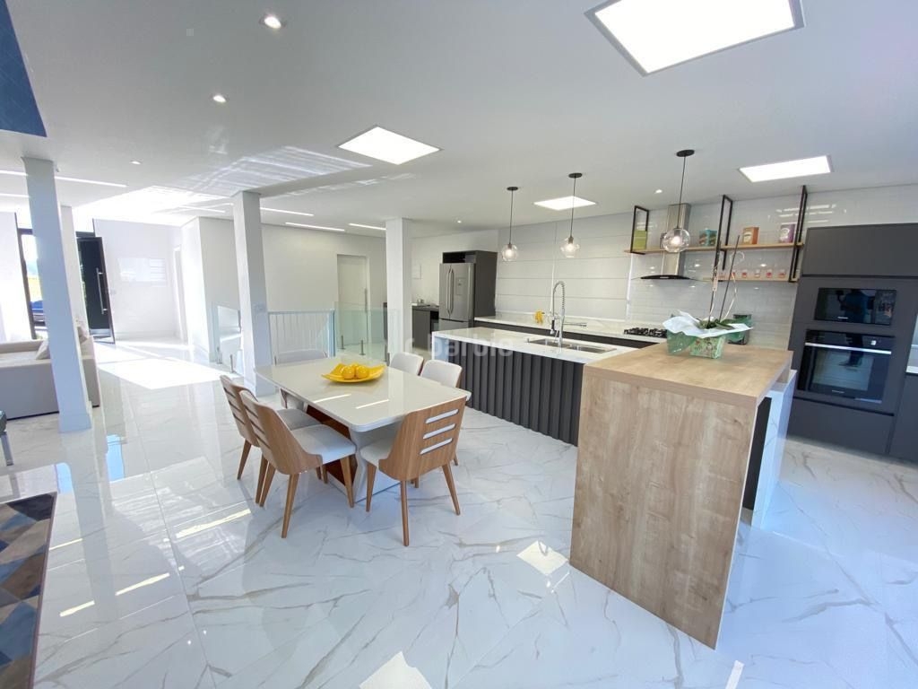 Excelente casa com 450 metros de terreno e 435 metros de área construída, 3 suítes, living para 3 ambientes integrados, cozinha em conceito aberto repleto de armários, escritório, sala de cinema, lavabo, lavanderia, área gourmet completa, piscina aquecida com borda infinita, área de playground, área livre de 100 metros para construção de sauna ou academia, garagem para 4 carros com ponto para carregamento de carro elétrico.