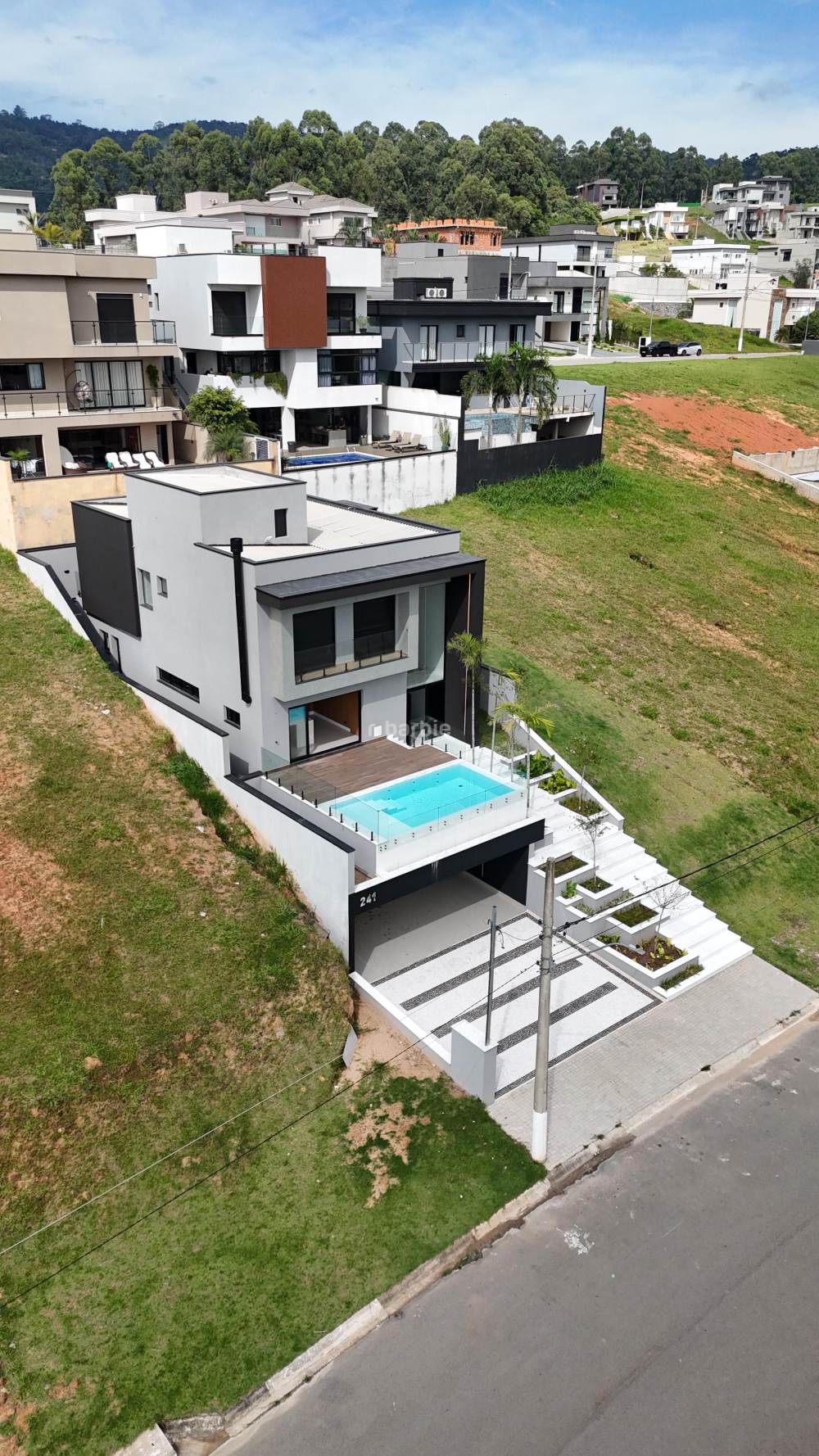 Casa com 3 suítes em Santana de Parnaíba, recém construída com 378 metros terreno e 335 metros de área construída, living para 3 ambientes, cozinha ampla, lavabo, lavanderia, área gourmet com churrasqueira, piscina e garagem para 4 carros.