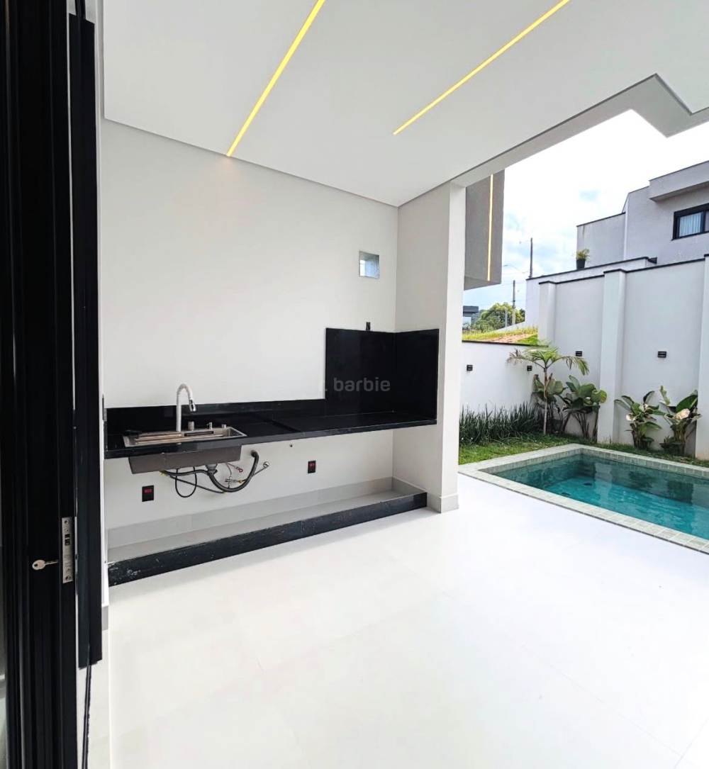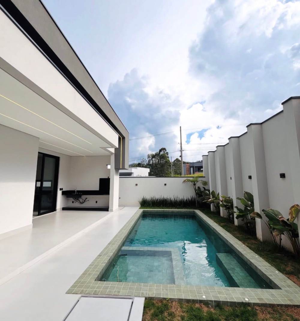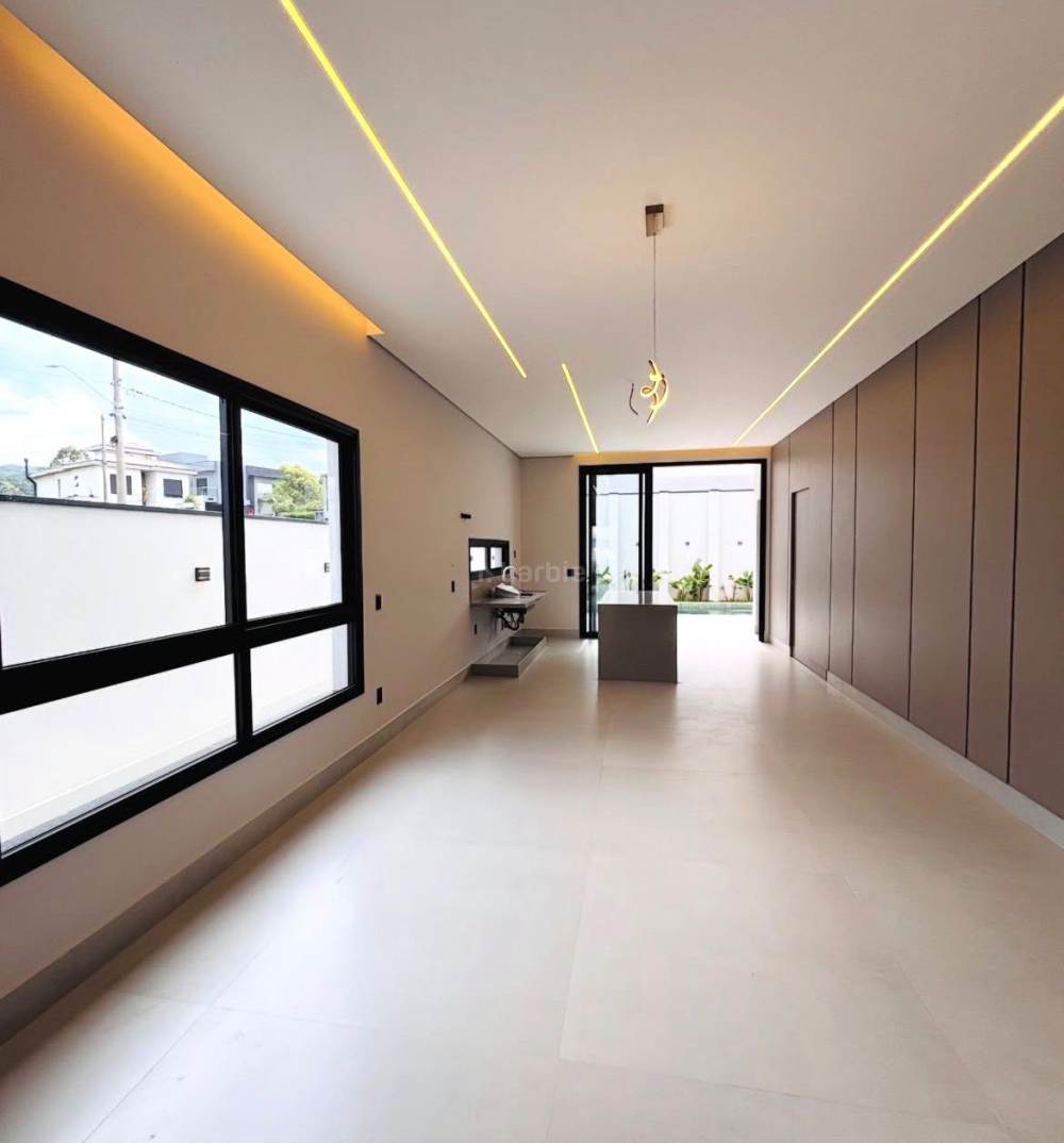 Casa recém construída com 3 suítes em Santana de Parnaíba, 430 metros de terreno e 300 metros de área construída, living para 3 ambientes, cozinha em conceito aberto com ilha, lavabo, lavanderia, depósito, área gourmet, piscina e garagem para 4 carros com carregador para carro elétrico.
