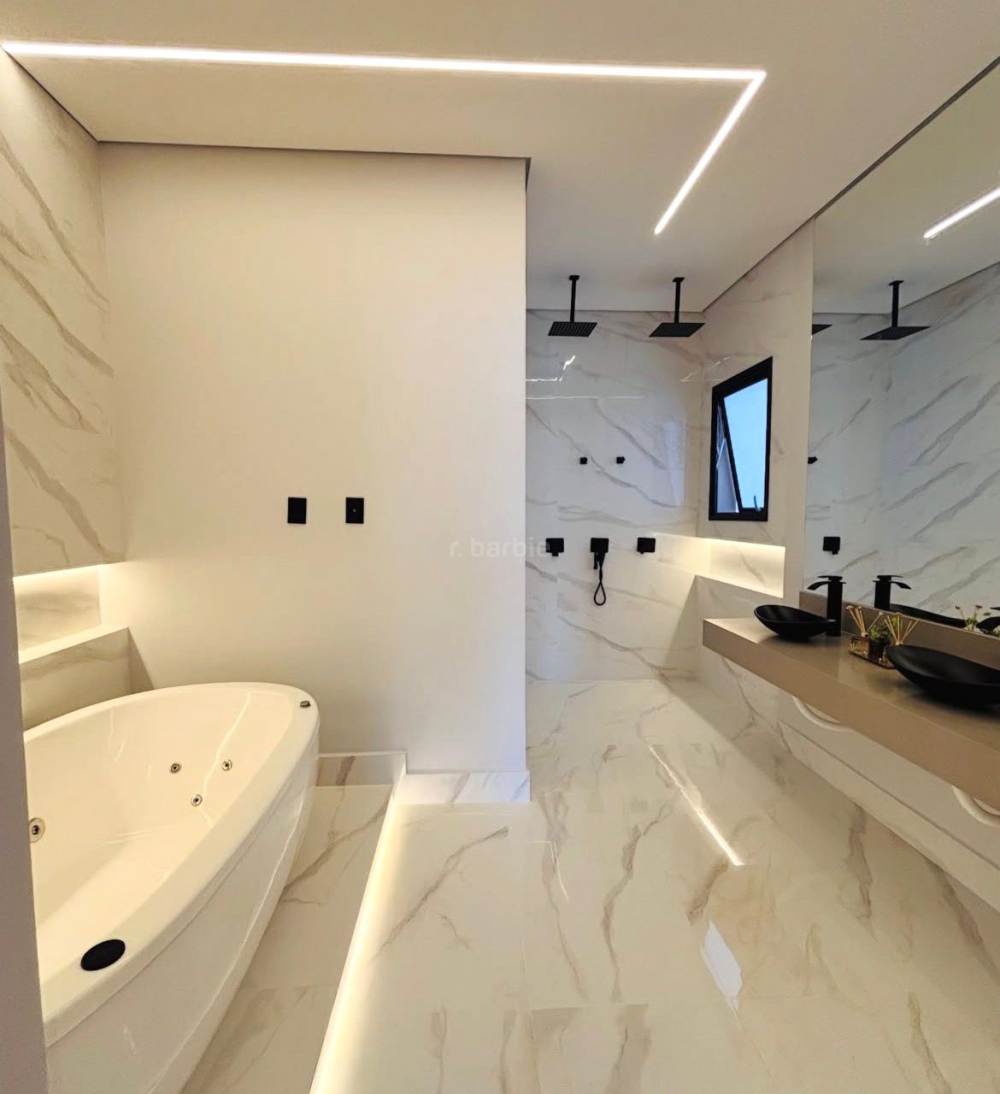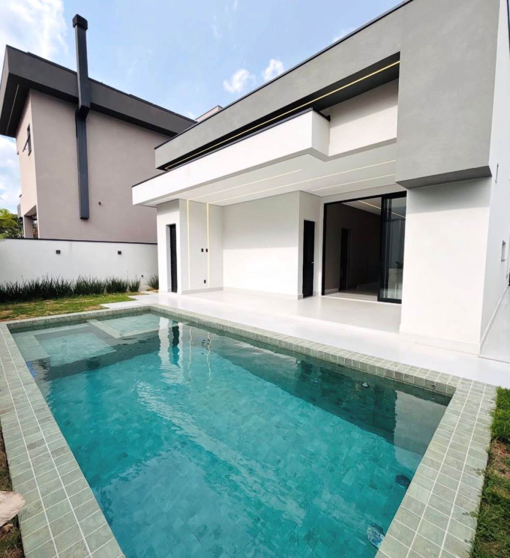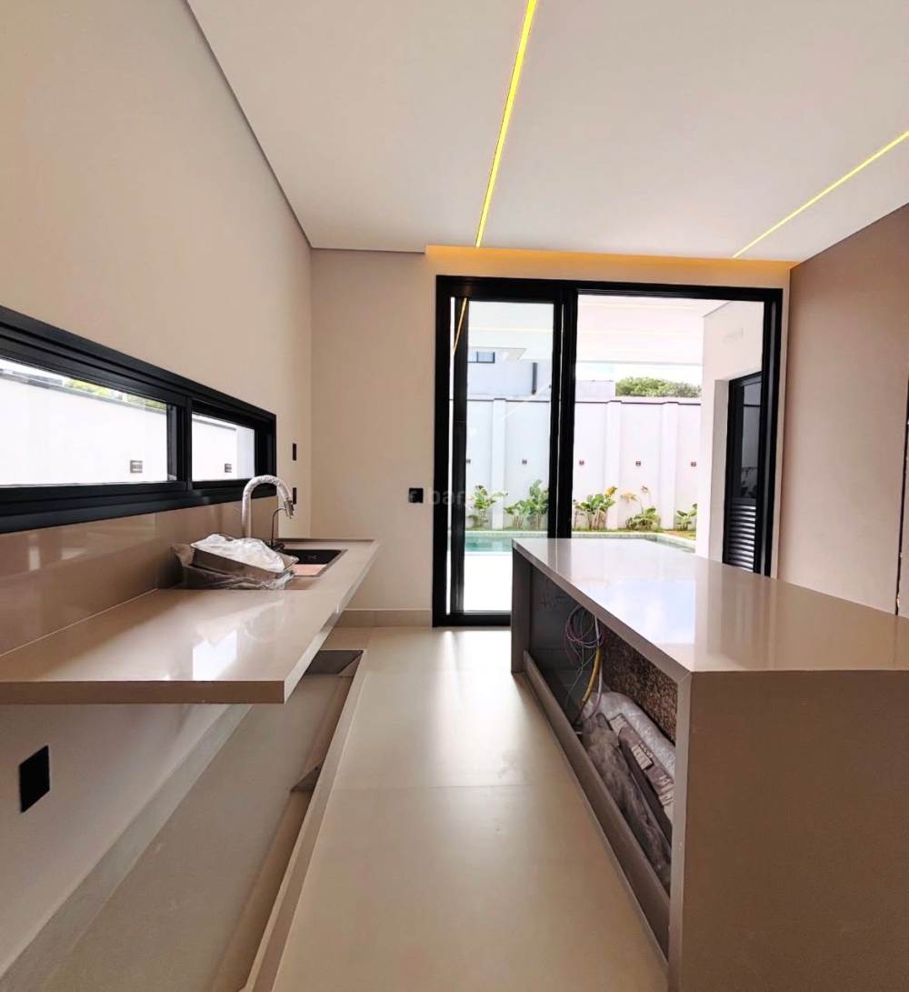 Casa recém construída com 3 suítes em Santana de Parnaíba, 430 metros de terreno e 300 metros de área construída, living para 3 ambientes, cozinha em conceito aberto com ilha, lavabo, lavanderia, depósito, área gourmet, piscina e garagem para 4 carros com carregador para carro elétrico.
