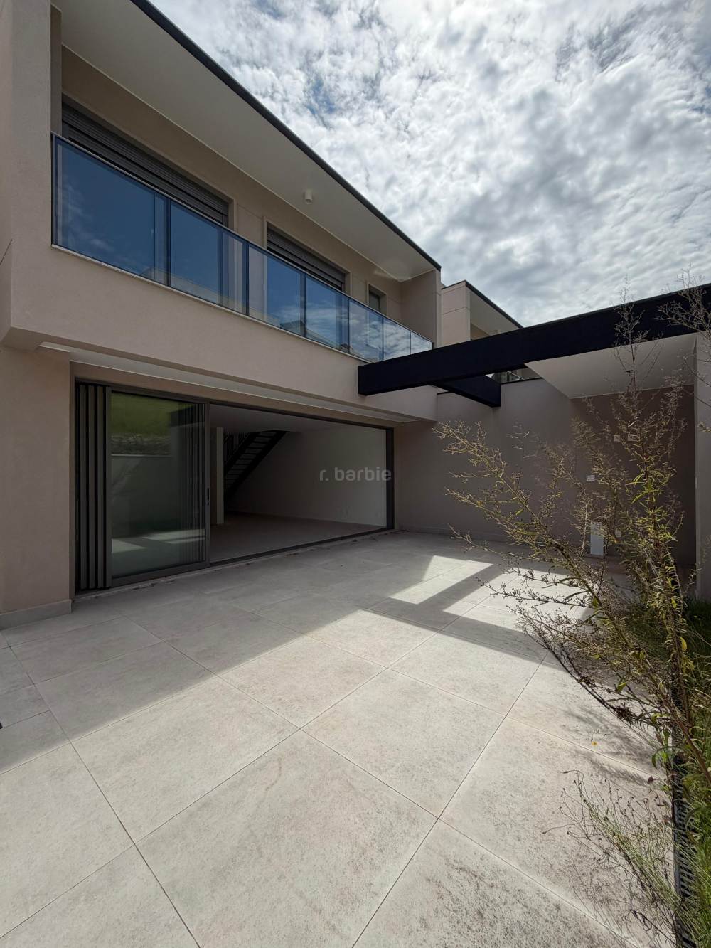 Casa recém construída com 3 suítes em Alphaville, 230 metros, living integrado para 2 ambientes, cozinha em conceito aberto, lavanderia, despensa, 5 banheiros, área gourmet com infra para churrasqueira e garagem para 3 carros.