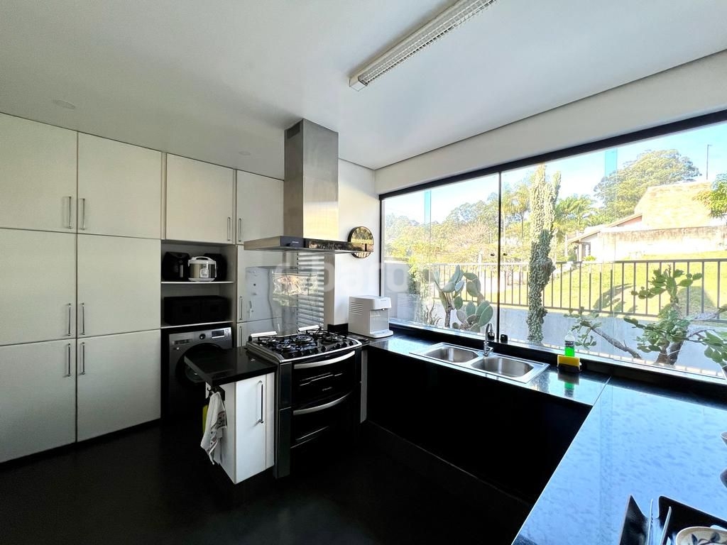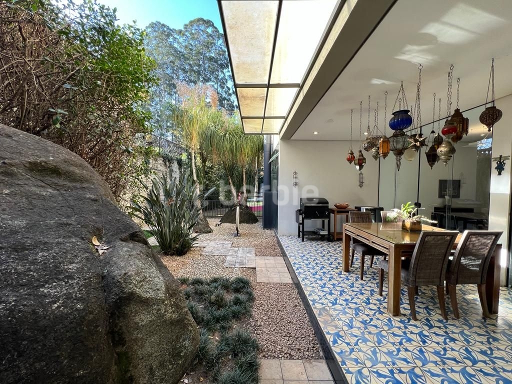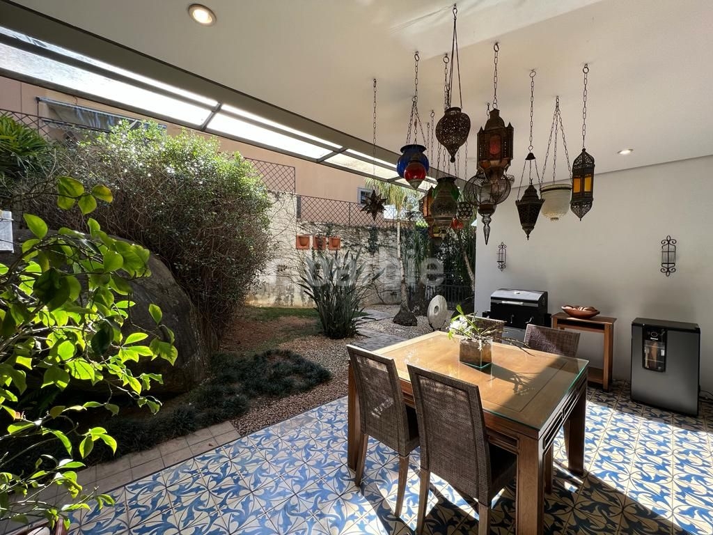 Excelente casa com 1460 metros de terreno e 500 metros de área construída, 3 suítes, sendo máster com closet e hidromassagem, living para 3 ambientes, cozinha repleta de armários planejados, escritório, biblioteca, lavabo, área externa com piscina e amplo jardim e 4 vagas de garagem.