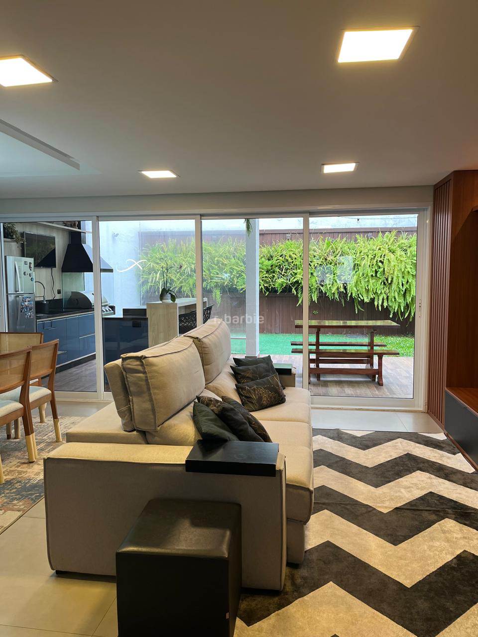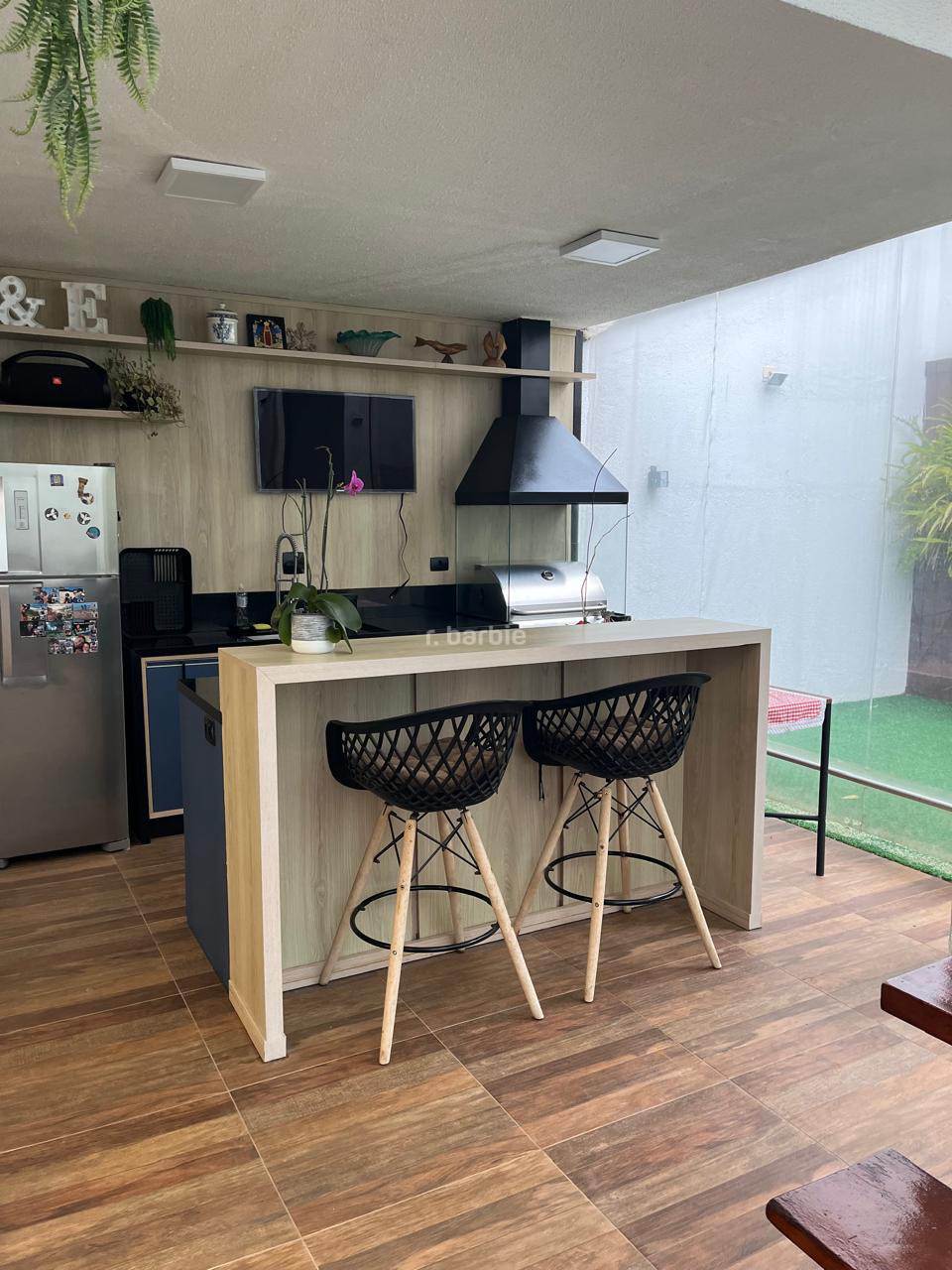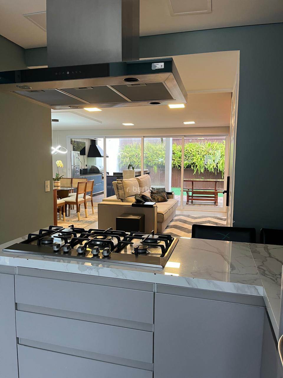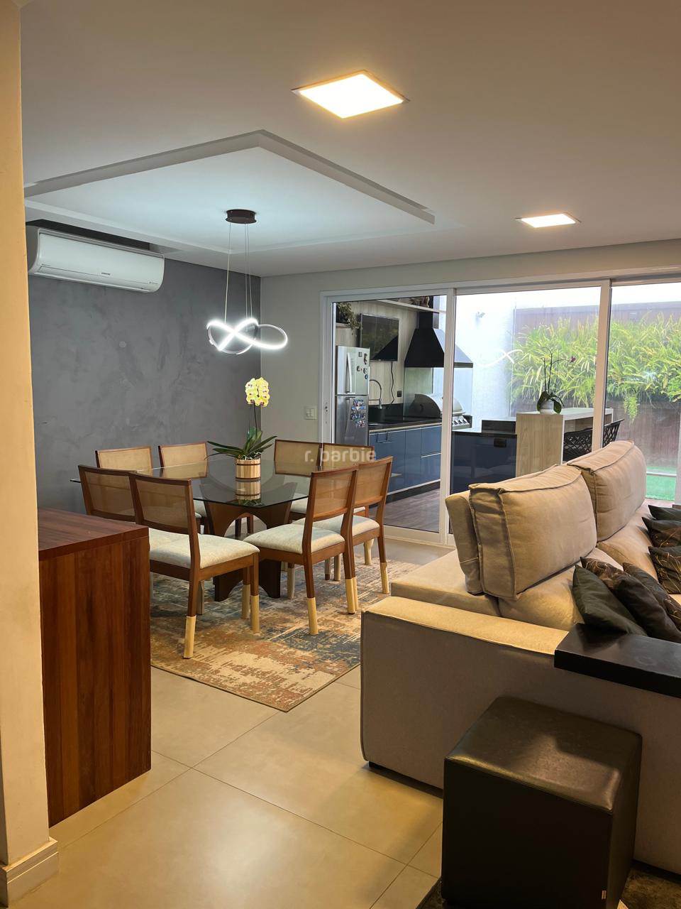 Casa reformada com 3 dormitórios sendo 1 suíte em Alphaville, 180 metros, living integrado para 3 ambientes, cozinha em conceito aberto com armários planejados e eletrodomésticos embutidos, escritório, 3 banheiros, área gourmet com churrasqueira e teto retrátil, jardim vertical e 2 vagas de garagem.