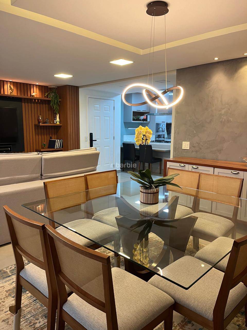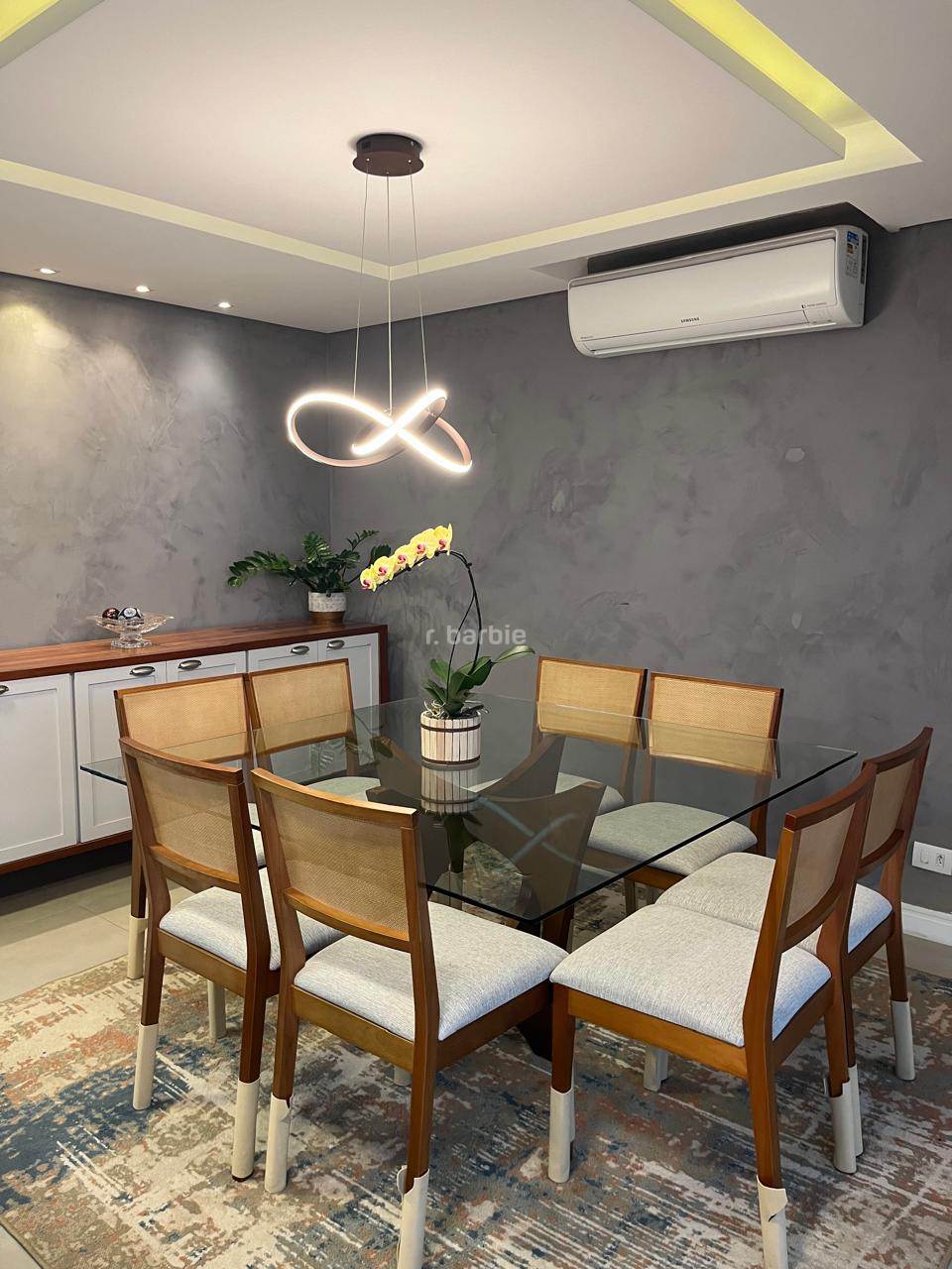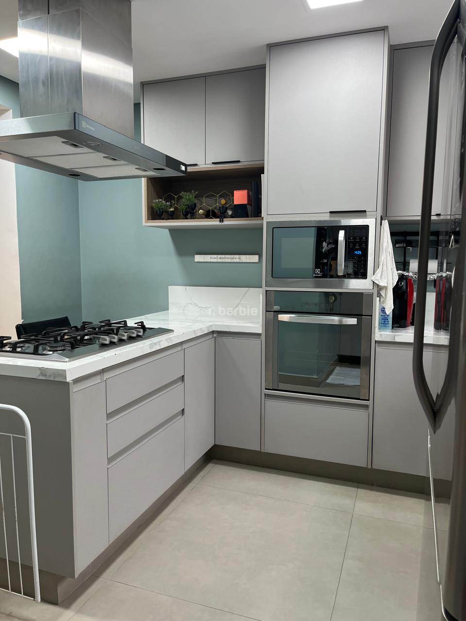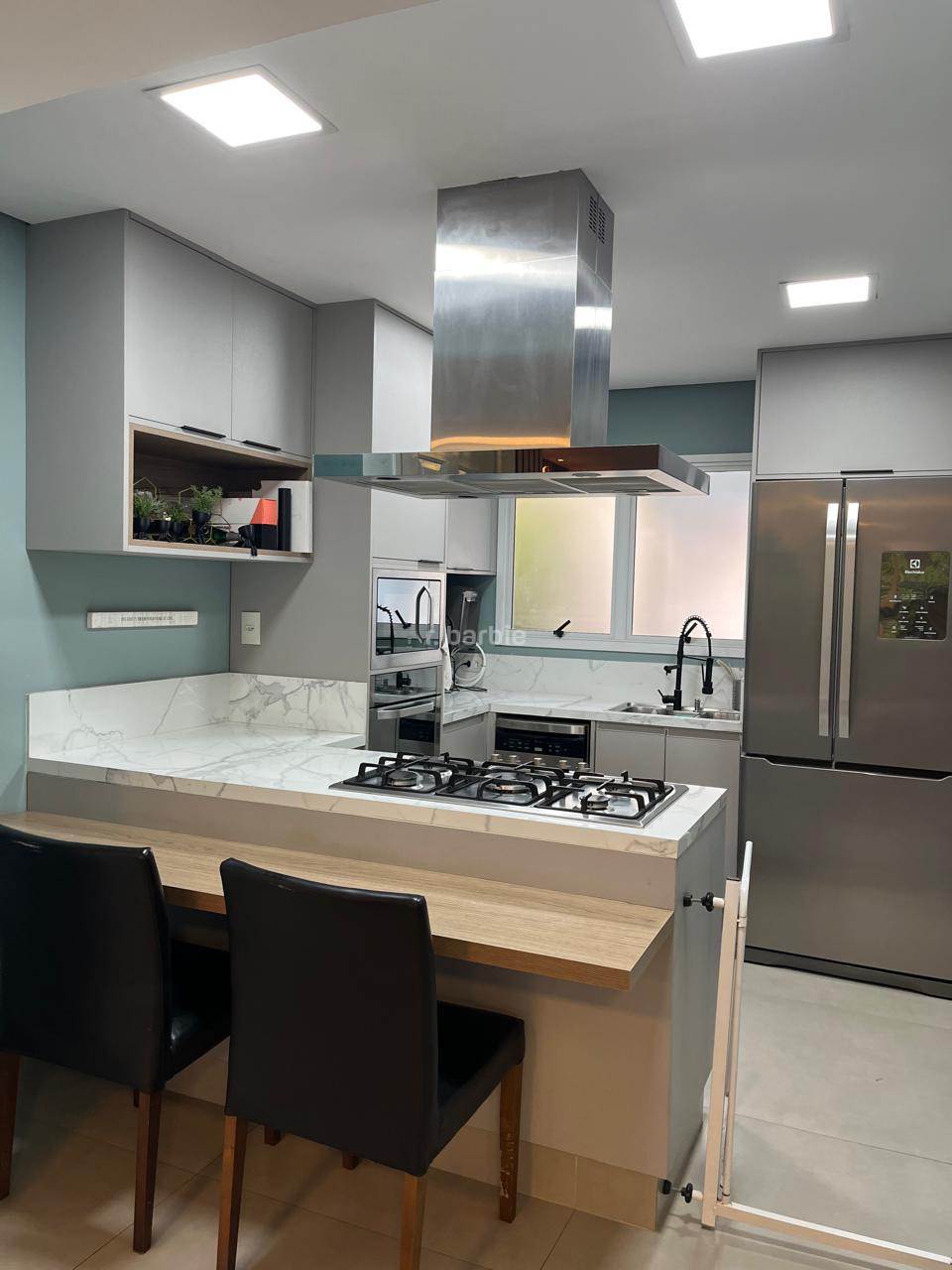 Casa reformada com 3 dormitórios sendo 1 suíte em Alphaville, 180 metros, living integrado para 3 ambientes, cozinha em conceito aberto com armários planejados e eletrodomésticos embutidos, escritório, 3 banheiros, área gourmet com churrasqueira e teto retrátil, jardim vertical e 2 vagas de garagem.