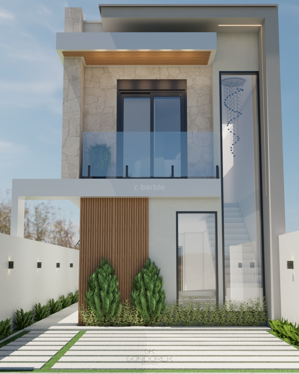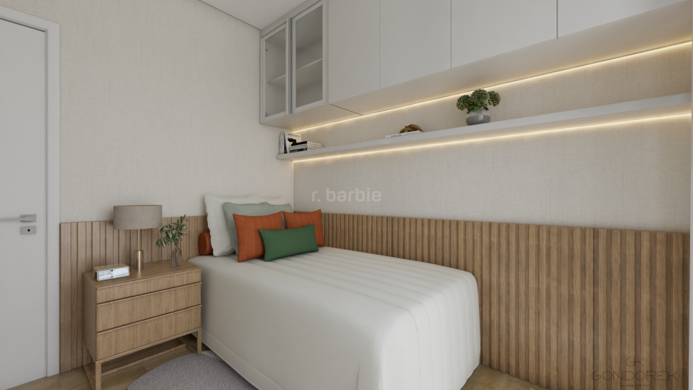 No pavimento superior, são 3 suítes amplas, incluindo uma suíte master com closet, dois chuveiros e varanda privativa. A circulação conta com claraboia, trazendo ainda mais luz natural e sofisticação ao projeto.
