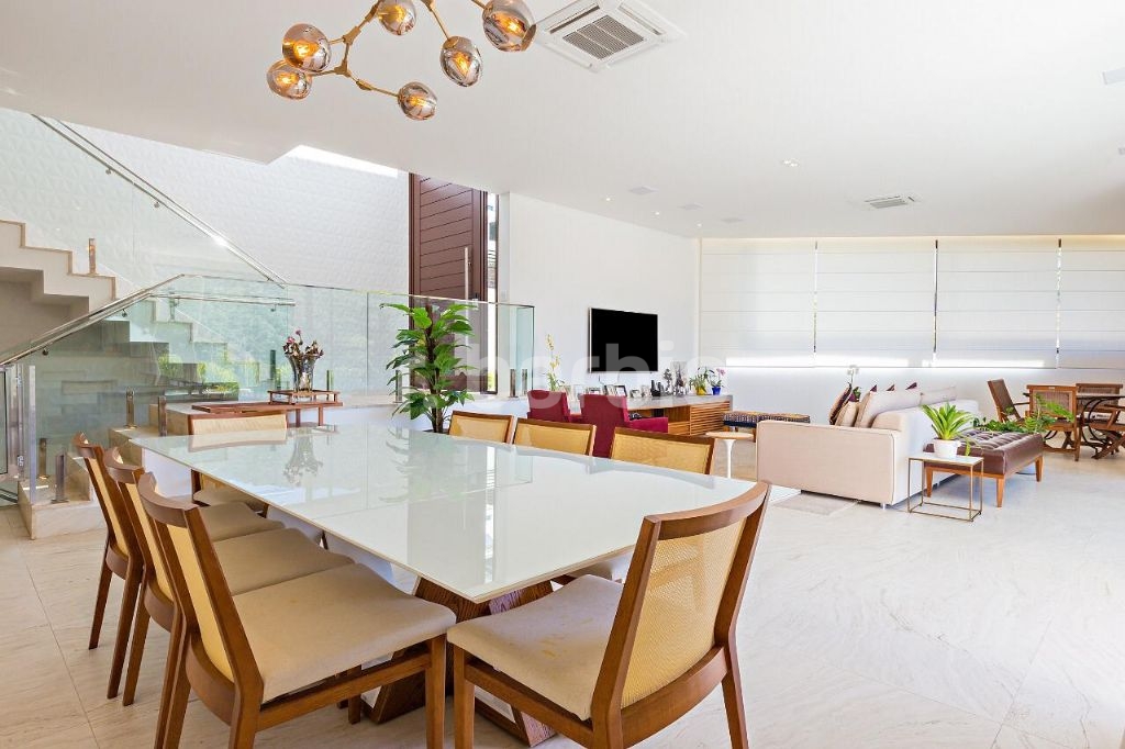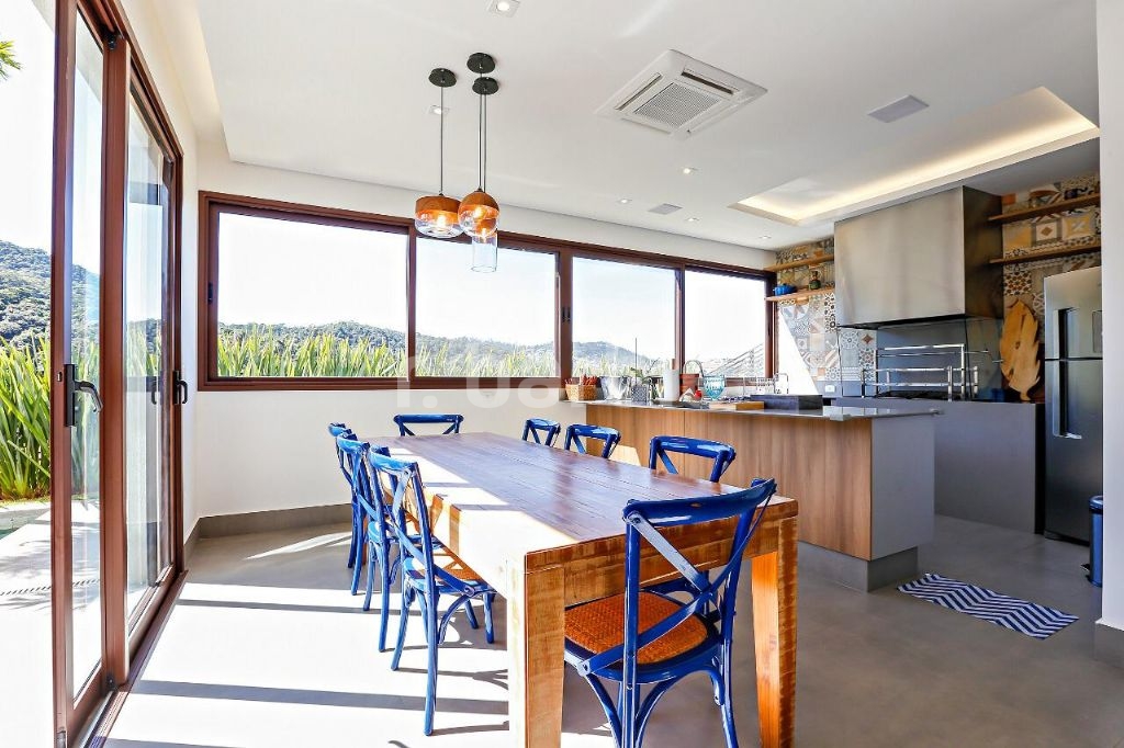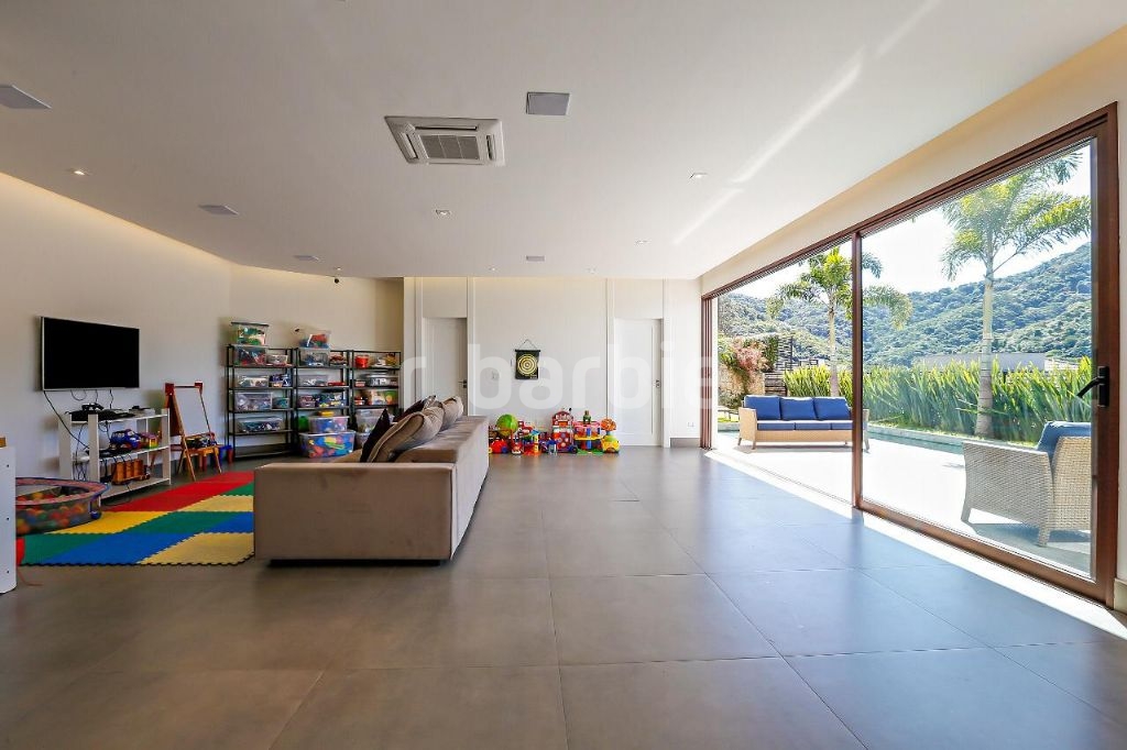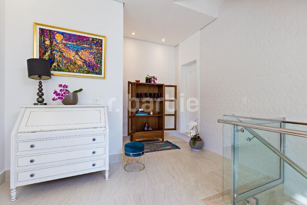 Linda casa moderna com belíssima vista com 520m² de construção e 495m² de terreno, 4 suítes sendo a master com closet, banheiro duplo e banheira, amplo living com lareira ecológica, cozinha completa com ilha e eletrodomésticos, espaço gourmet totalmente integrado com a área de lazer, com piscina e jardim.